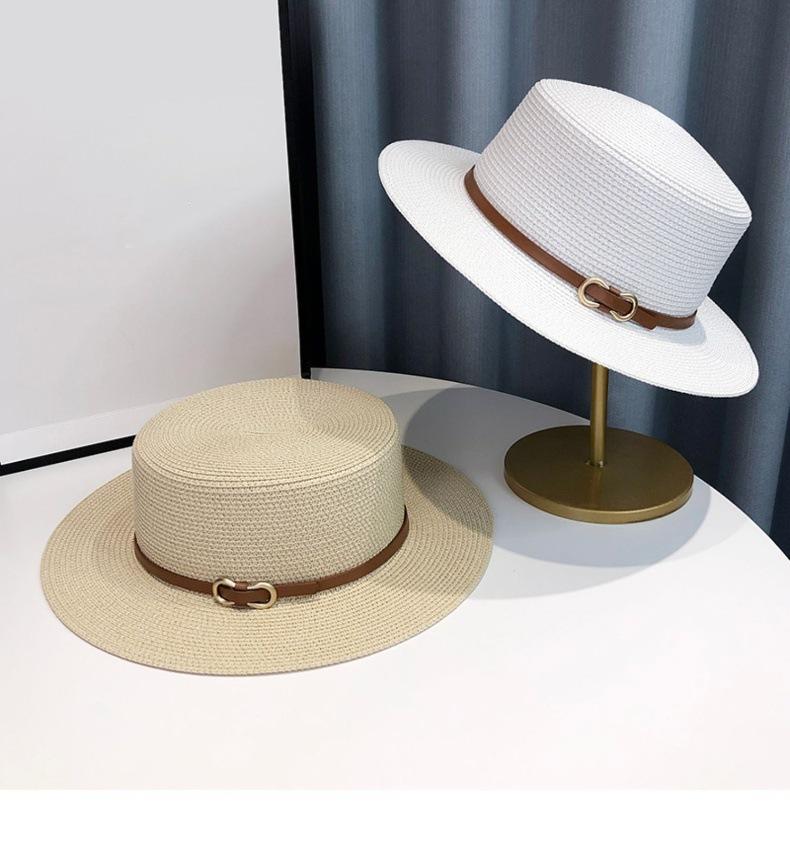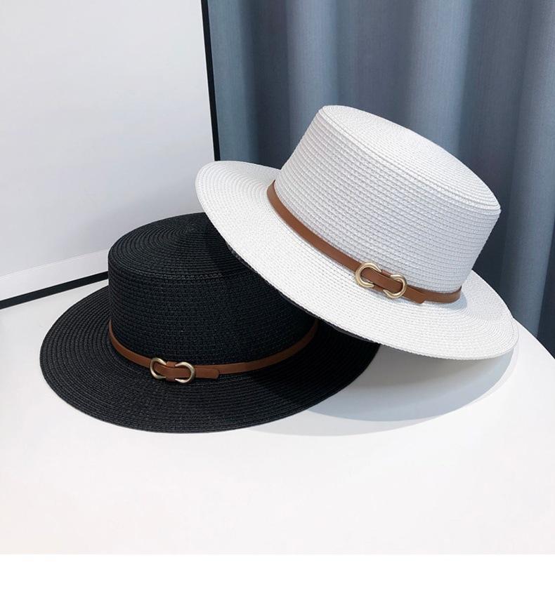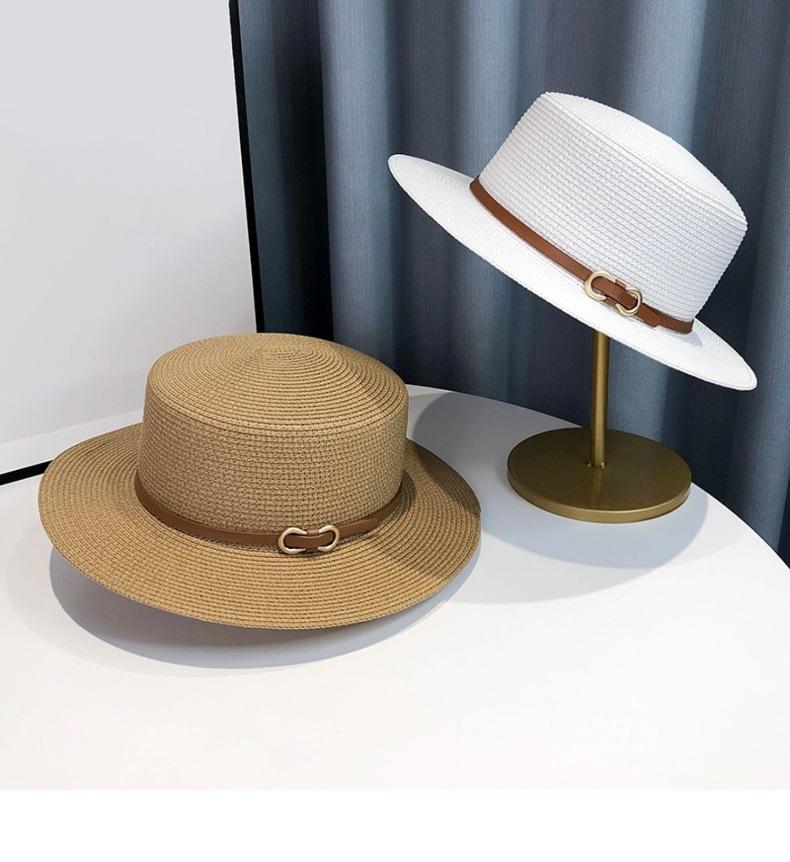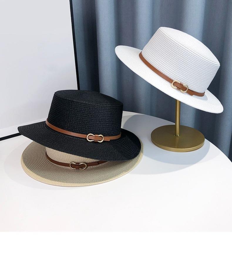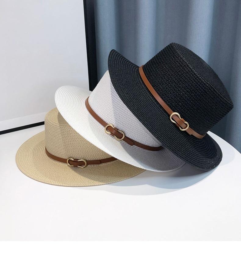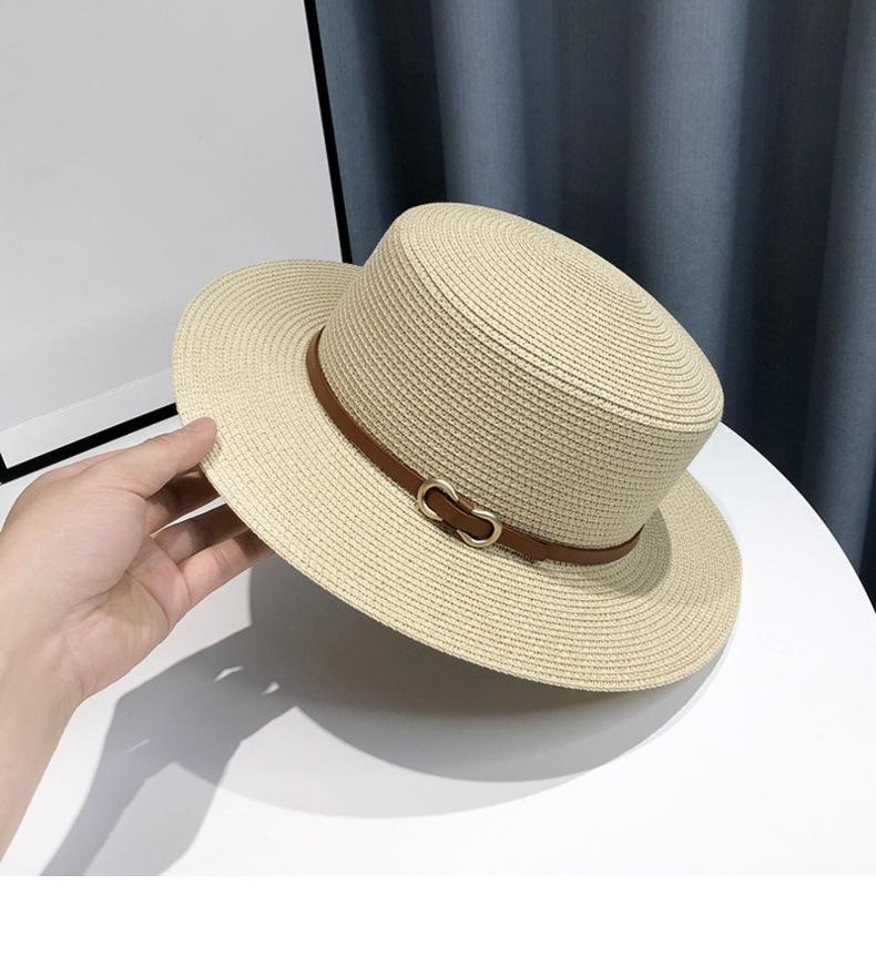 Compra Sombrero de paja de verano para mujer, nuevo sombrero para el sol, moda francesa, sombrero de copa plana, sombrero de playa para vacaciones en la playa, sombrero para el sol con protección solar al por mayor en Joom.pro