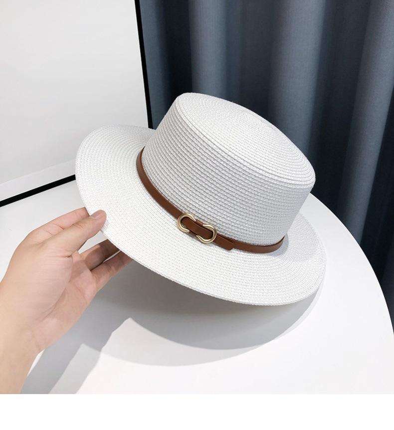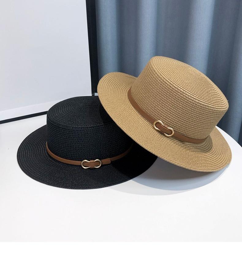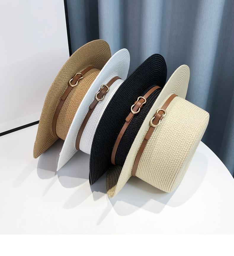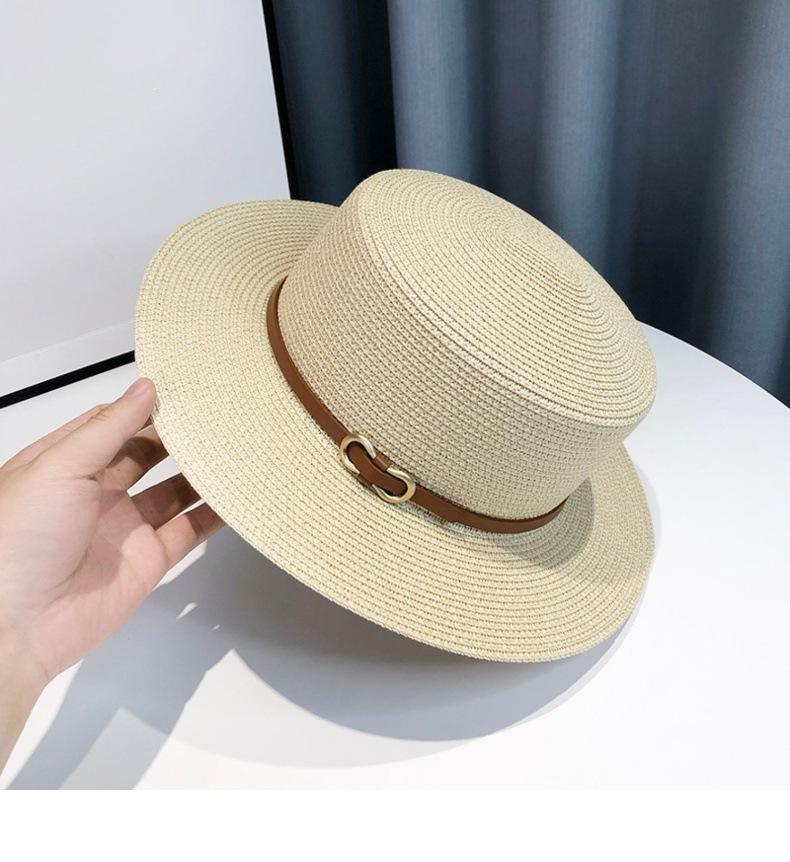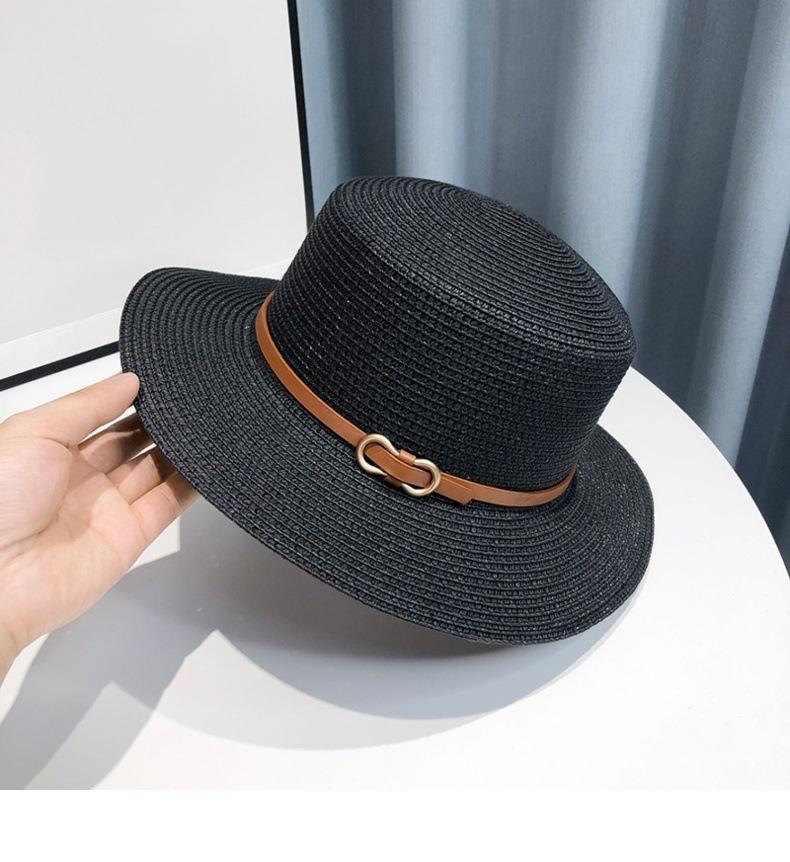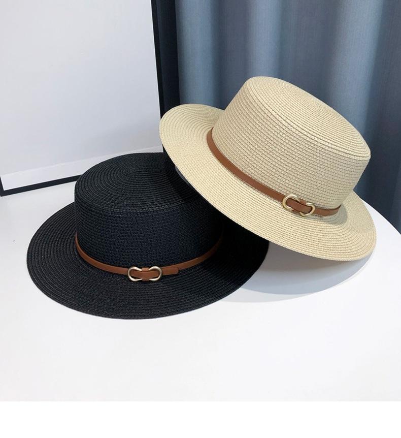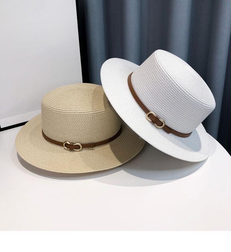 Compra Sombrero de paja de verano para mujer, nuevo sombrero para el sol, moda francesa, sombrero de copa plana, sombrero de playa para vacaciones en la playa, sombrero para el sol con protección solar al por mayor en Joom.pro