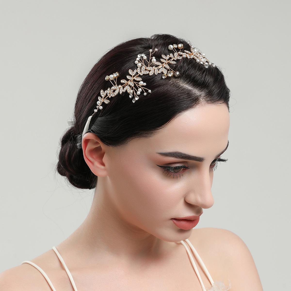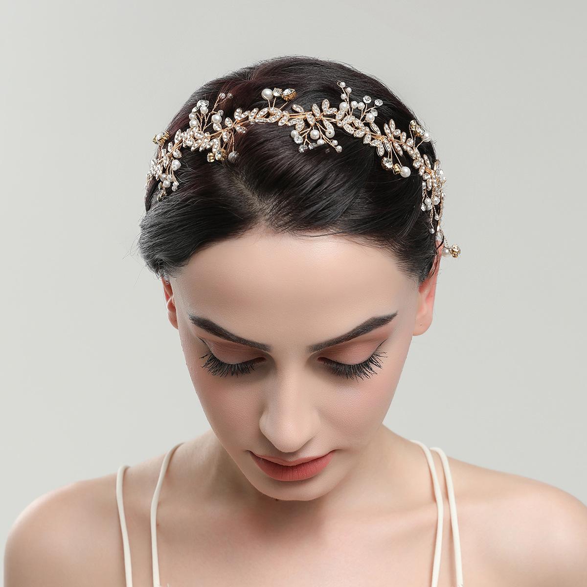 Accesorios para el cabello transfronterizos, accesorios para bodas nupciales, aleación, hoja, cristal, concha, perla, flor, accesorios para el cabello, diadema