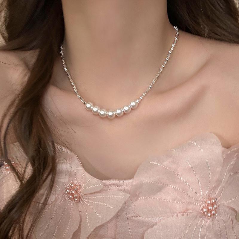 Collar de perlas de imitación de plata rota de nuevo estilo 2024, collar de alta gama para mujer, cadena de clavícula de nicho de lujo ligero, accesorios de moda