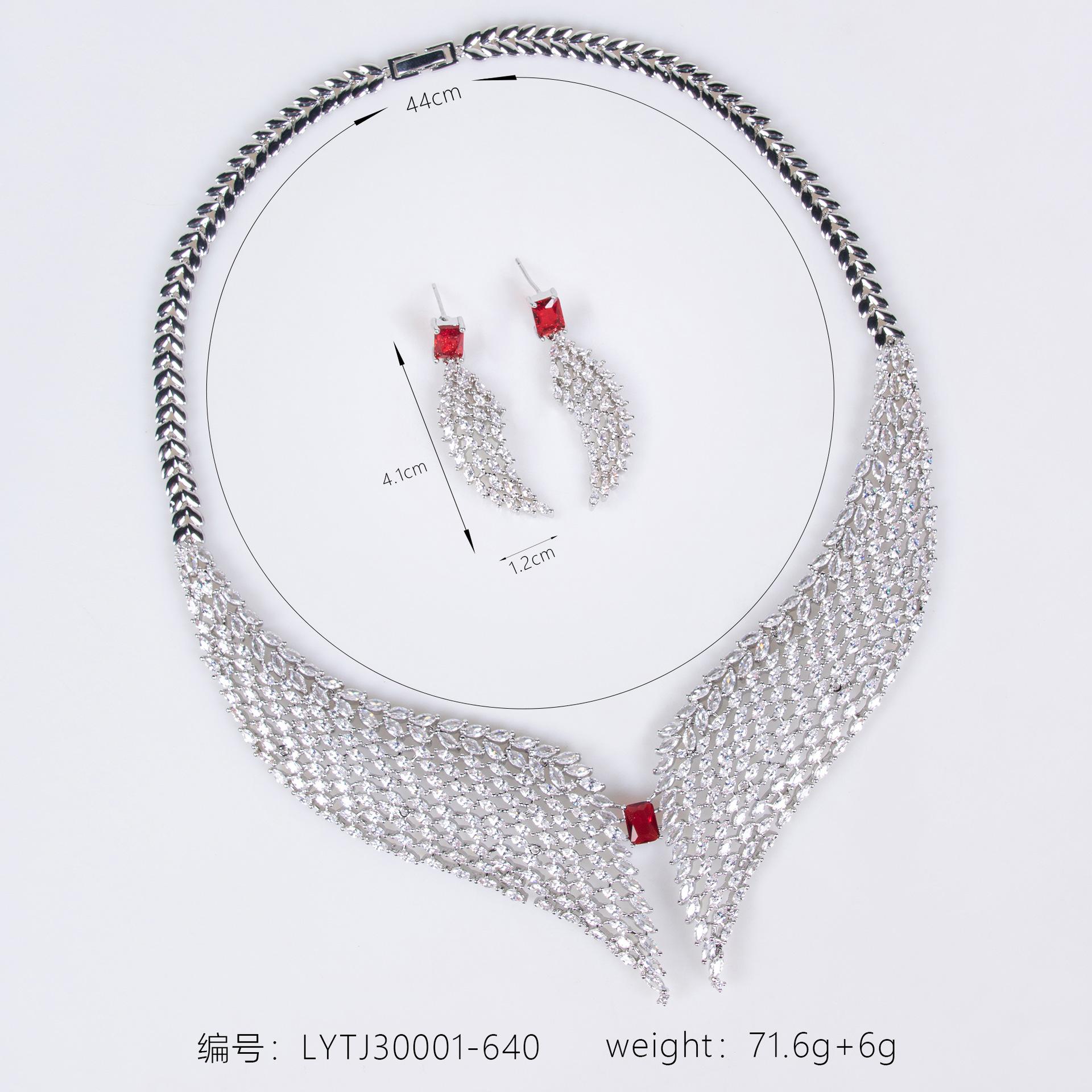 Set de Collar y Aretes de Ala de Zircón de Estilo Europeo y Americano Transfronterizo, Collar y Aretes Chapados en Oro Joyería para Accesorios de Fiesta para Mujer