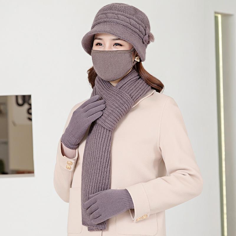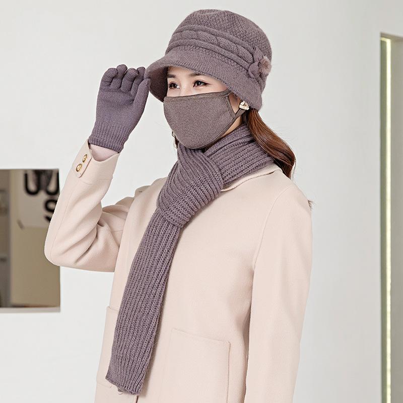 Gorro de punto con lengua de pato para niños, nuevo gorro cálido de invierno de dos piezas, bufanda, protección para los oídos para personas mayores, gorro de lana