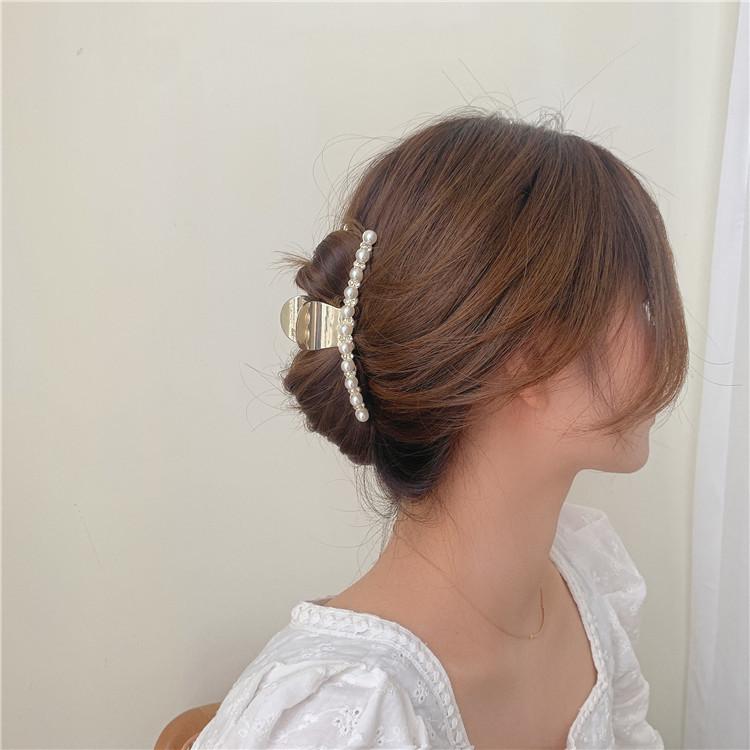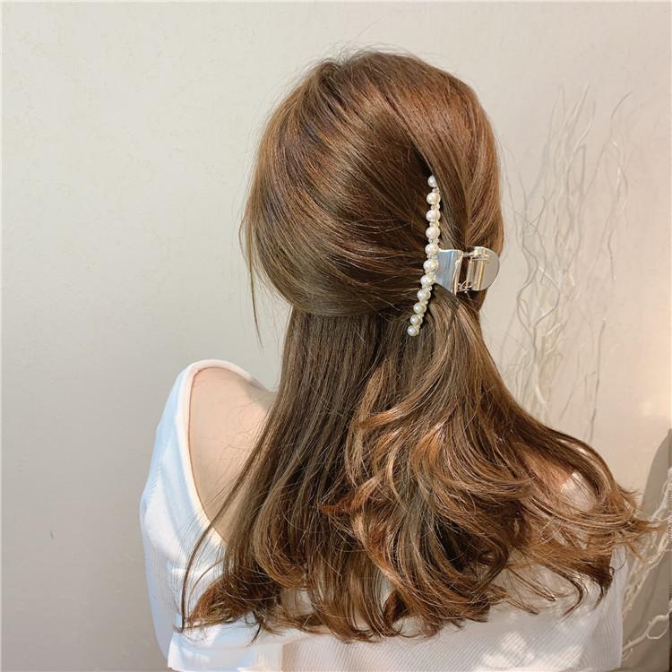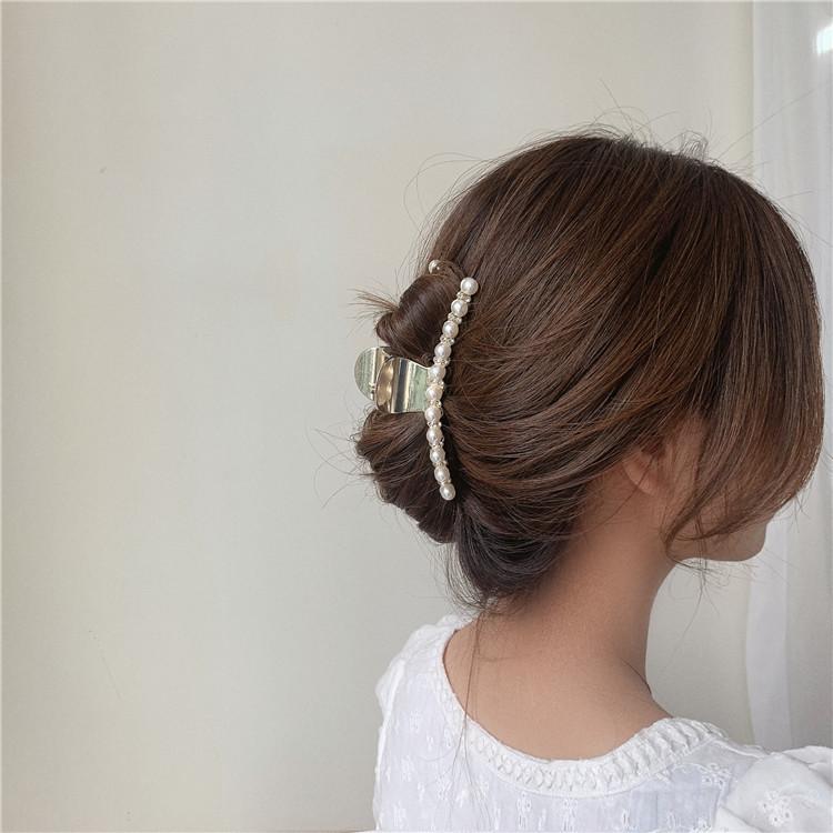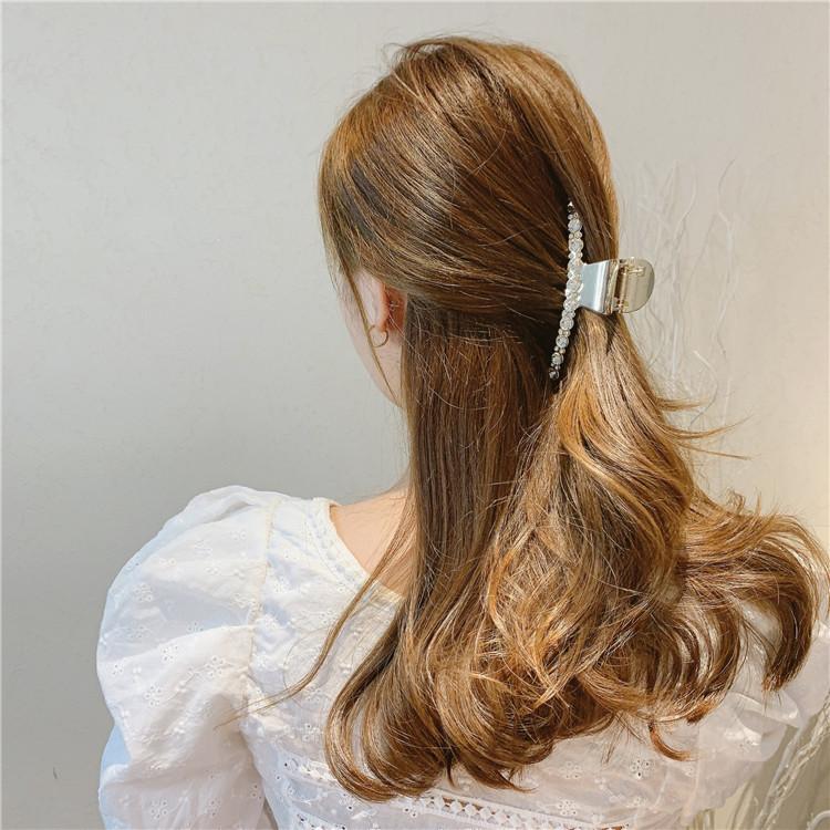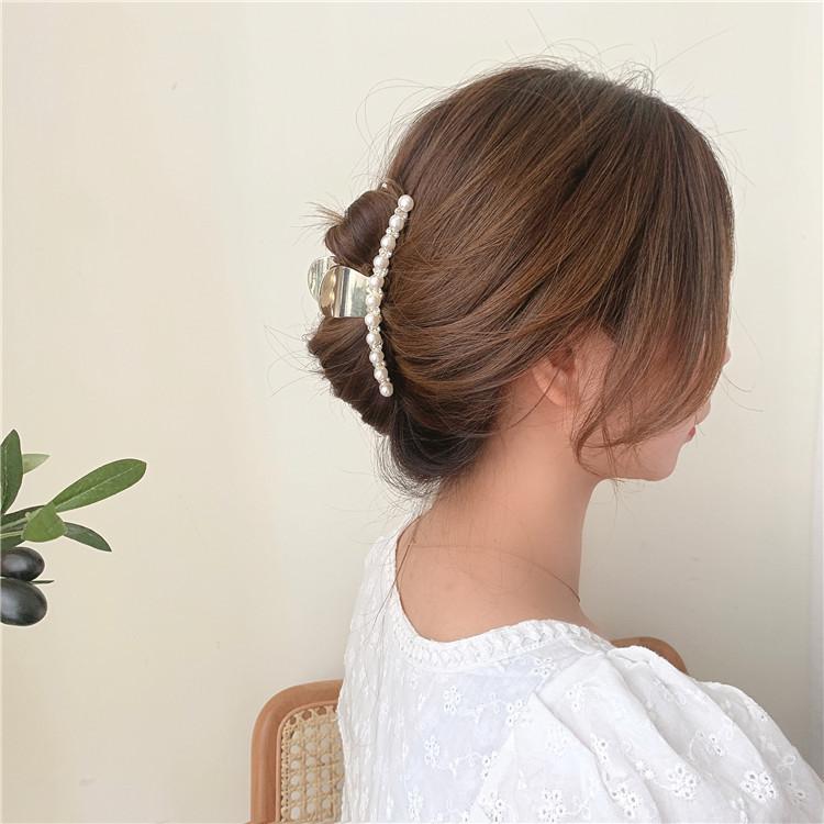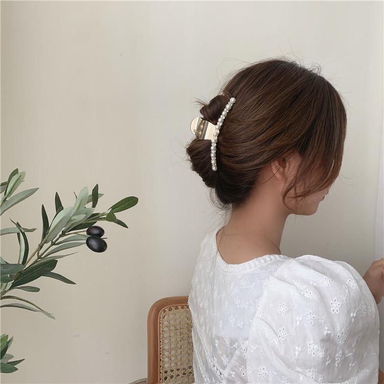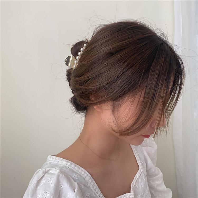Pinza de metal estilo coreano con forma de tiburón, con perlas y diamantes de imitación, sencilla y combinable, accesorio para el cabello para mujer.