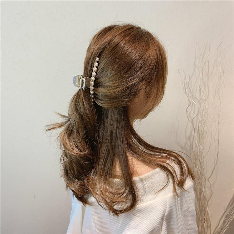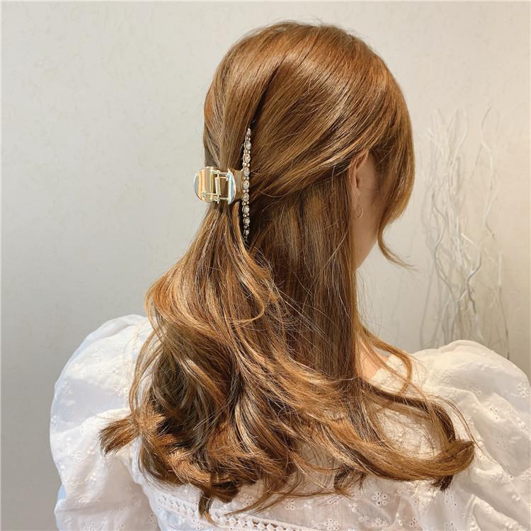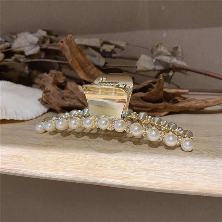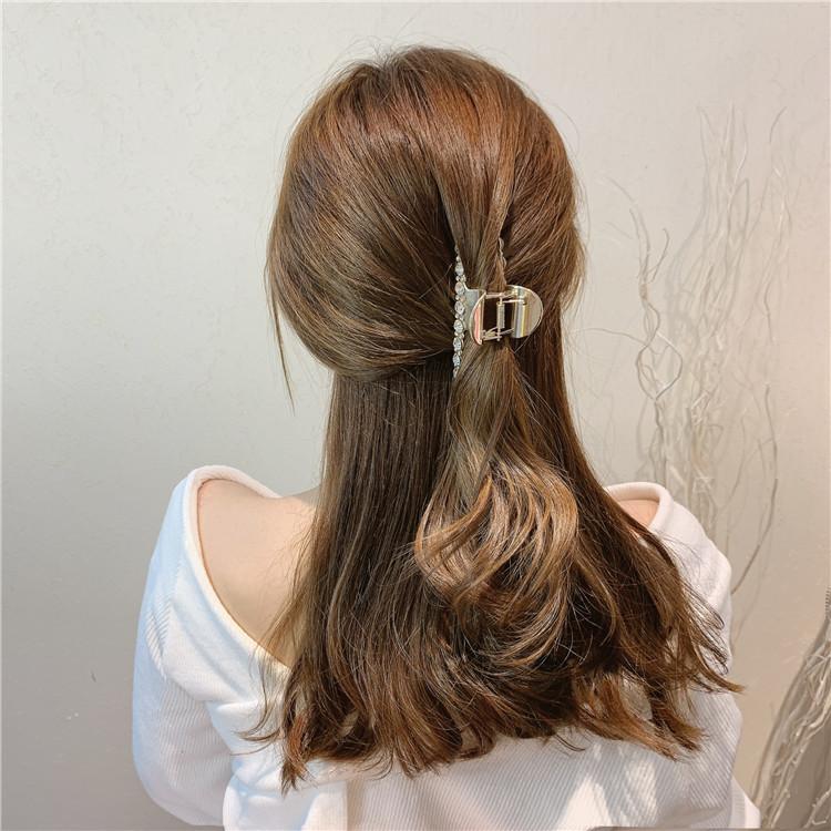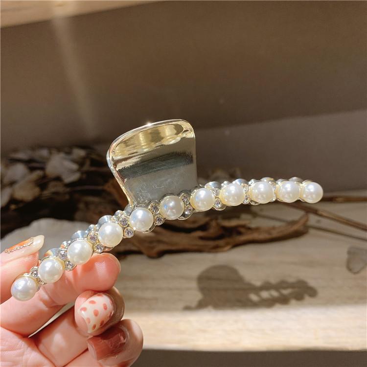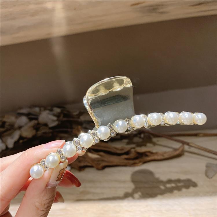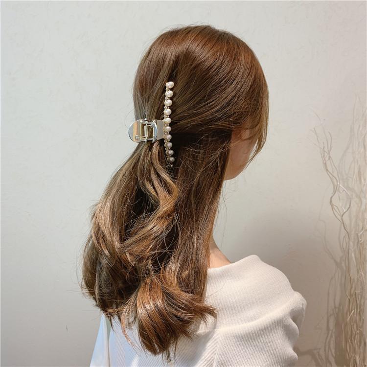 Pinza de metal estilo coreano con forma de tiburón, con perlas y diamantes de imitación, sencilla y combinable, accesorio para el cabello para mujer.