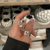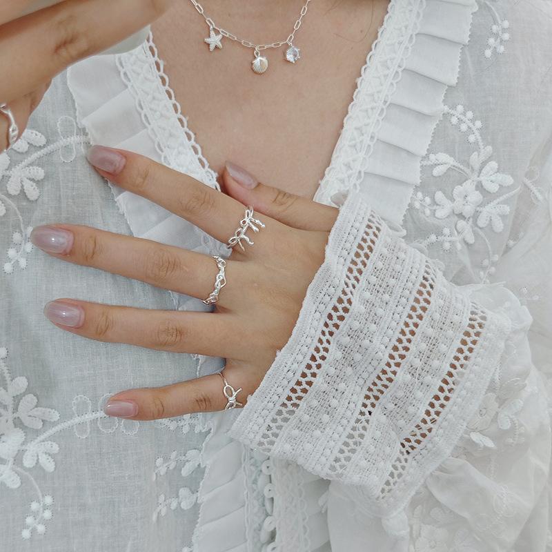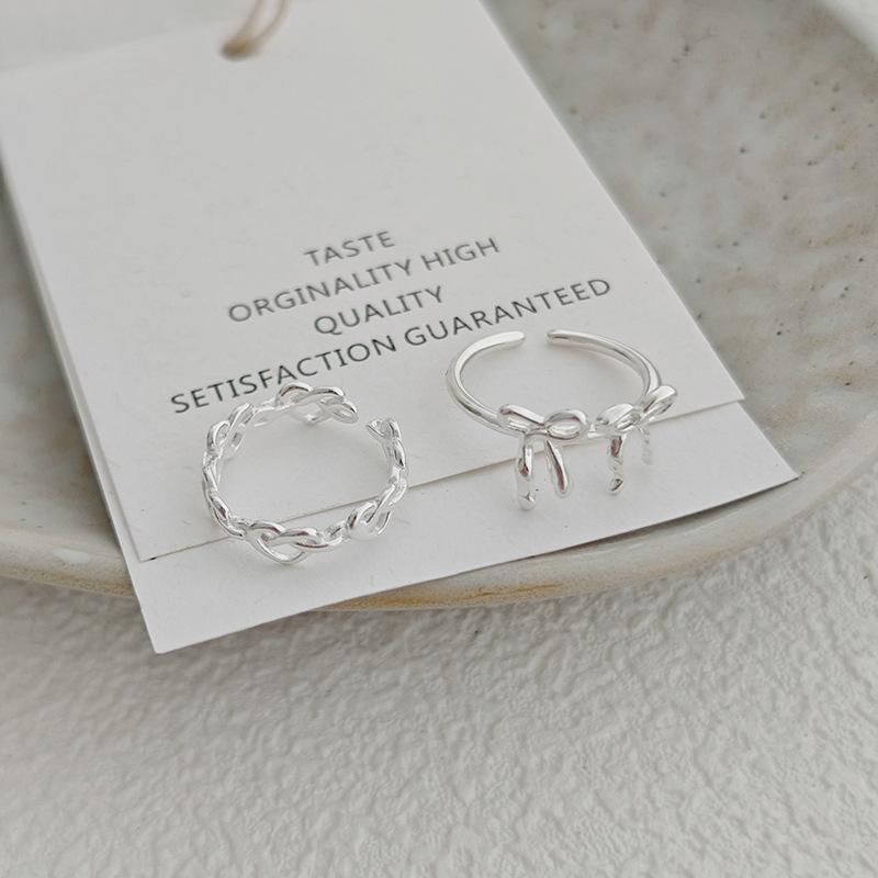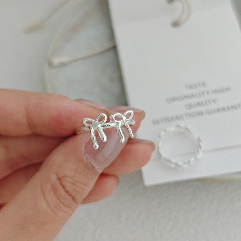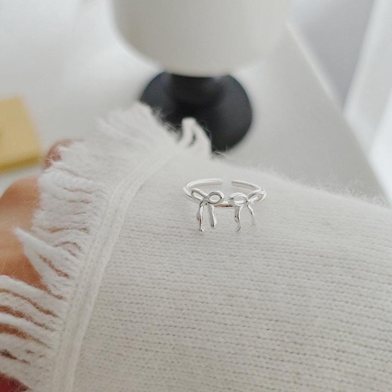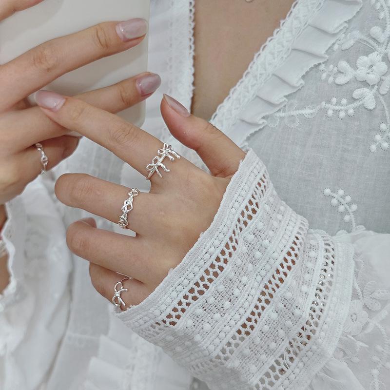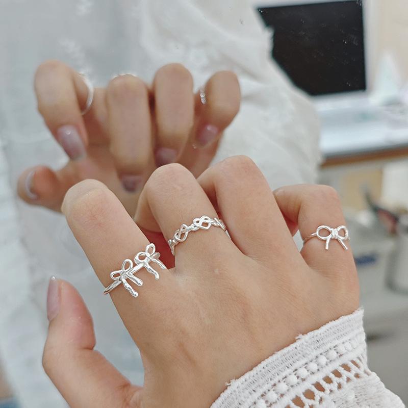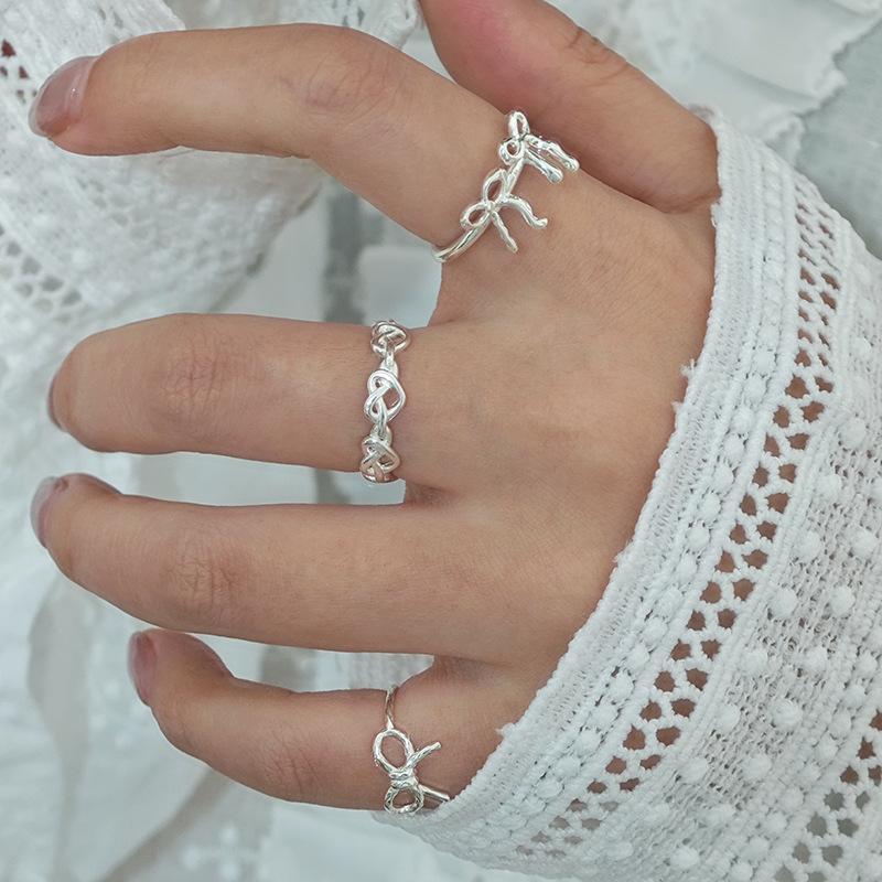 Anillo de Amor Dulce Hueco para Mujer Anillo Abierto Tejido Irregular con Lazo Chapado en Plata S925 Anillo de Dedo Apilado