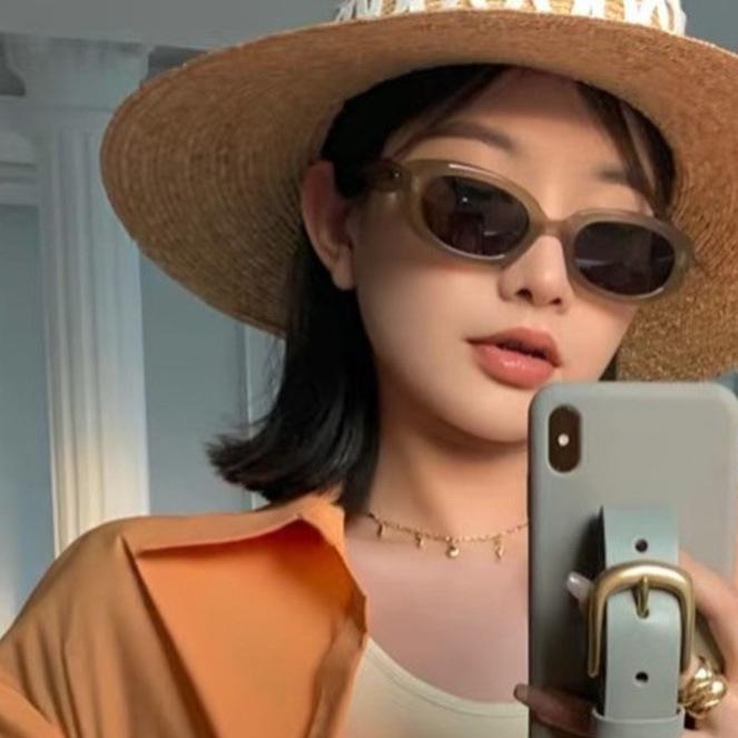 Gafas de sol retro cóncavas de estilo coreano, montura redonda plana marrón, modernas para mujer, para cara redonda, gafas de sol de alta gama para hombre