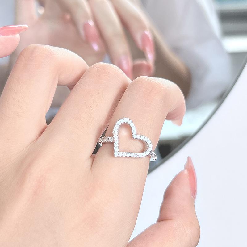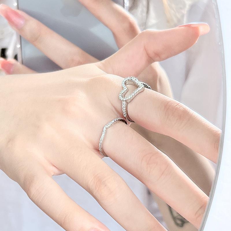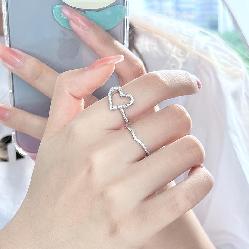 Anillo de dedo índice con diseño de nicho de alta gama, ligero y moderno, con apertura de circonita incrustada de diamantes, ideal para mujer.