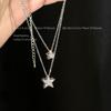 Collar de doble capa con forma de estrella de amor Mang para mujer, diseño moderno de nicho, diseño de sentido de alta calidad, cadena de clavícula que combina con todo, elegante collar de cadena