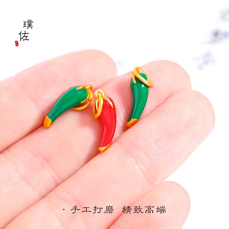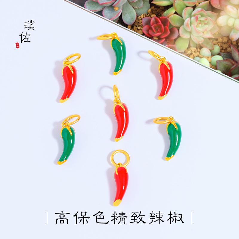 Tienda de oro con fuerte retención de color, colgante de pimienta de esmalte dorado antiguo, accesorios de bricolaje, collar, colgante, cadena de clavícula para mujer