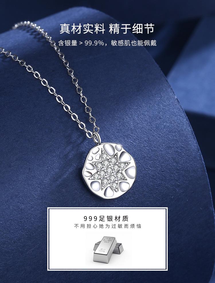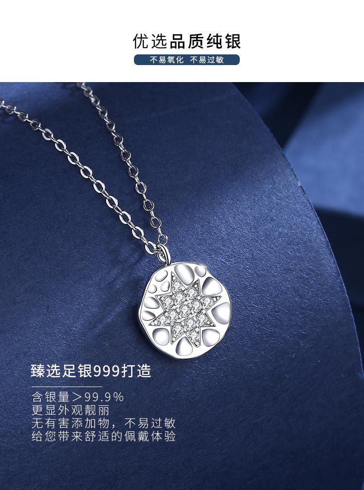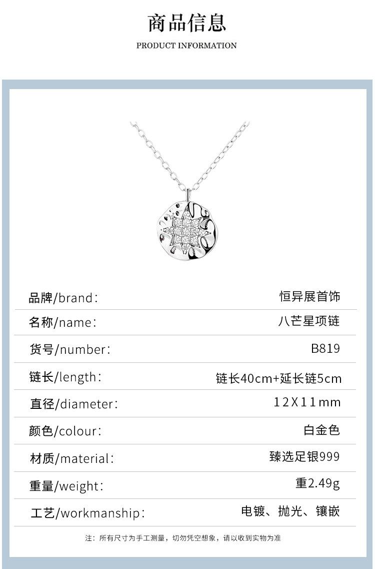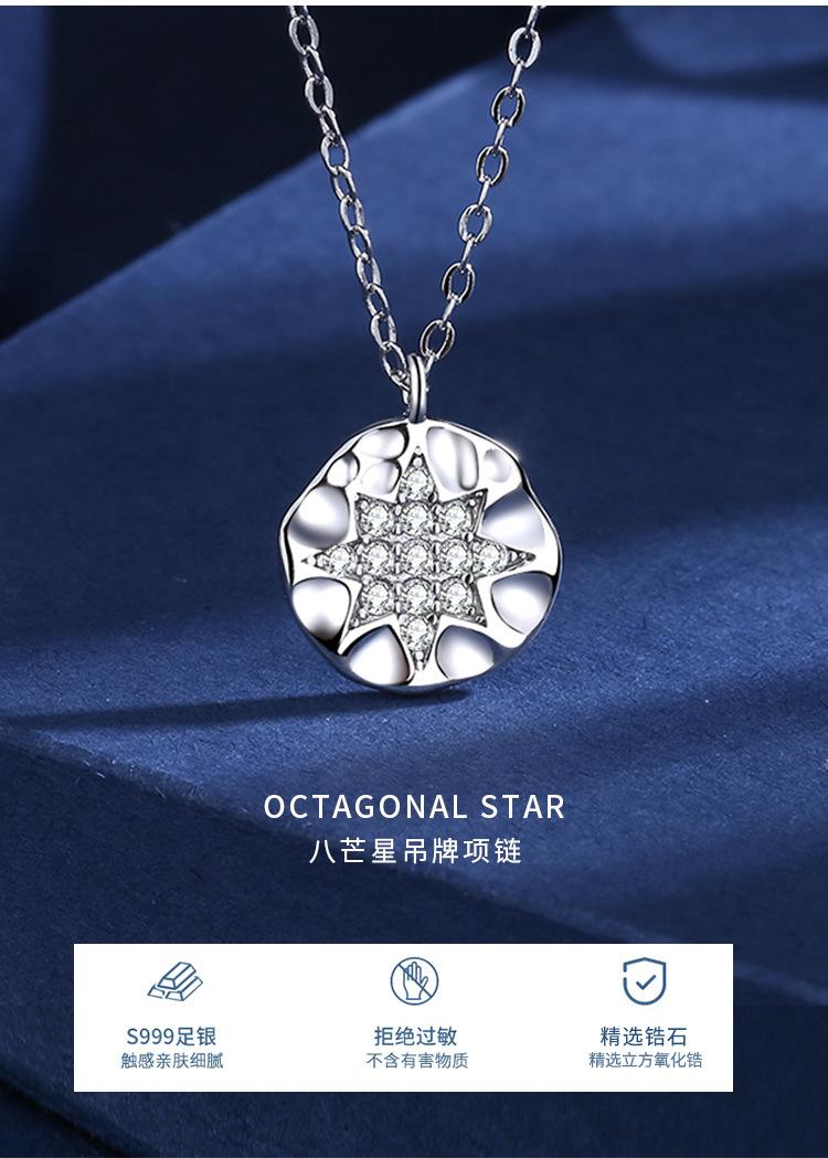 Exposición Hengyi, collar con colgante de estrella de ocho mang en plata de ley 999, nuevo modelo, para mujer, combina con todo, estilo moderno y elegante.