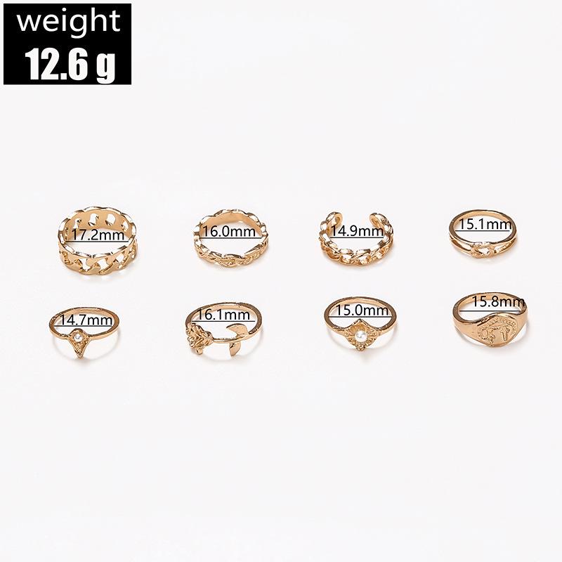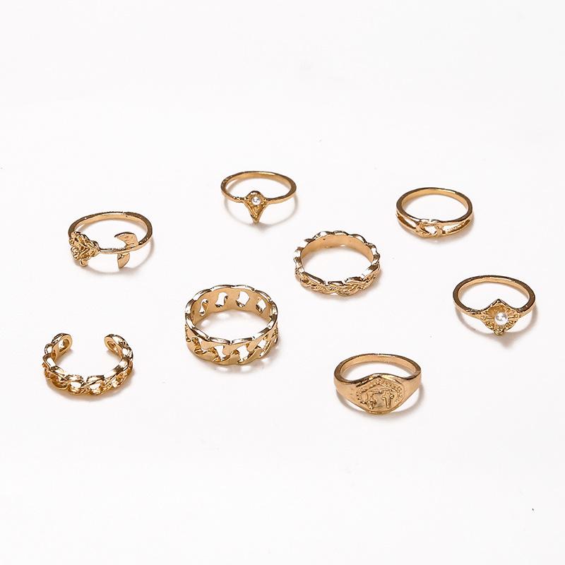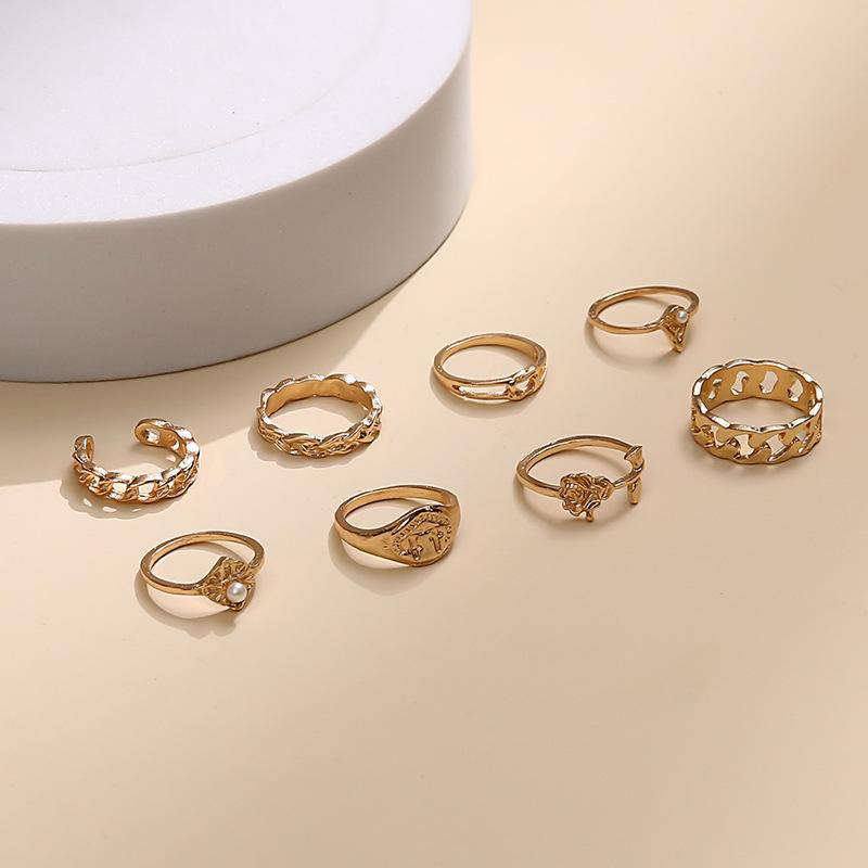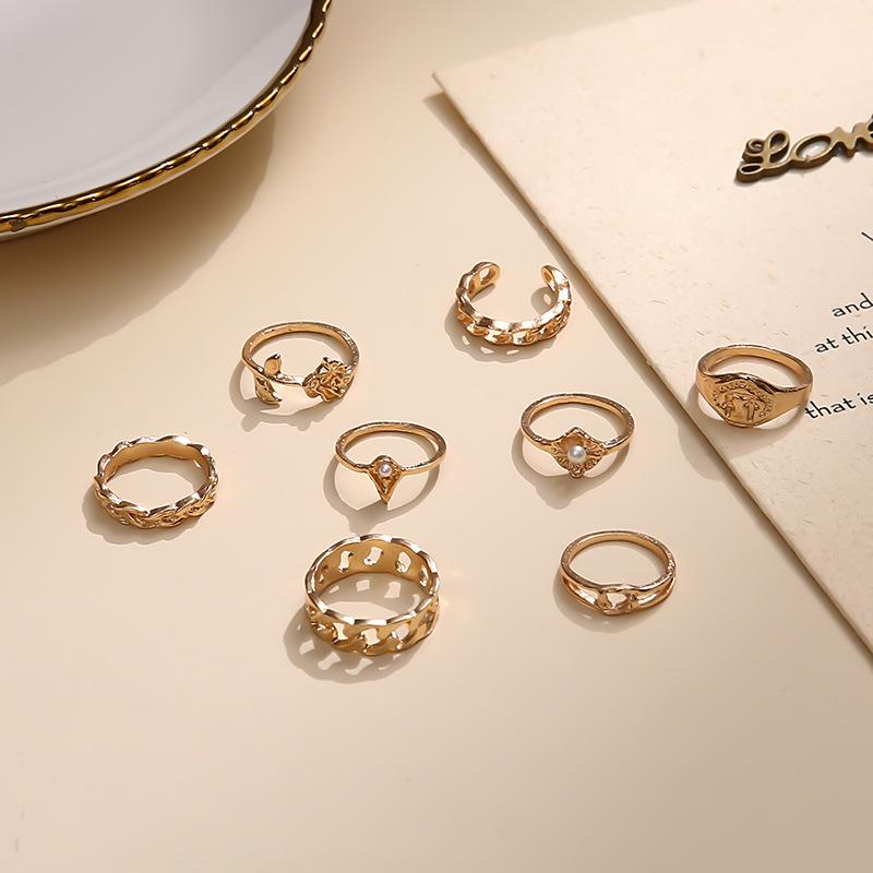 Europa y Estados Unidos anillo de articulación de aleación nuevo transfronterizo creativo simple perla rosa juego de anillos 8 piezas al por mayor