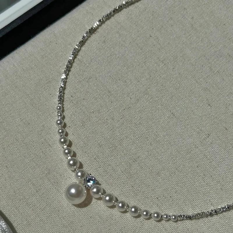 Collar de plata rota con perla francesa para mujer, de verano, ligero, de lujo, de nicho, de alto temperamento, cadena de clavícula 2024.