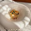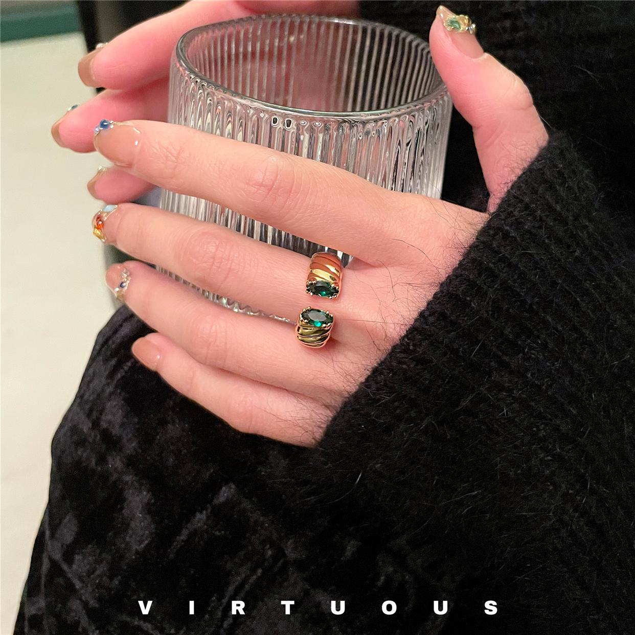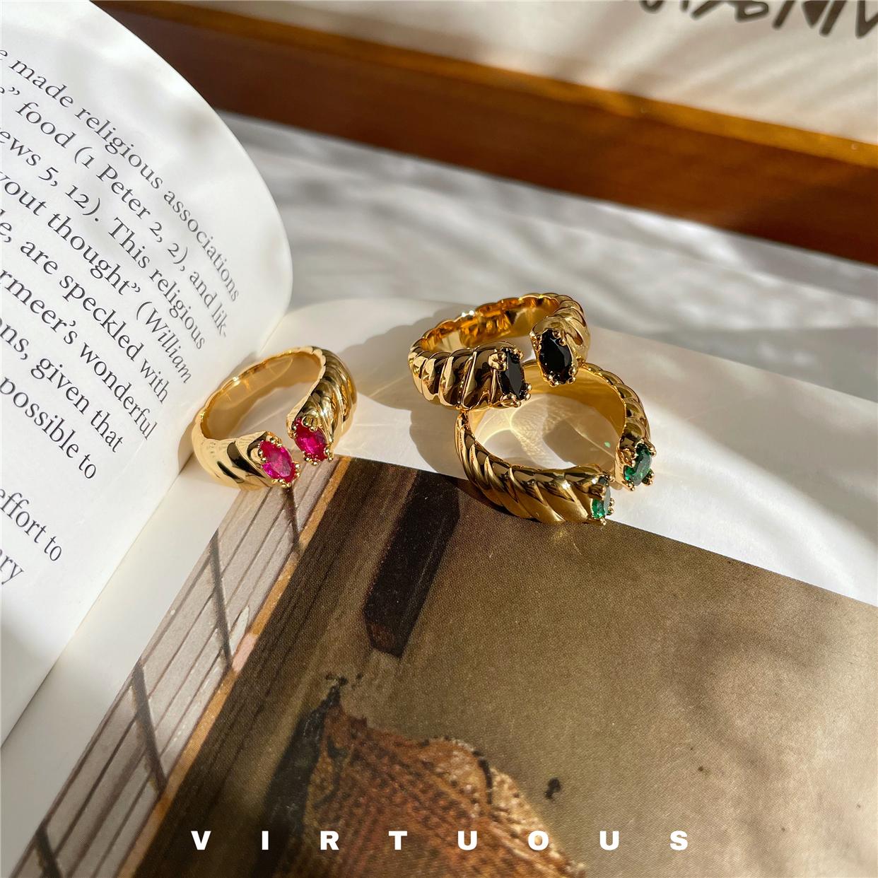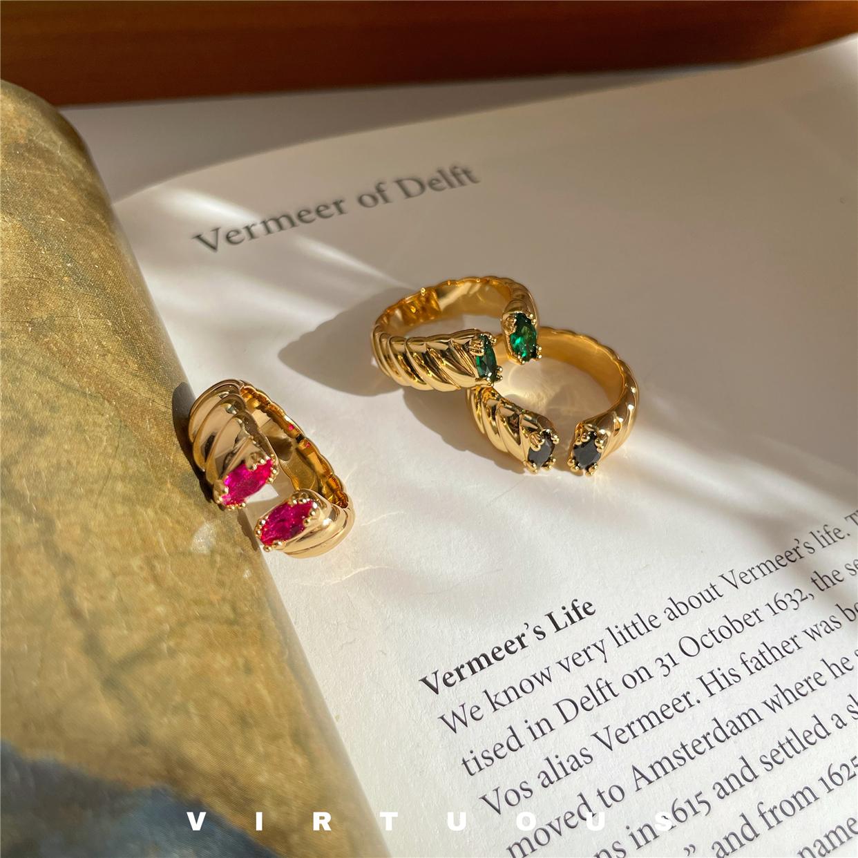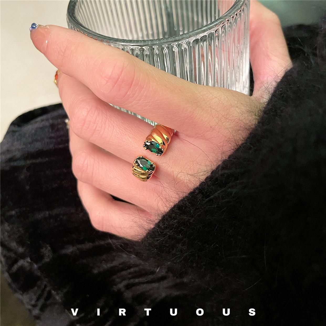 Anillo abierto de temperamento chapado en oro, virtuoso, hermoso, nicho, medieval, vintage, gema colorida, estilo europeo y americano