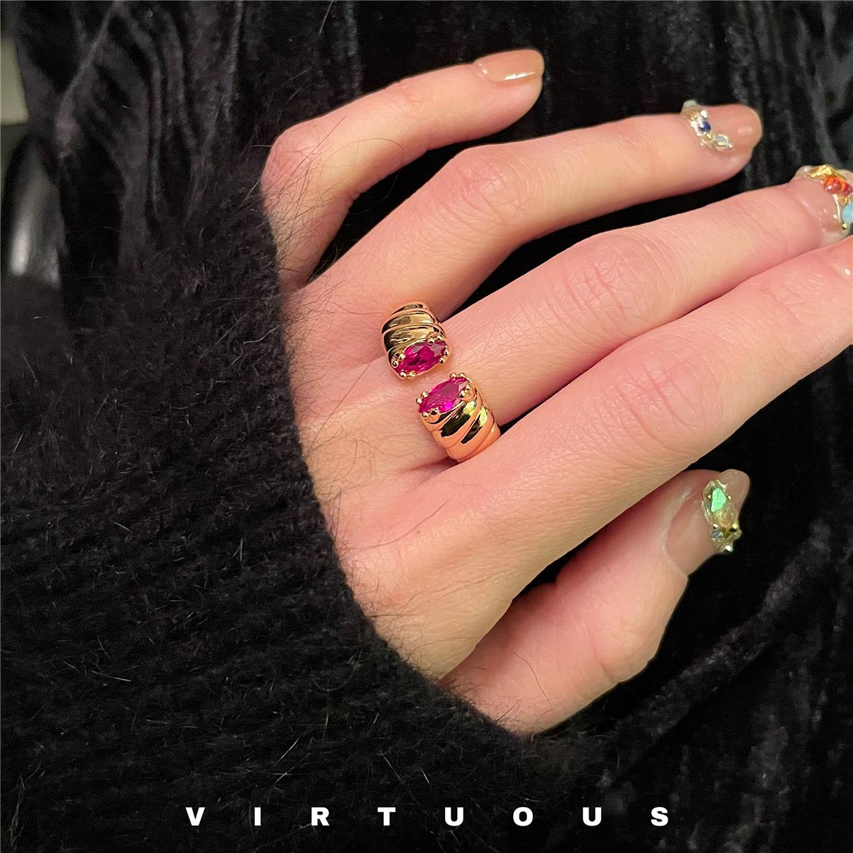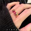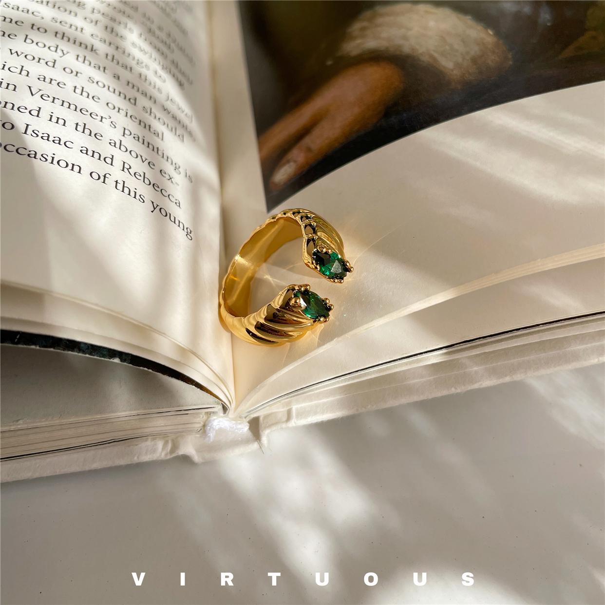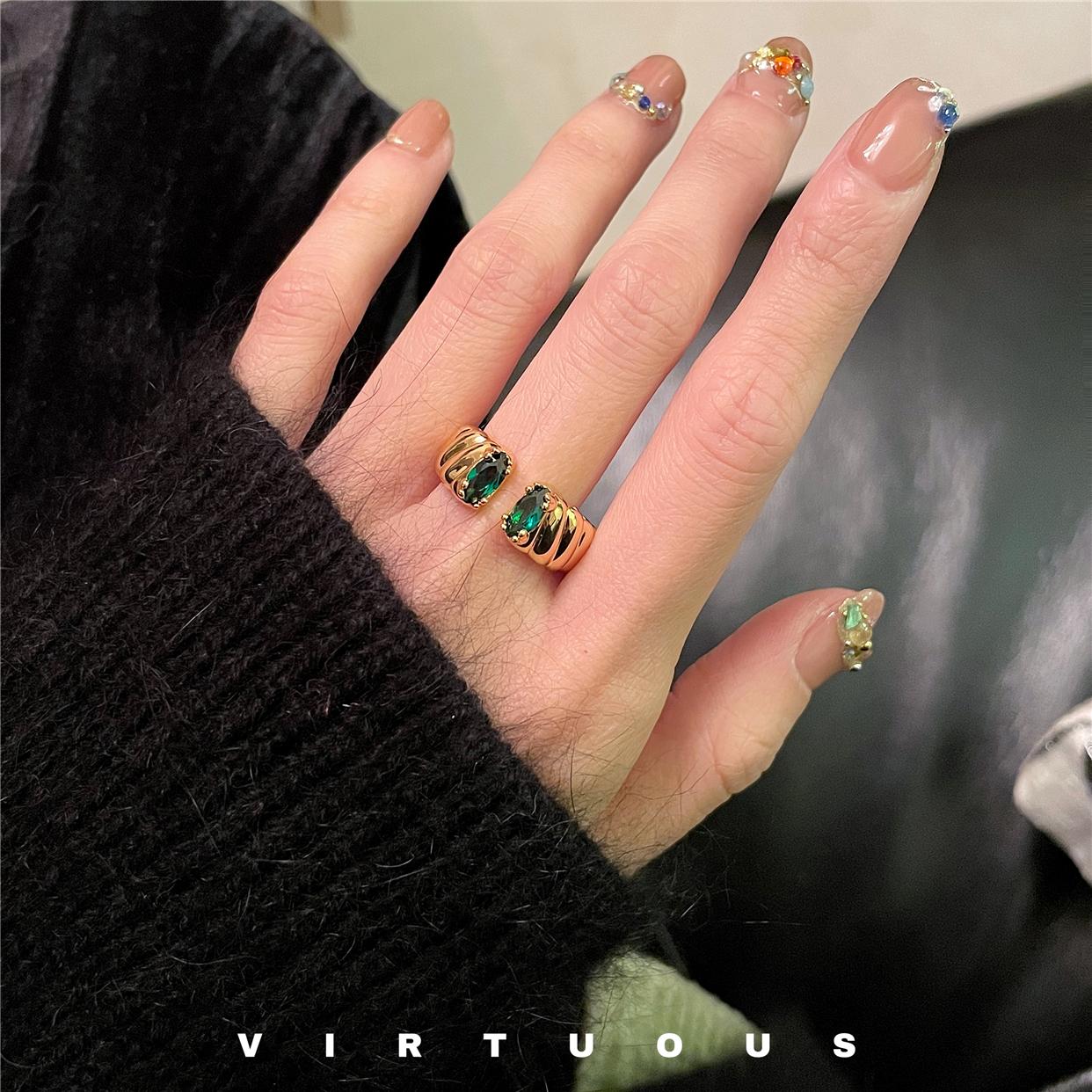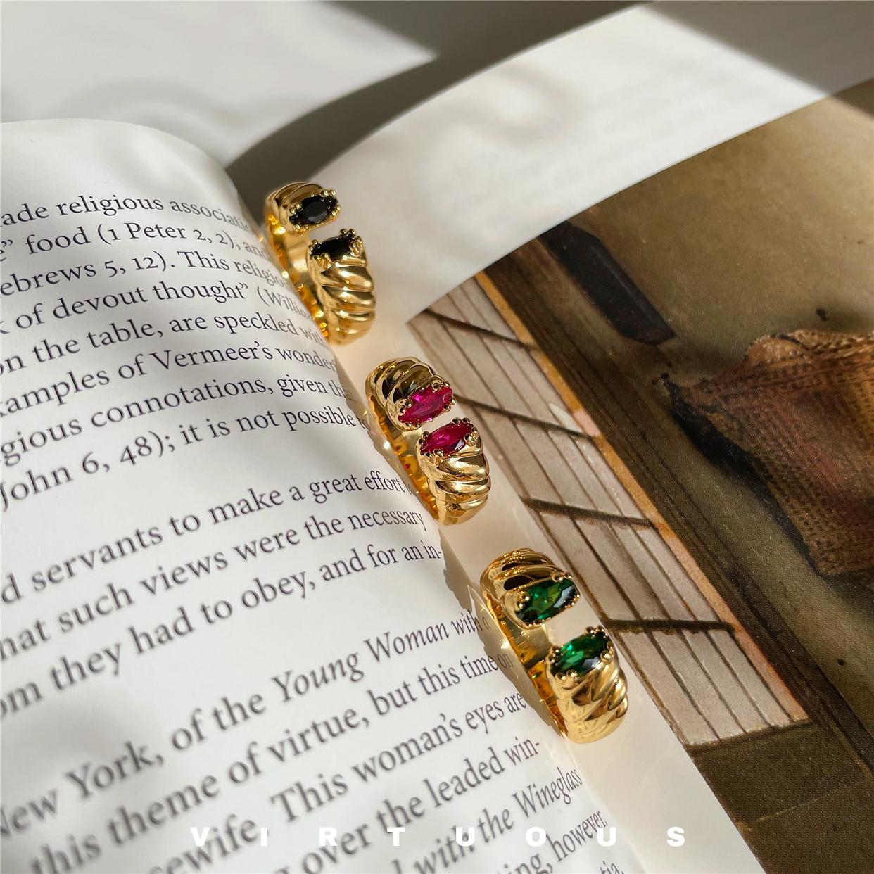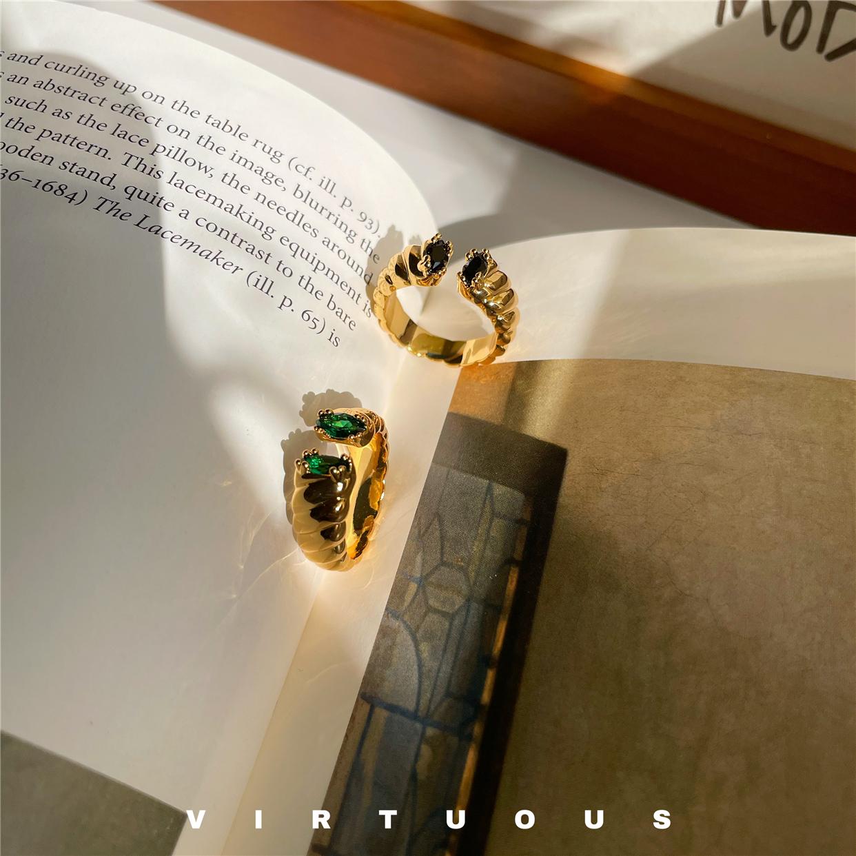 Anillo abierto de temperamento chapado en oro, virtuoso, hermoso, nicho, medieval, vintage, gema colorida, estilo europeo y americano