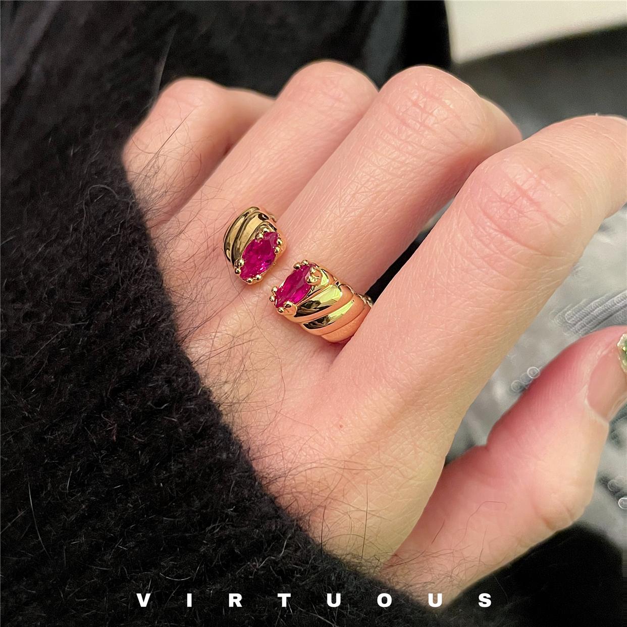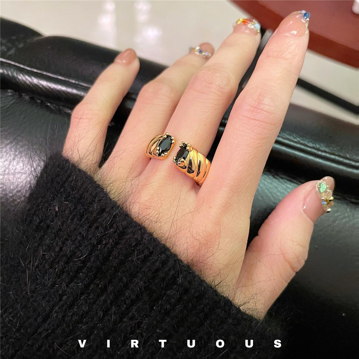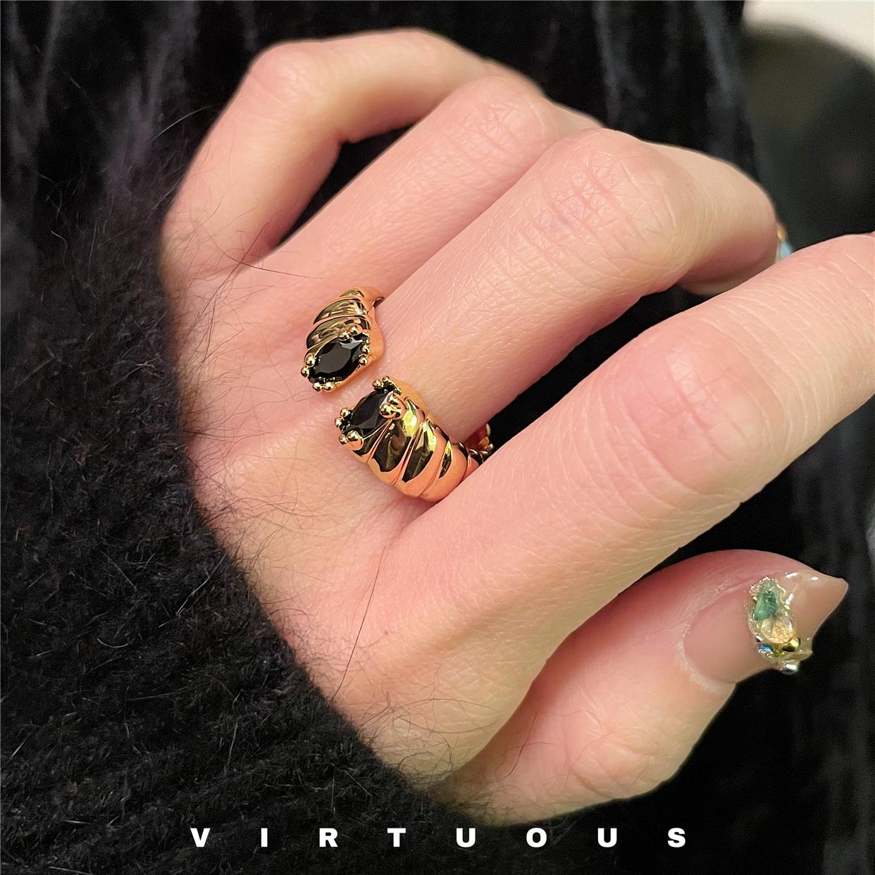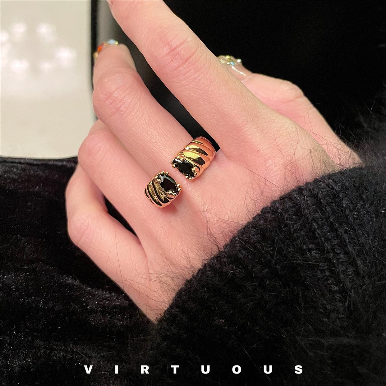 Anillo abierto de temperamento chapado en oro, virtuoso, hermoso, nicho, medieval, vintage, gema colorida, estilo europeo y americano