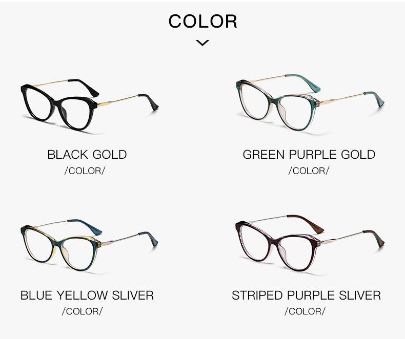 Nuevo Armazón de Gafas Ojo de Gato para Mujer, Bisagra de Resorte Tendencia y Moda, Espejo Plano, Comercio Exterior Transfronterizo Gafas Antiluz Azul Cambiantes de Color