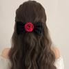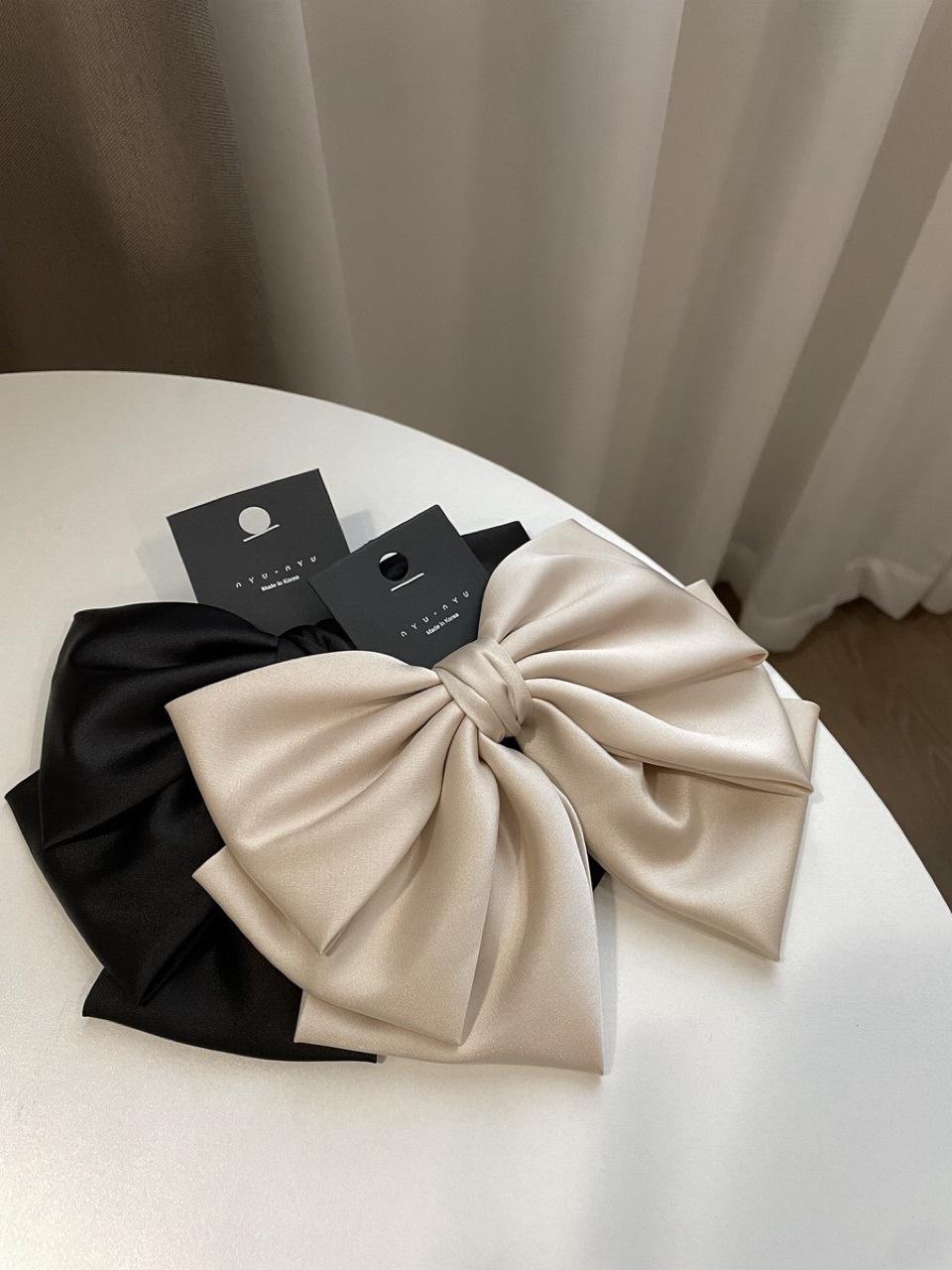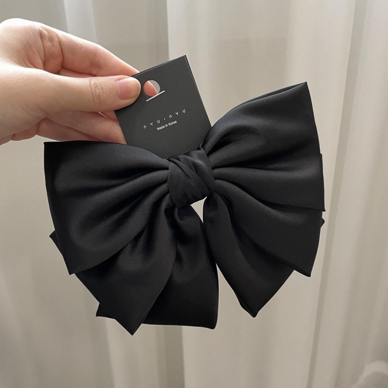 Horquilla de Lazo Grande de Satén Negro de Alta Gama Estilo Coreano para Mujer Clip de Primavera de Alta Calidad Elegante Clip Superior Horquilla Accesorio para el Cabello