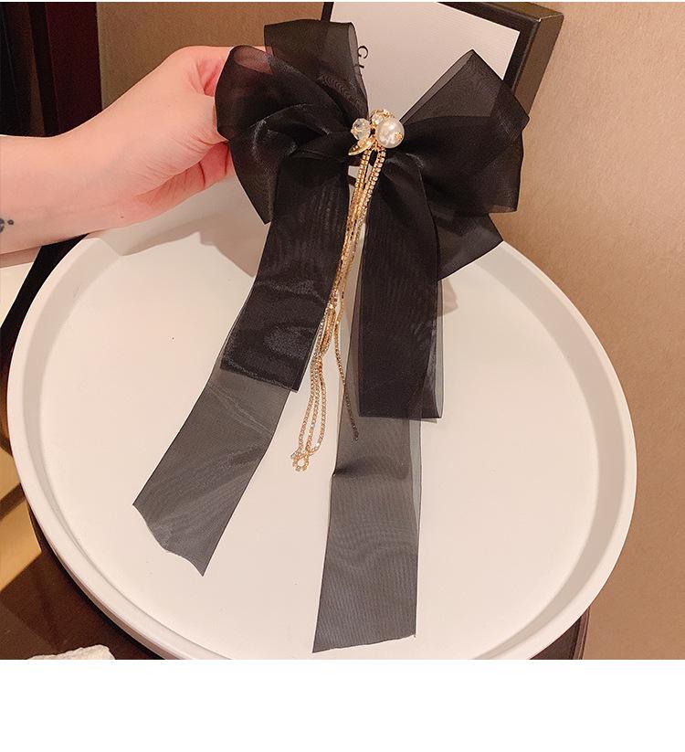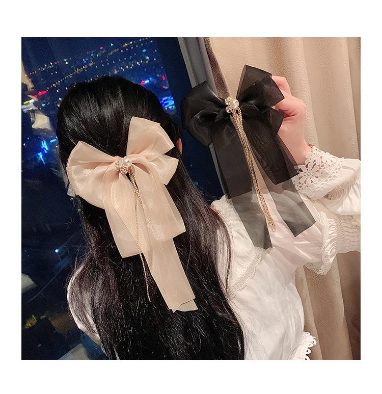 Horquilla de lazo con lazo de estilo inmortal para niña, popular en Internet coreana, elegante horquilla con borla de diamante y clip de resorte.