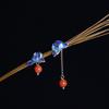 Aretes de Ciervo Dorado Rey Plata S925 Vintage Tecnología Azul Quemado Incrustados Ágata Roja del Sur Al Por Mayor Aretes de Moda Edición AB para Mujer
