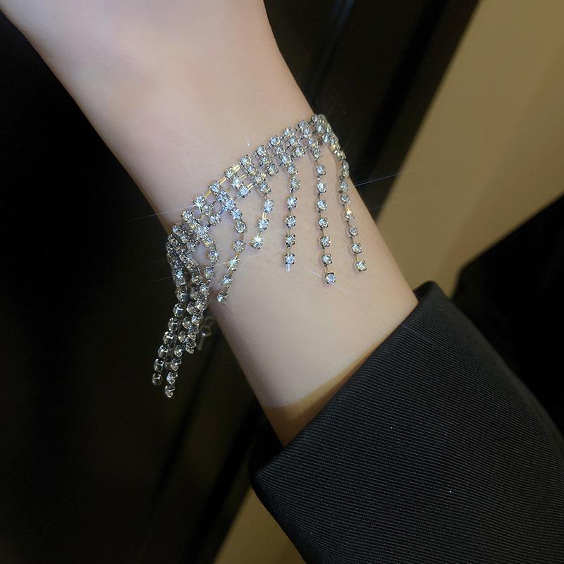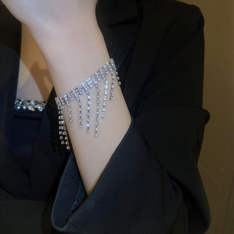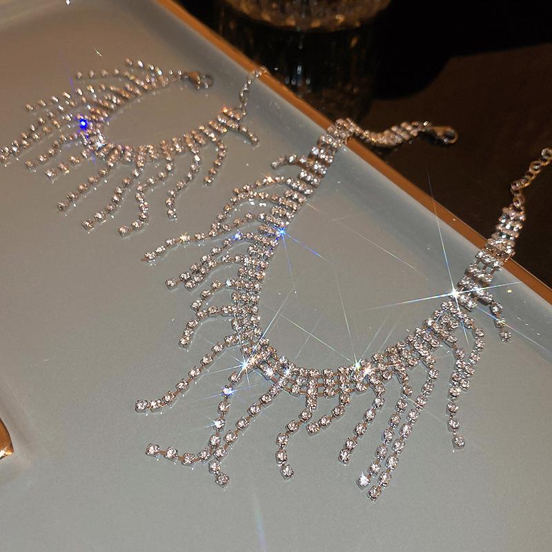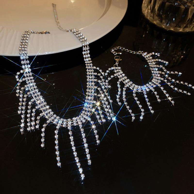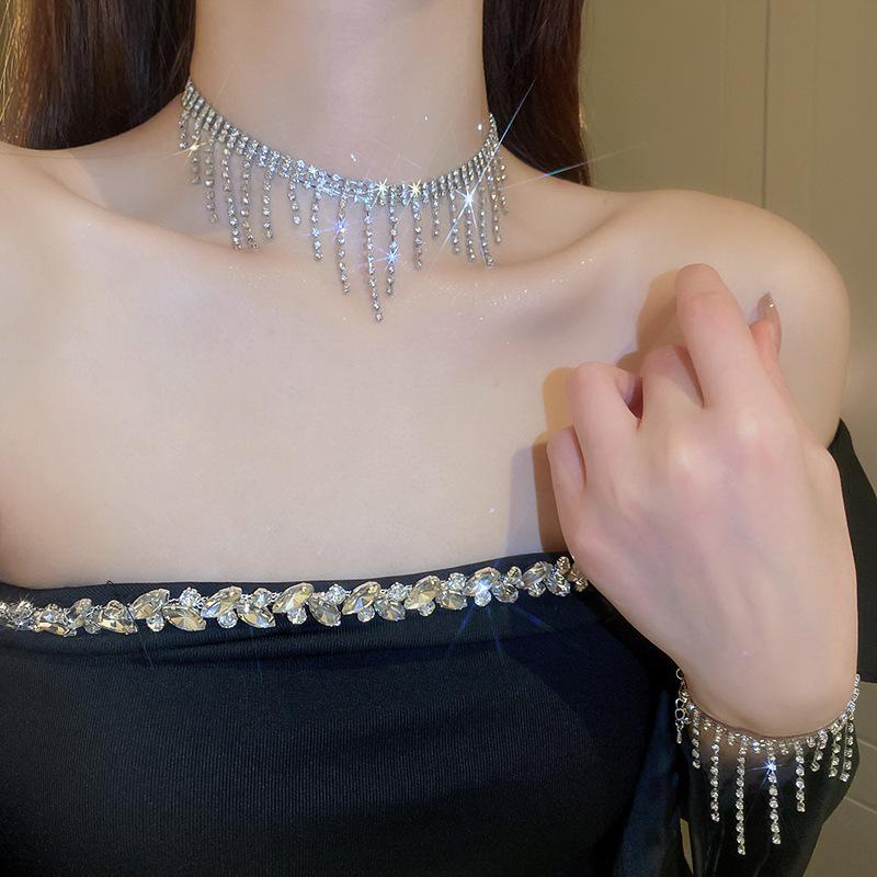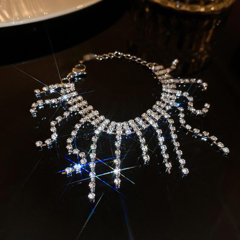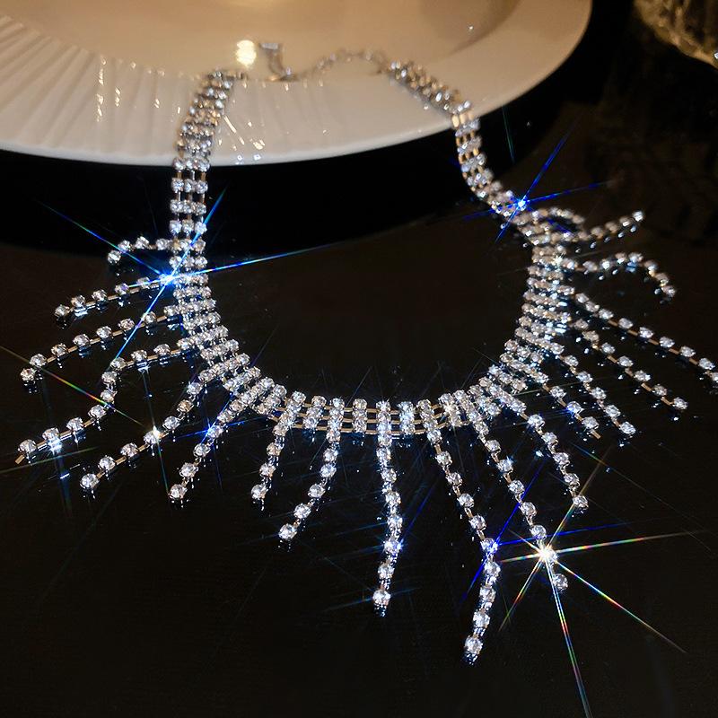 Gargantilla con borlas de diamantes súper brillantes y estilo lujoso, estilo europeo y americano, cadena de clavícula con temperamento de nicho para mujer
