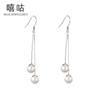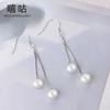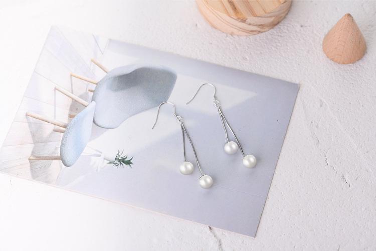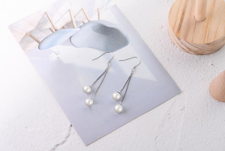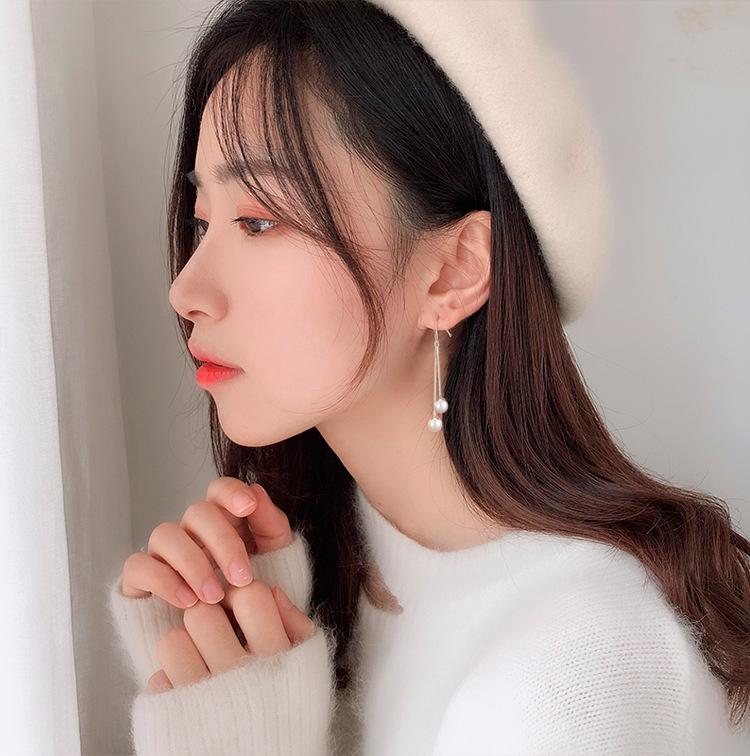 Hee Goo E0184 S925 Pendientes de plata con forma de gancho para la oreja, elegantes pendientes coreanos largos de perlas, personalidad femenina, 100 pendientes con flecos