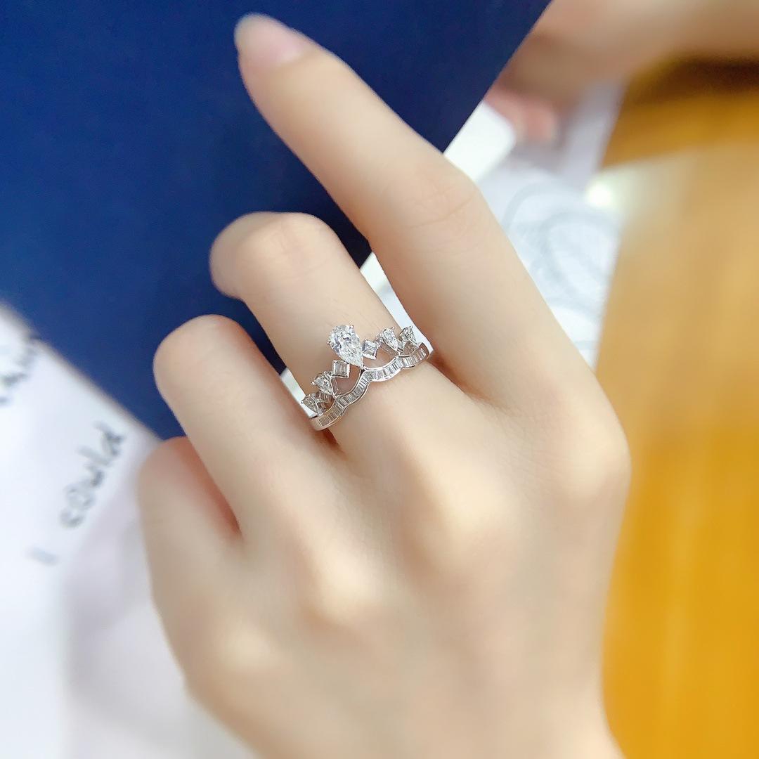 Moda de Lujo Ligero Corona Coronación Anillo de Diamante de Alto Carbono Anillo de Diamante Simulado Anillo de Boda de 1 Quilate para Mujer Regalo de San Valentín