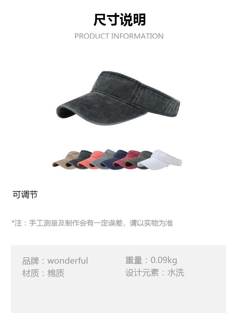 Gorra de Béisbol Top Vacío Algodón Lavado para Hombre y Mujer Verano Exterior Deportes Gorra Pesca Protector Solar Sombrero Sin Sol