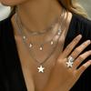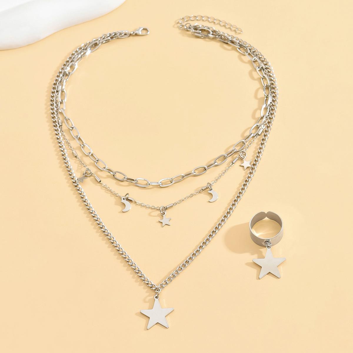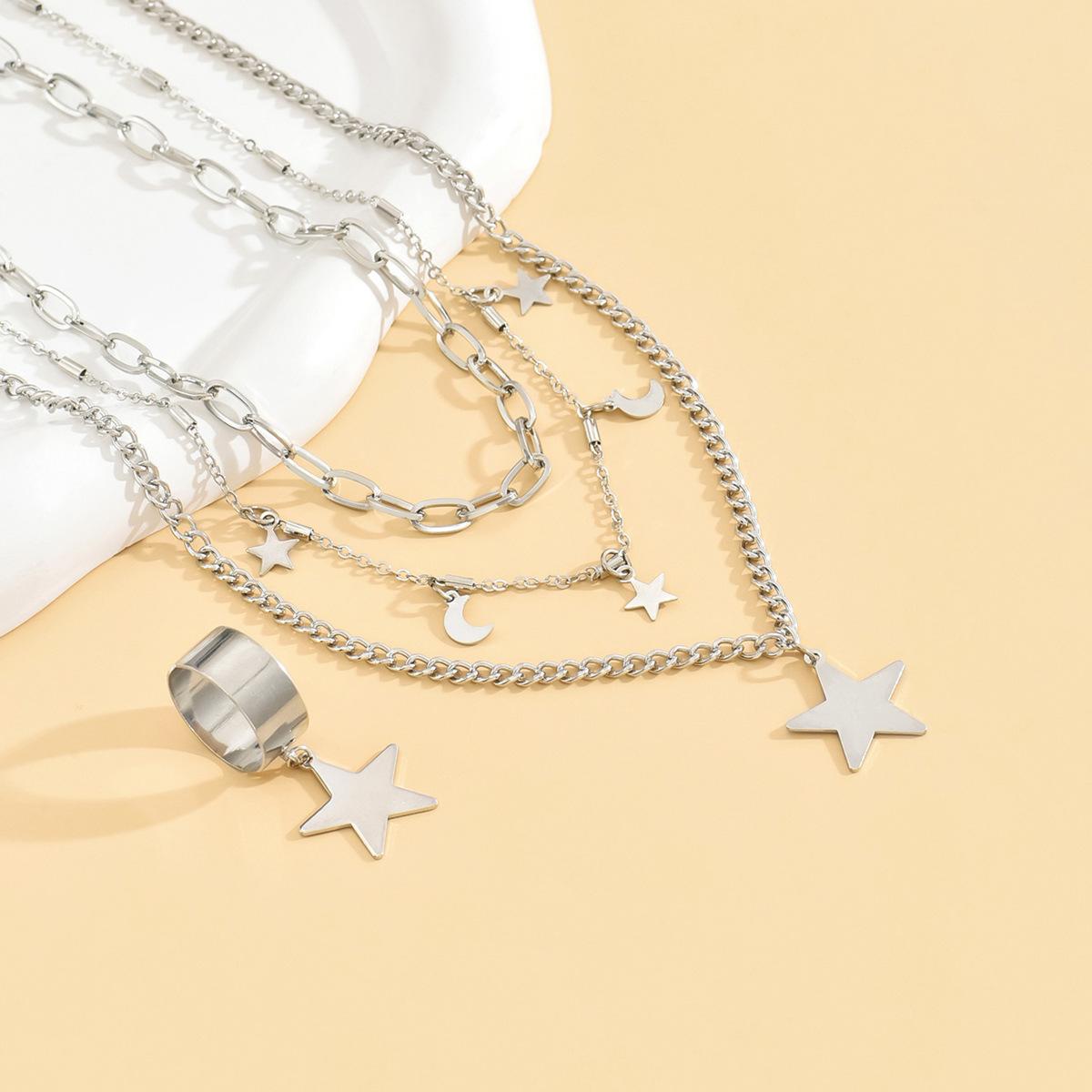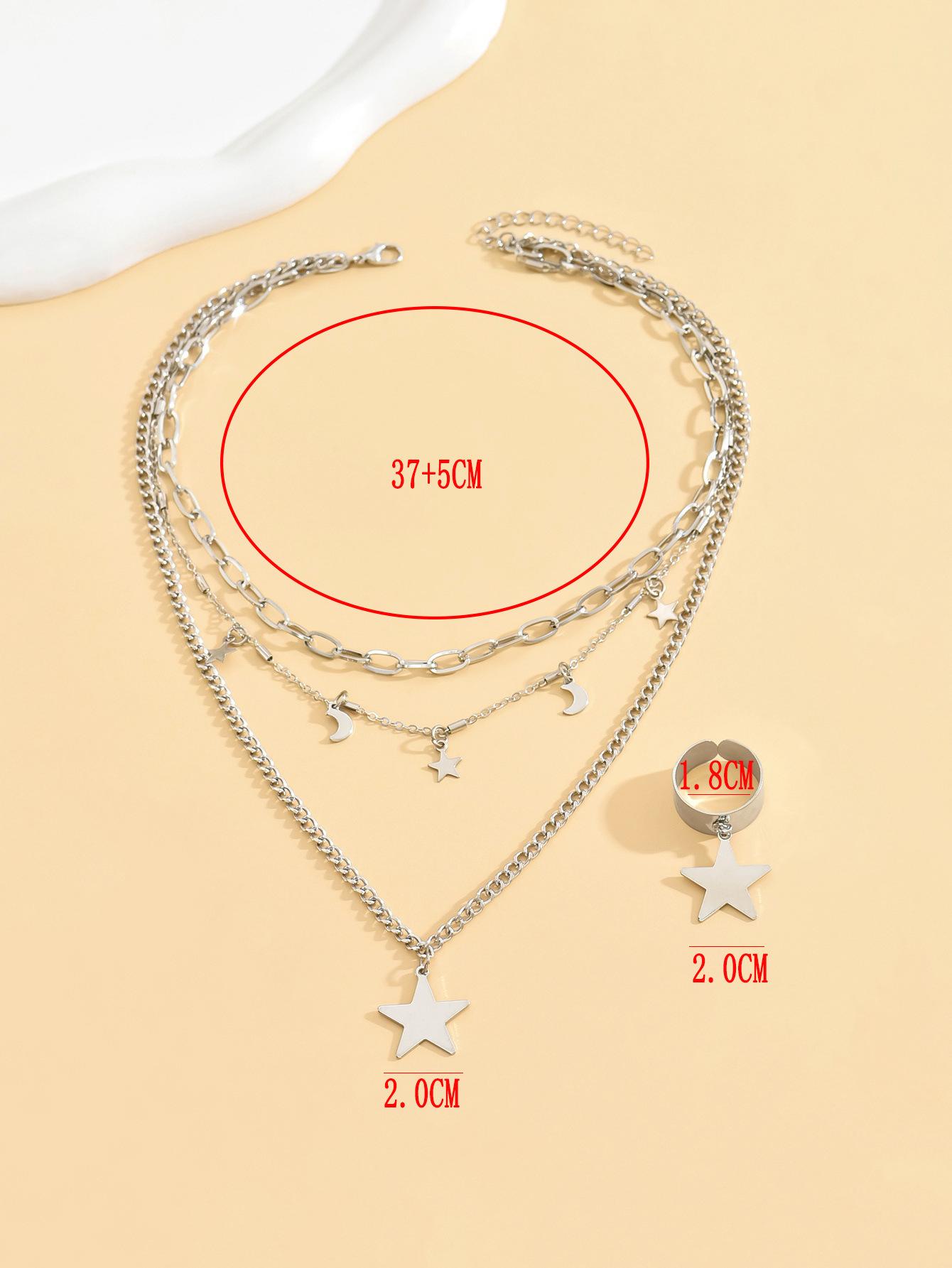 Collar Collar para Mujer Versátil de Alta Gama Collar de Cadena Multicapa Diseño de Colgante de Estrella Luna Collar de Anillo