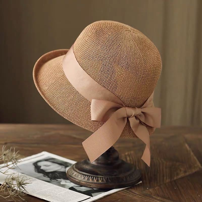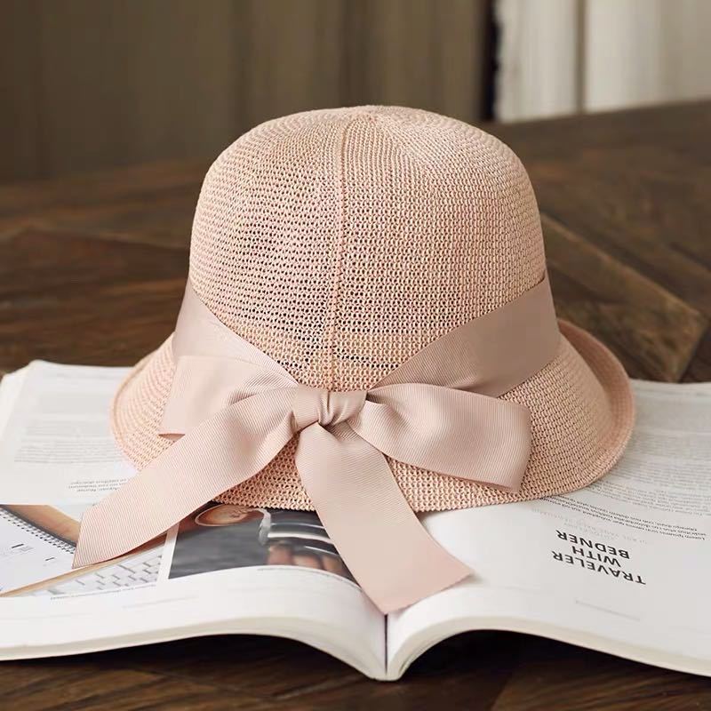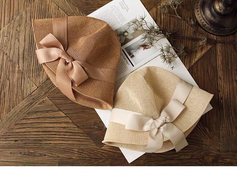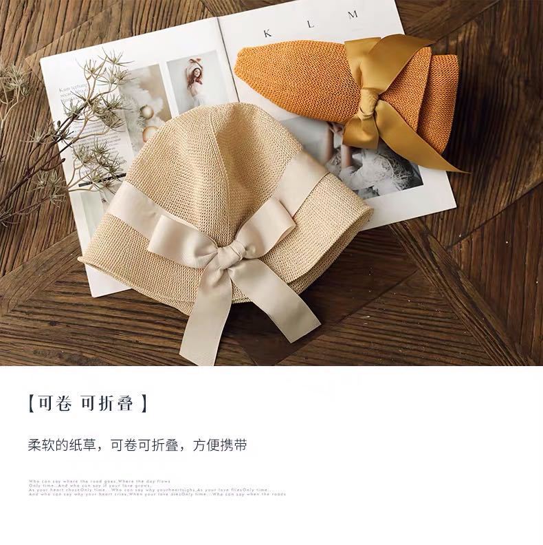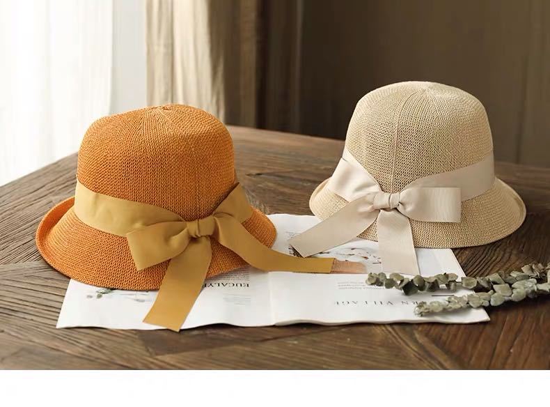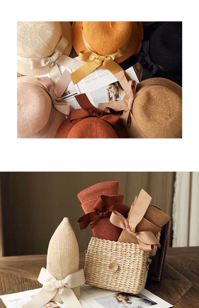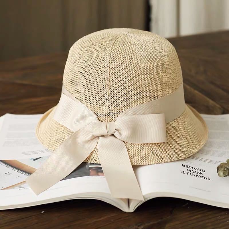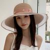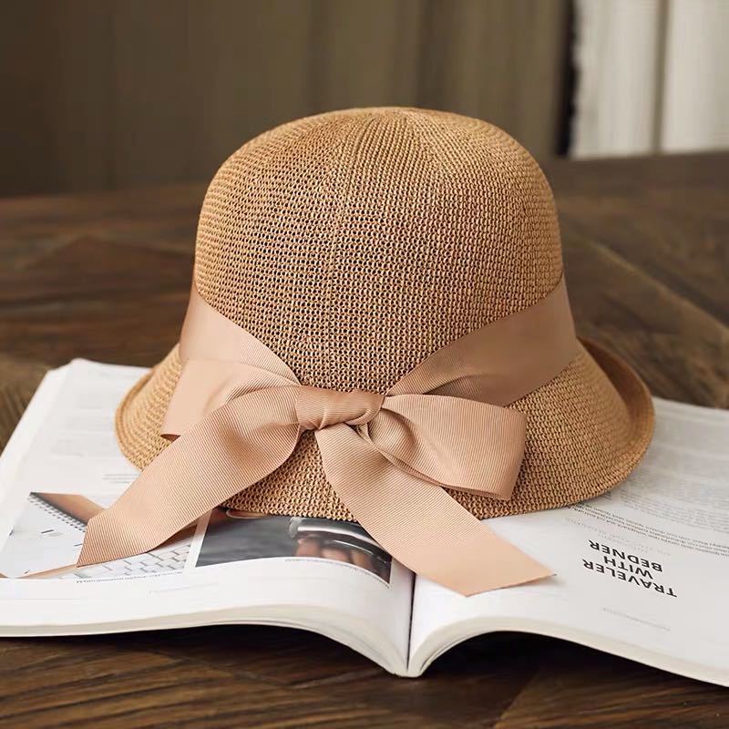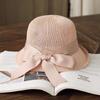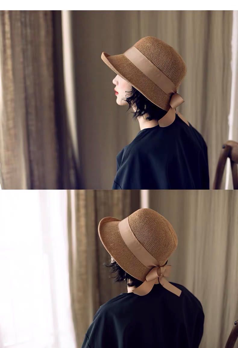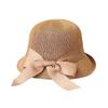 Sombrero para el sol para mujer, informal, de verano, combinable, de paja, con lazo, para vacaciones, con protección solar, de pescador, con borde pequeño.