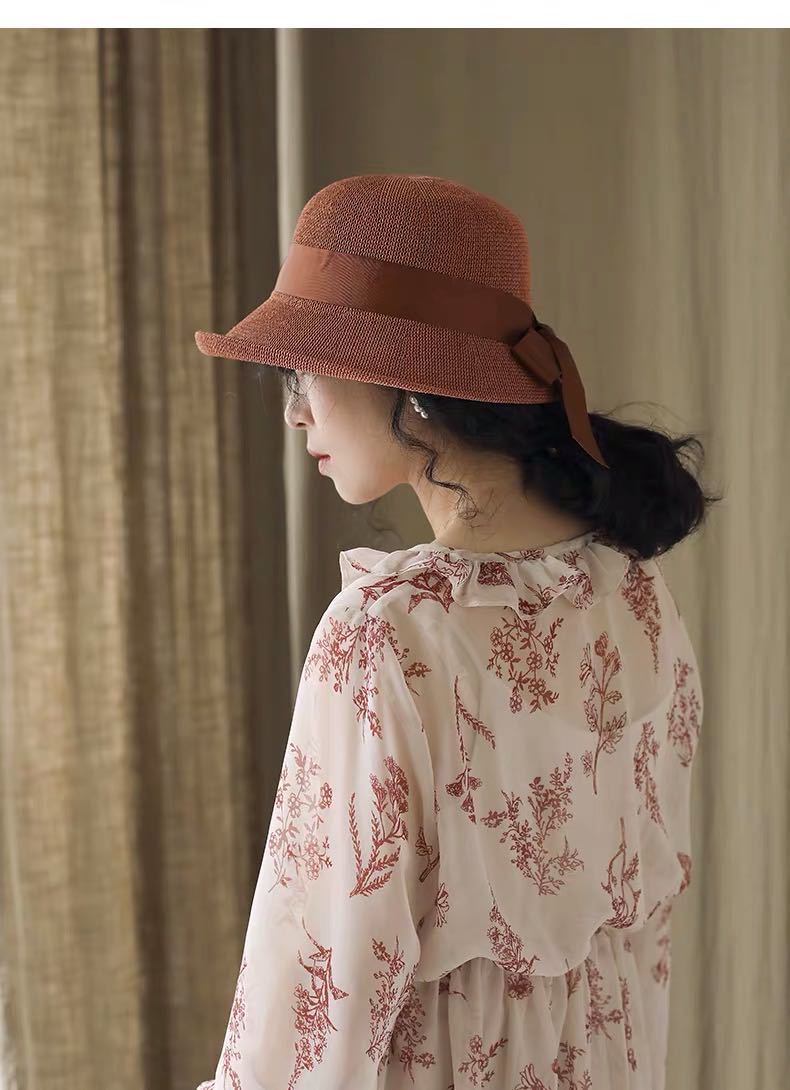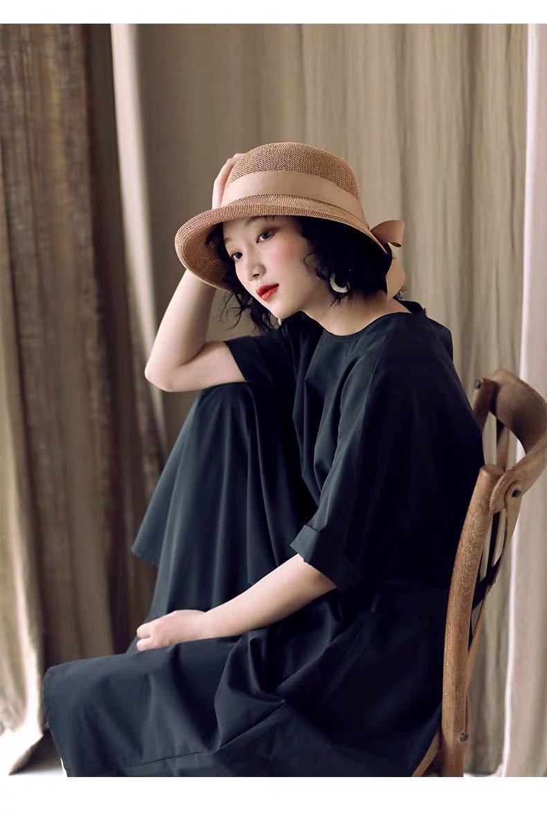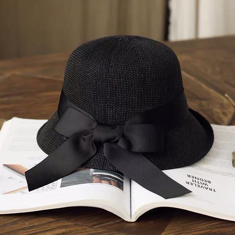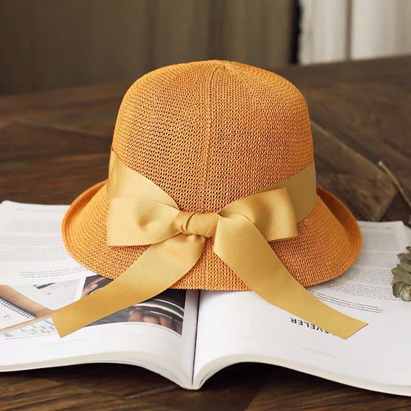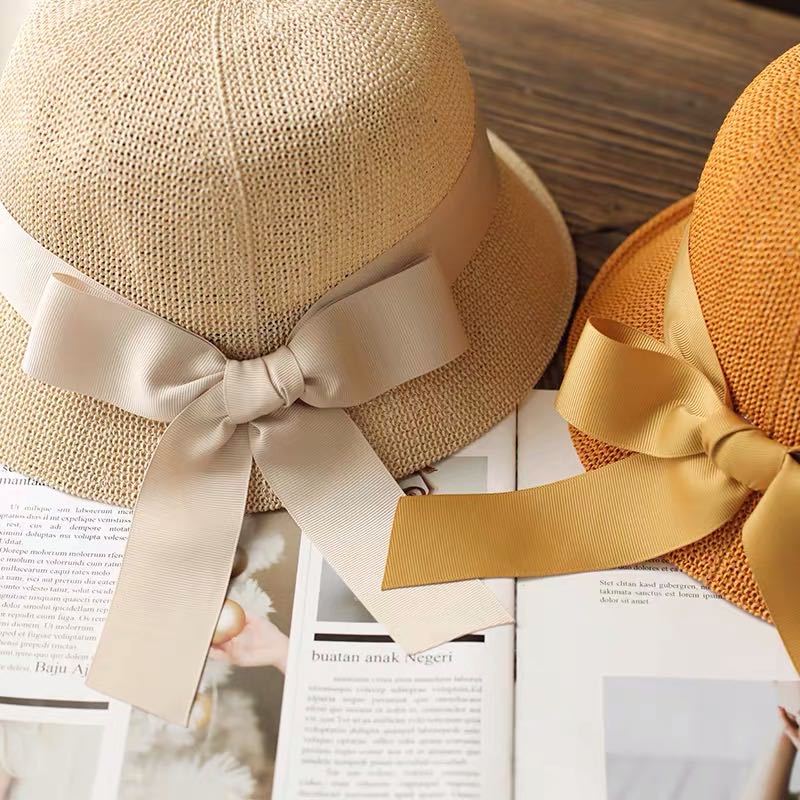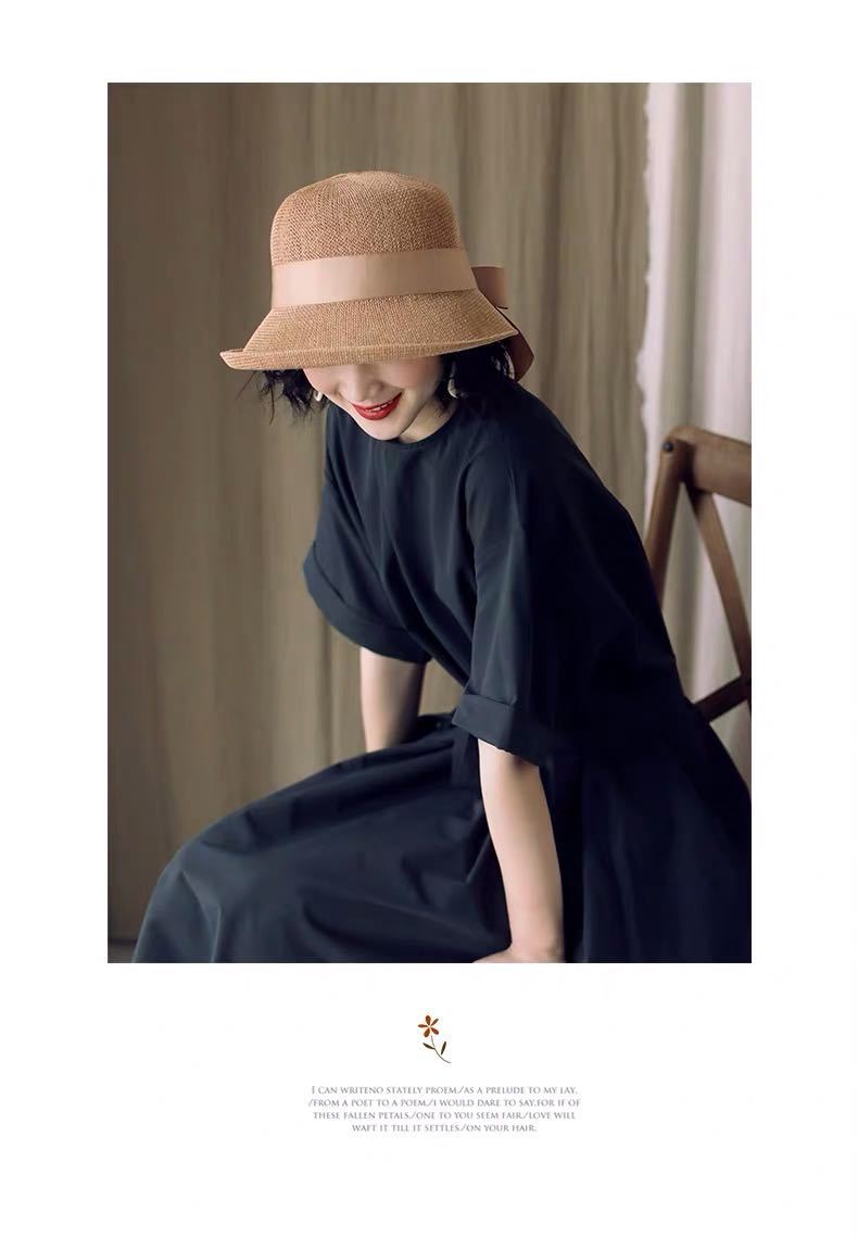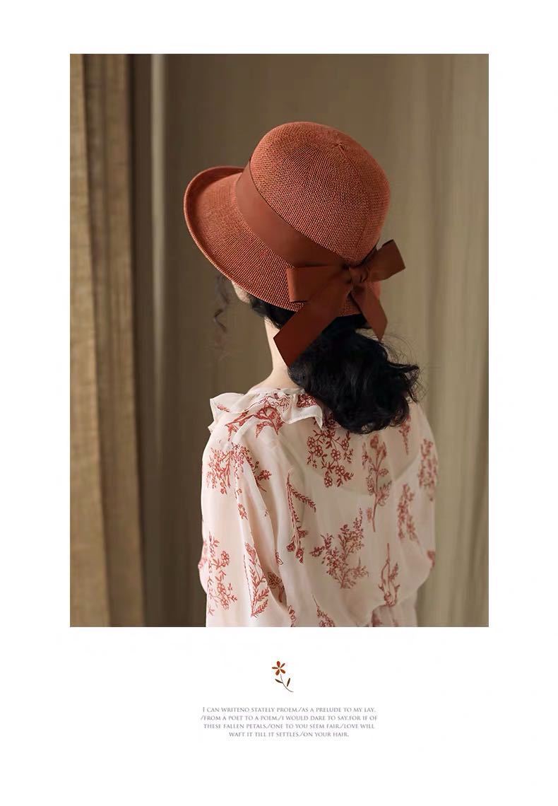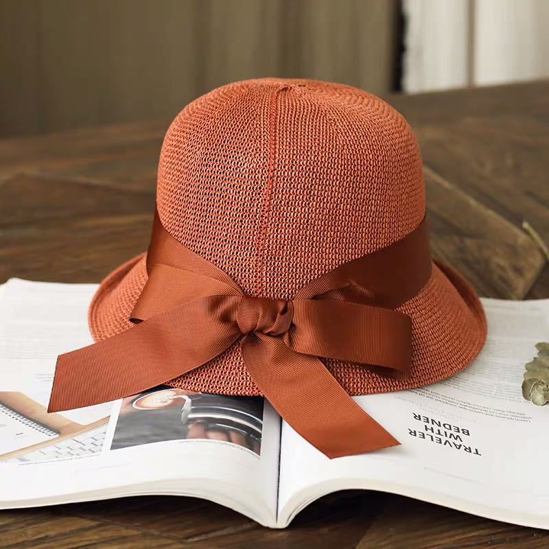 Sombrero para el sol para mujer, informal, de verano, combinable, de paja, con lazo, para vacaciones, con protección solar, de pescador, con borde pequeño.