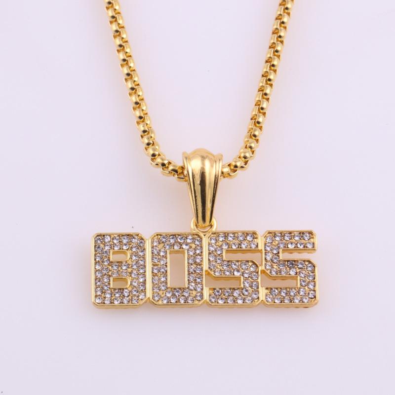 Accesorios de hip-hop de tendencia transfronteriza europea y americana, personalidad de moda, letras, colgante de diamante BOSS, cadena de suéter larga, venta al por mayor