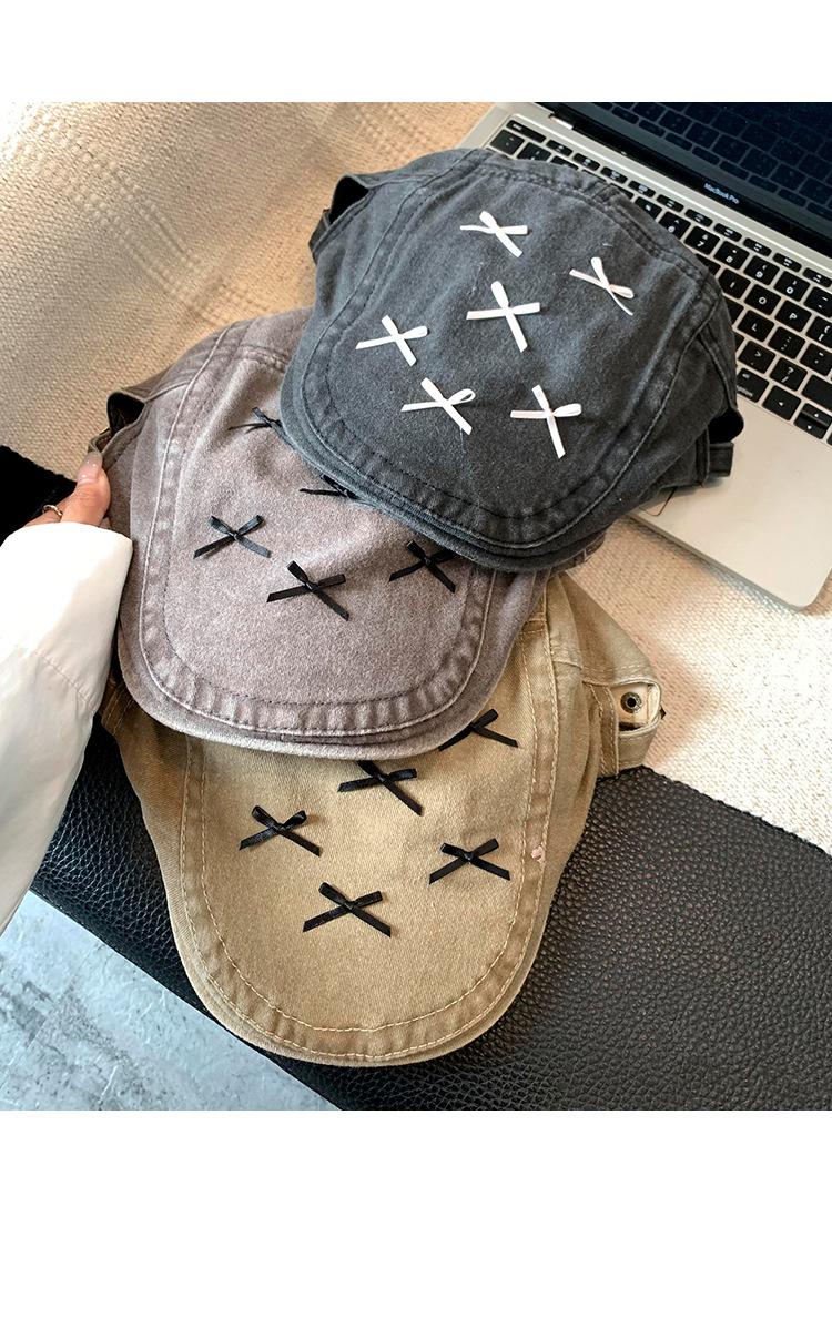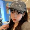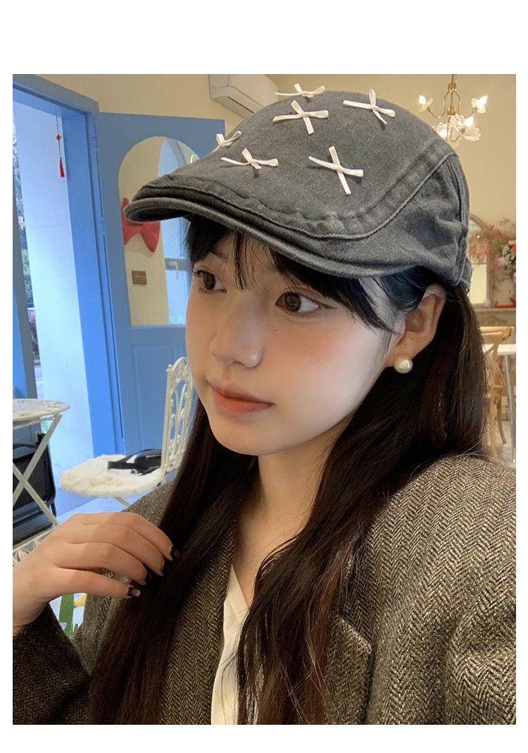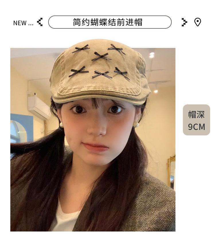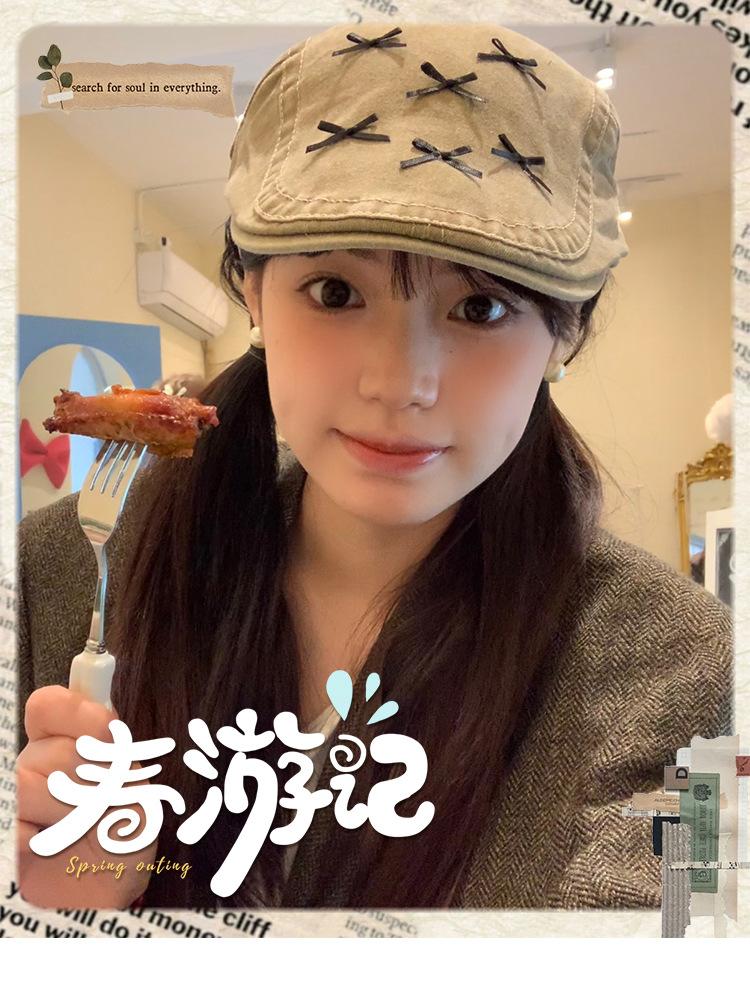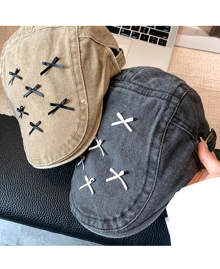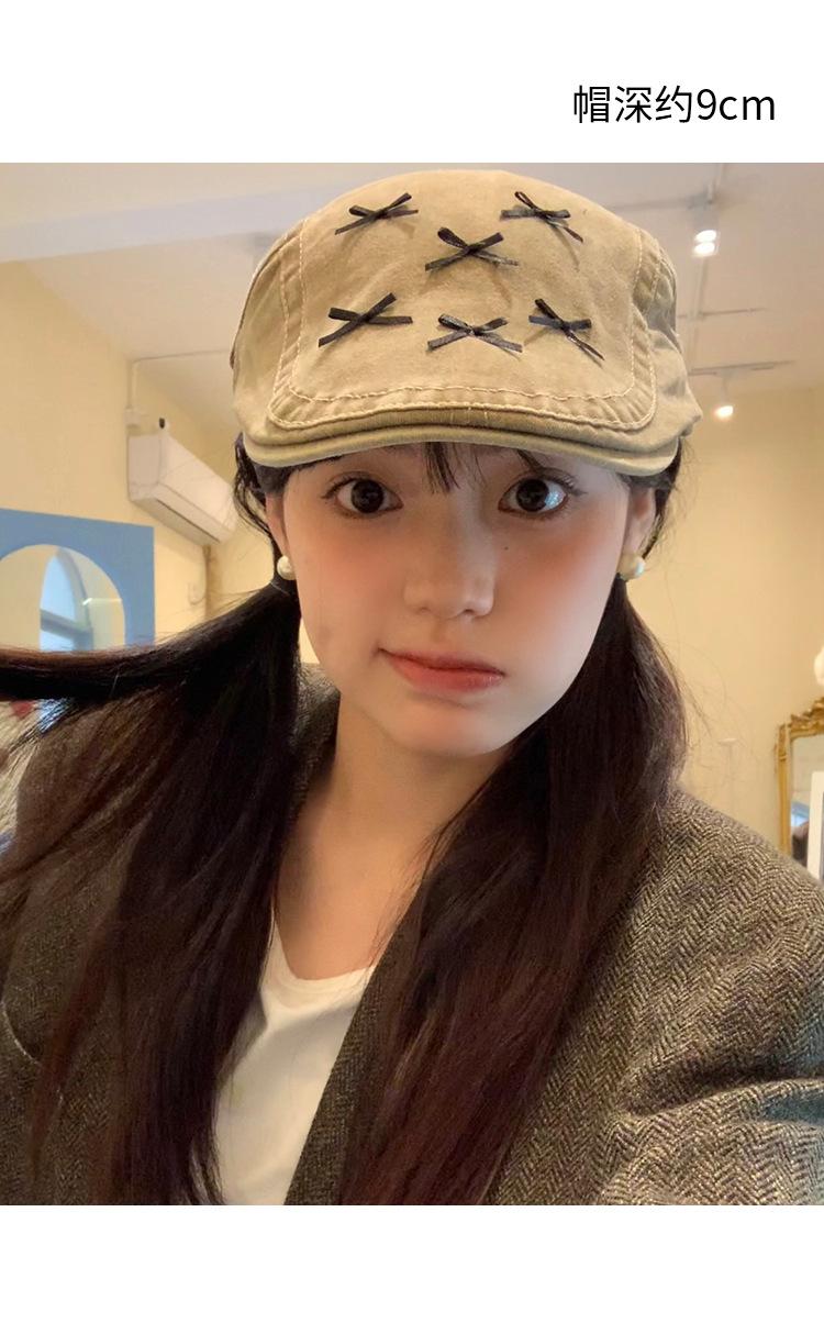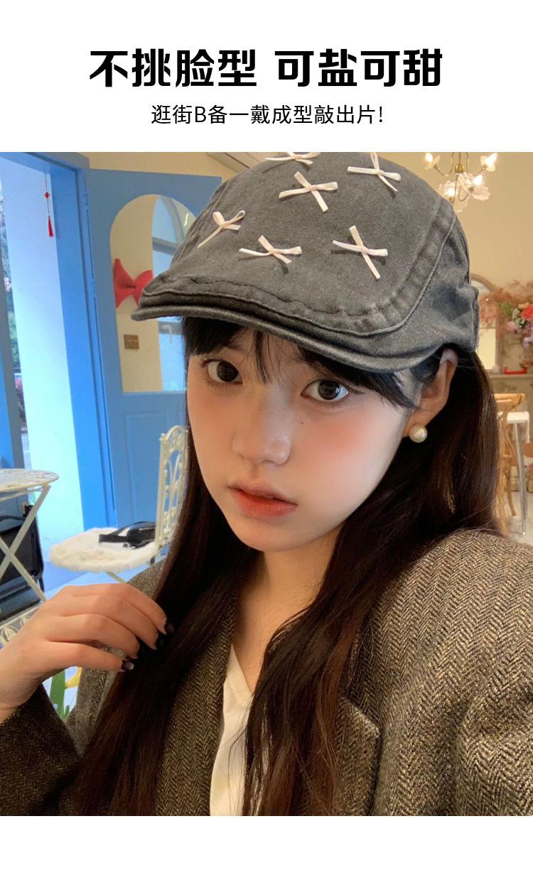 Sombrero de Vaquero con Lazo para Mujer Estilo Coreano Moda Primavera Verano Combinable Rostro Pequeño Boina Casual Sombrero Newsboy