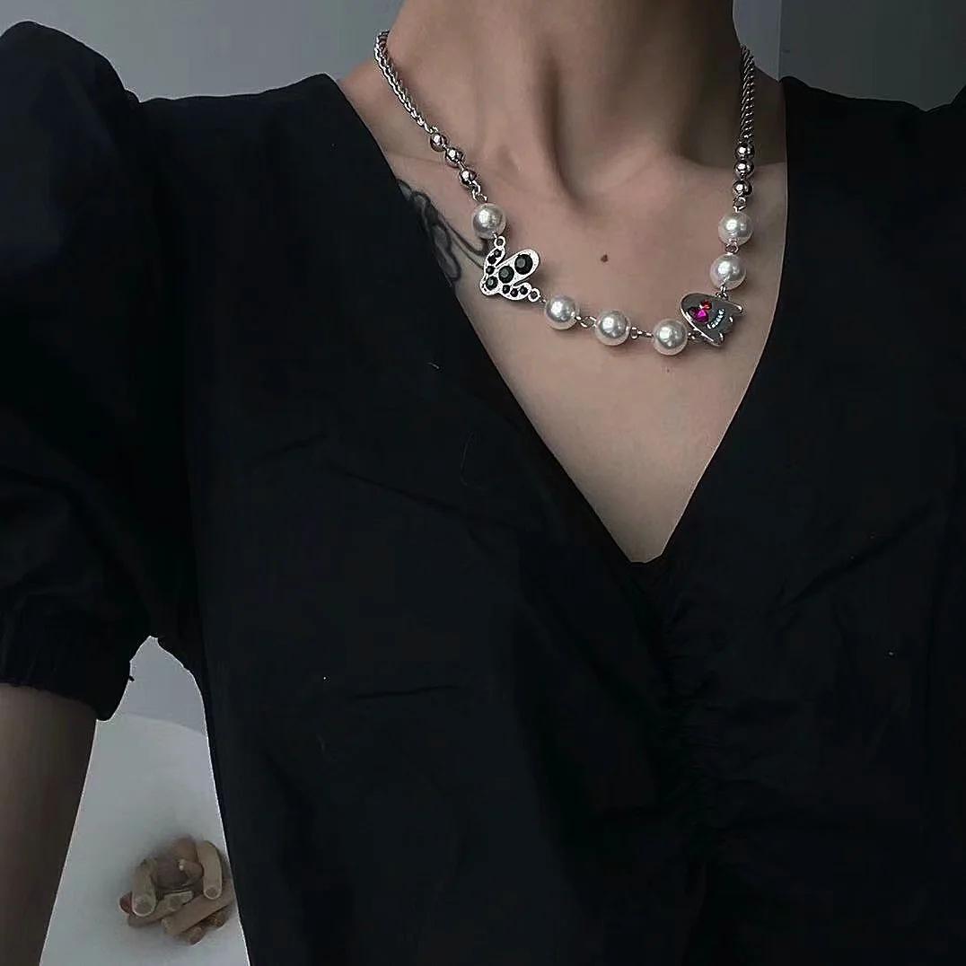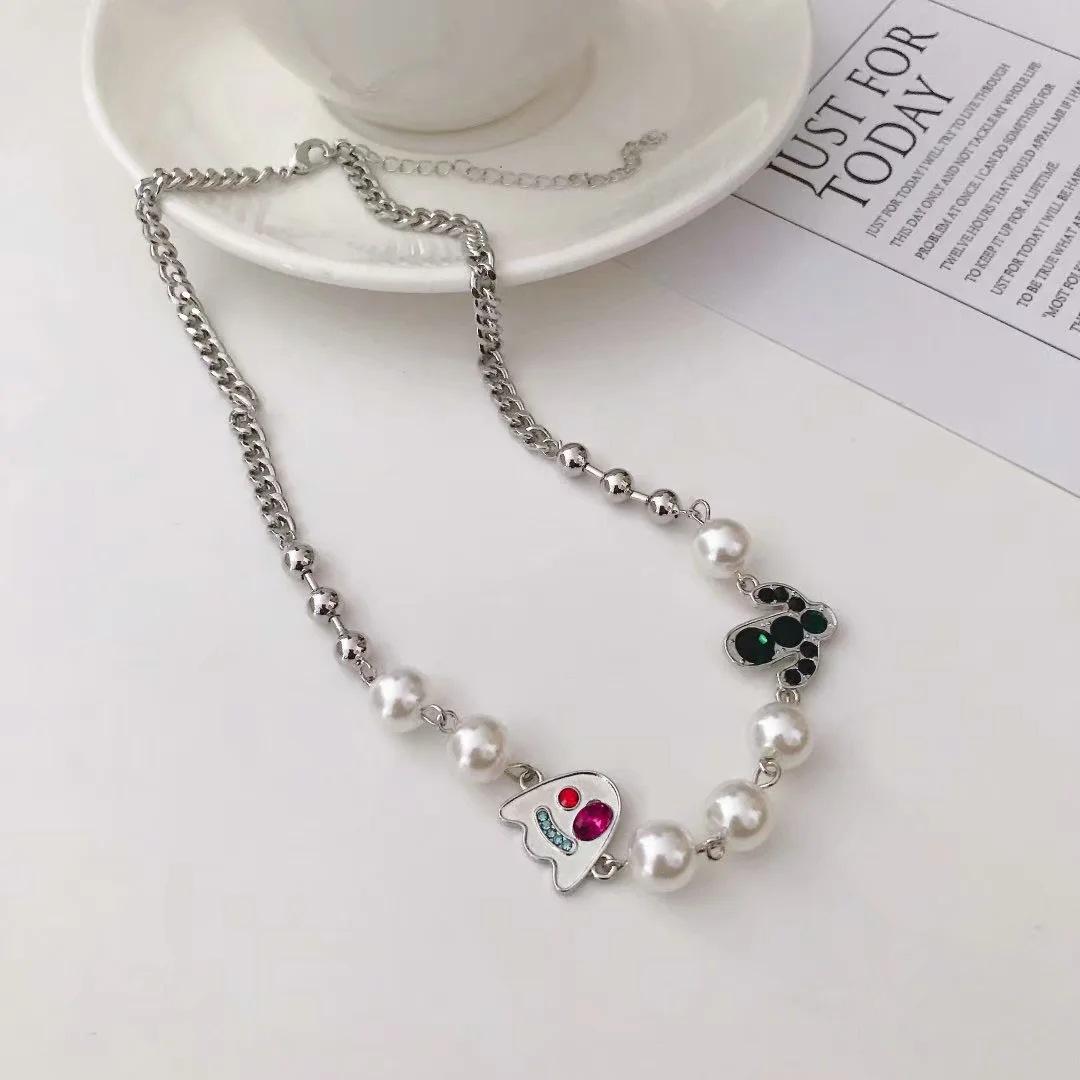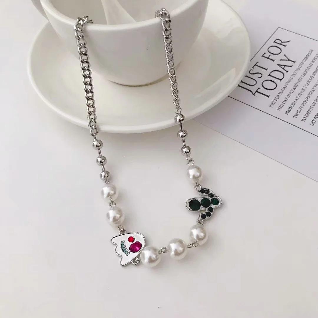Collar de Perlas para Hombres y Mujeres Accesorio Trendy Ins Hip-Hop 2021 Nuevo Collar con Colgante de Cadena para Clavícula de Celebridad de Internet