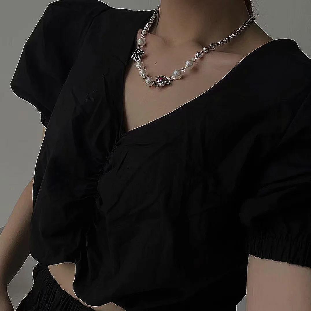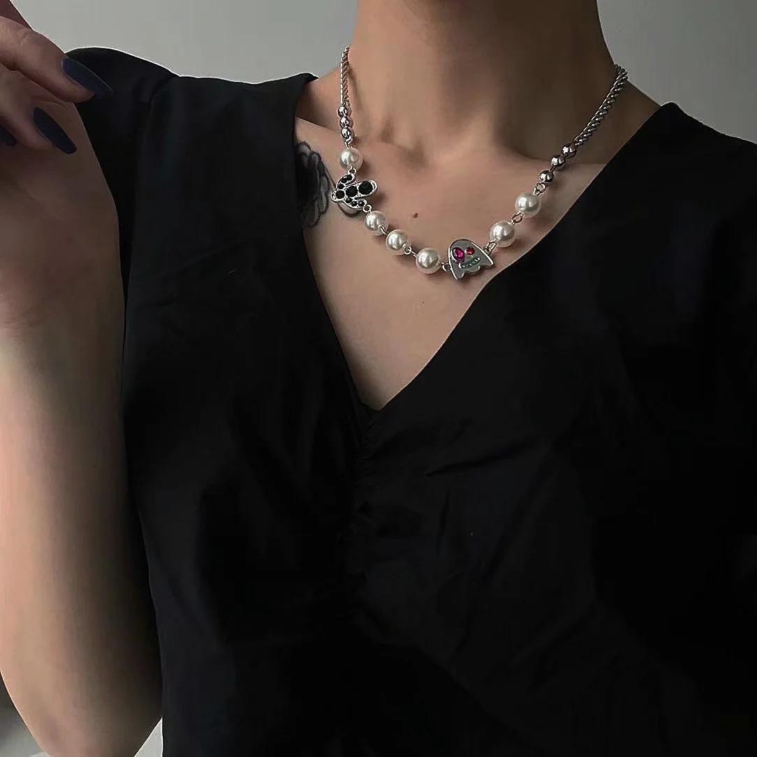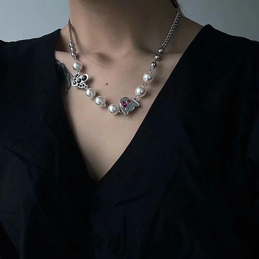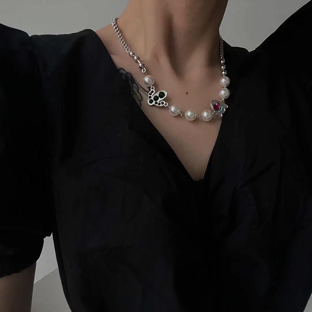 Collar de Perlas para Hombres y Mujeres Accesorio Trendy Ins Hip-Hop 2021 Nuevo Collar con Colgante de Cadena para Clavícula de Celebridad de Internet