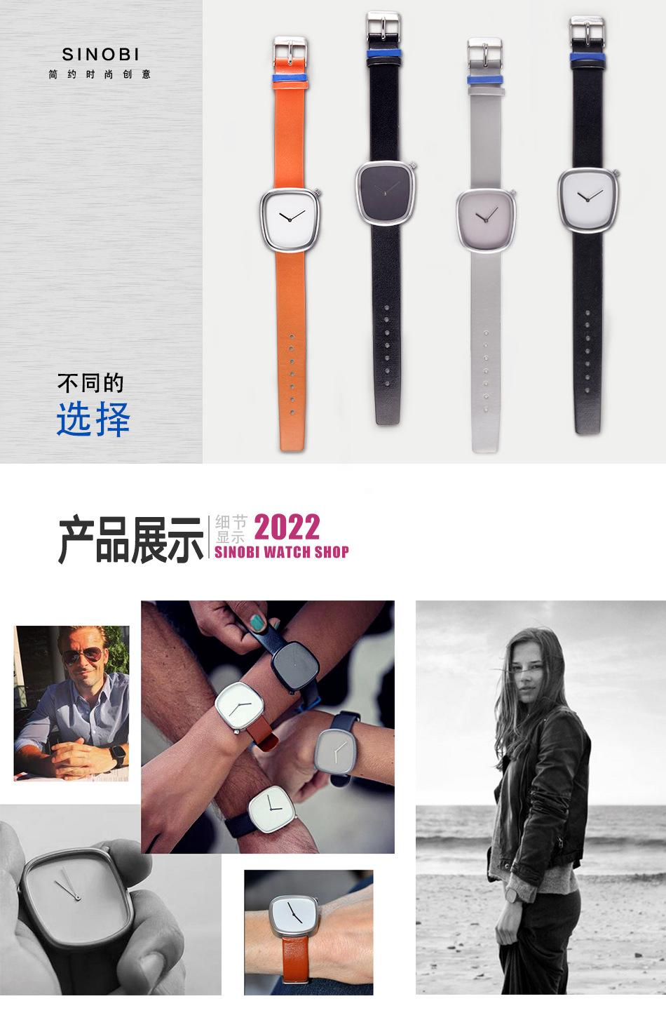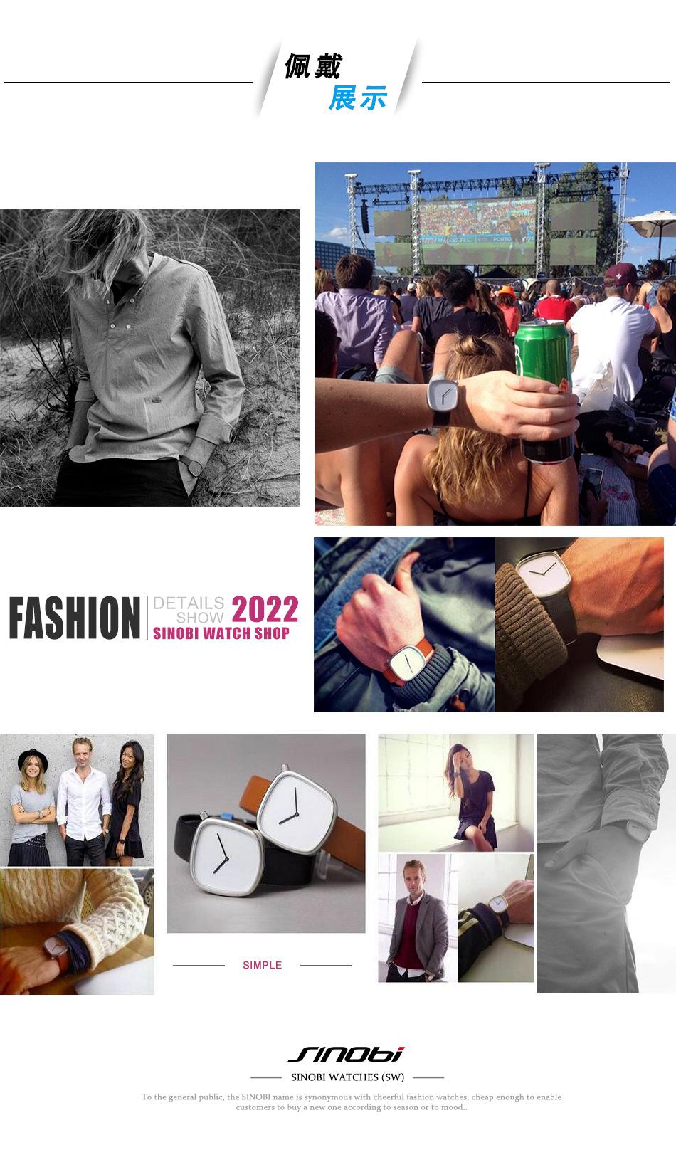 Relojes Sinobi unisex de forma cuadrada, personalidad creativa, resistente al agua, sencillos, blancos, marca al por mayor 9705