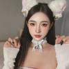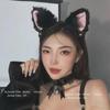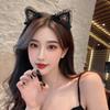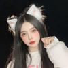Black and White pink cat ear hairpin, Black plush cat ear hairpin, White plush cat ear hairpin, A pair of plus...