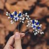 Tocado de novia Mai Lang 2 una combinación de hojas doradas y plateadas horquilla de cristal azul zafiro horquilla para el cabello en forma de U
