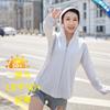 Ropa de protección solar para mujer, nueva prenda de ciclismo de verano, fina, transpirable, de seda fría, con costuras frescas, con capucha, ropa de protección solar, abrigo de longitud media