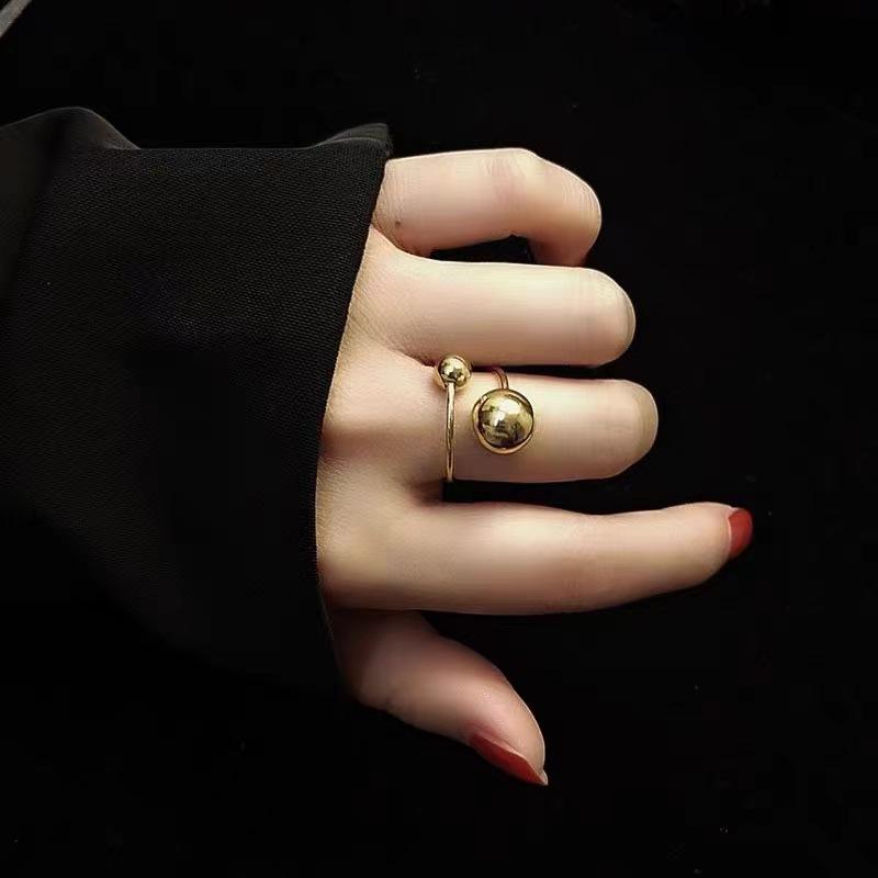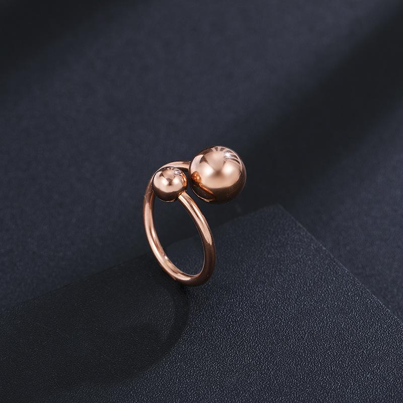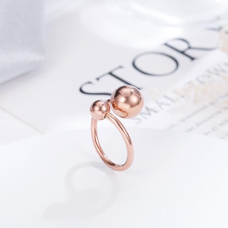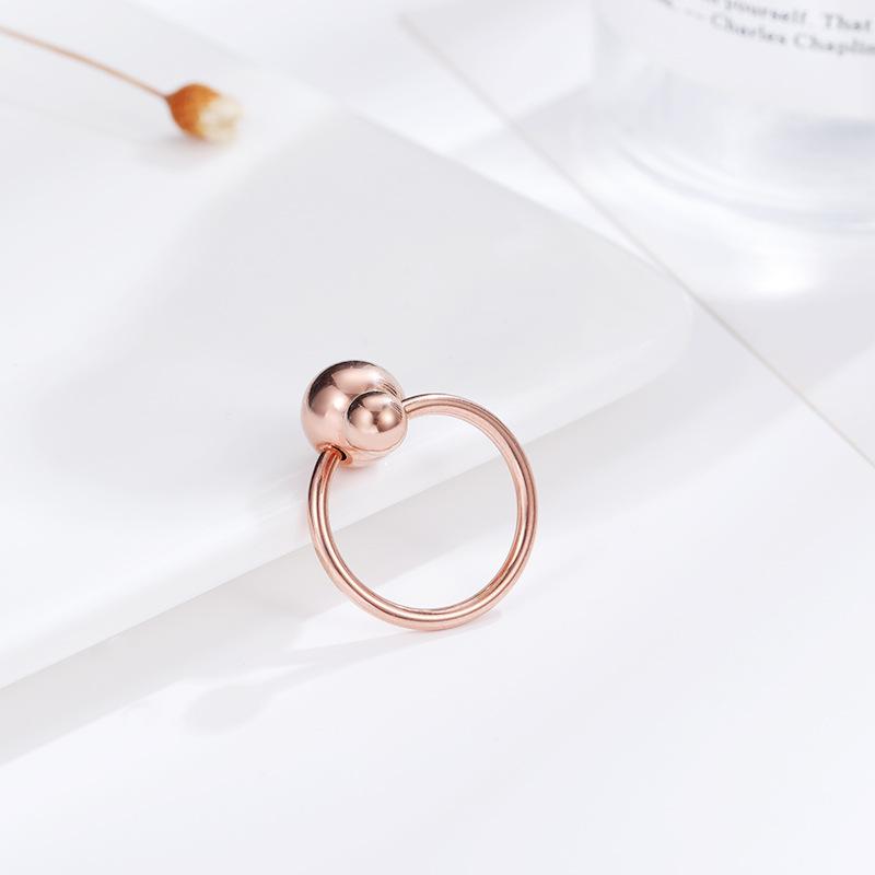 Anillo de bola de estilo coreano, simple y moderno, con temperamento femenino, decorativo, para el dedo índice, bola grande, de acero de titanio, joyería de oro rosa.