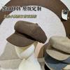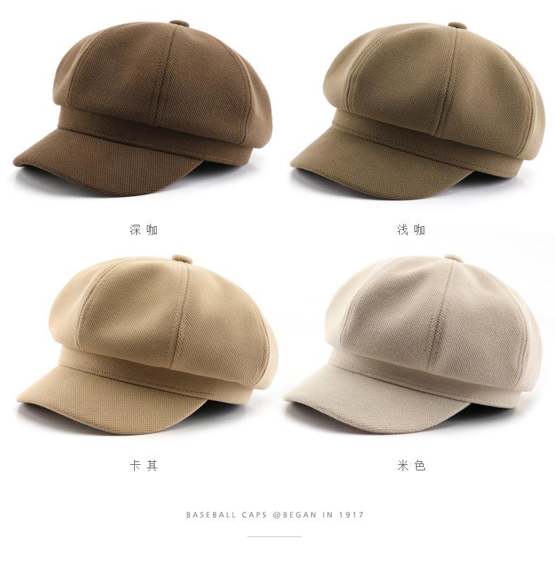 Sombrero de estilo japonés para mujer, de otoño e invierno, de color sólido cepillado, con tablero ligero, para pintor, para viajes al aire libre, cálido, protector solar, parasol, sombrero octogonal.
