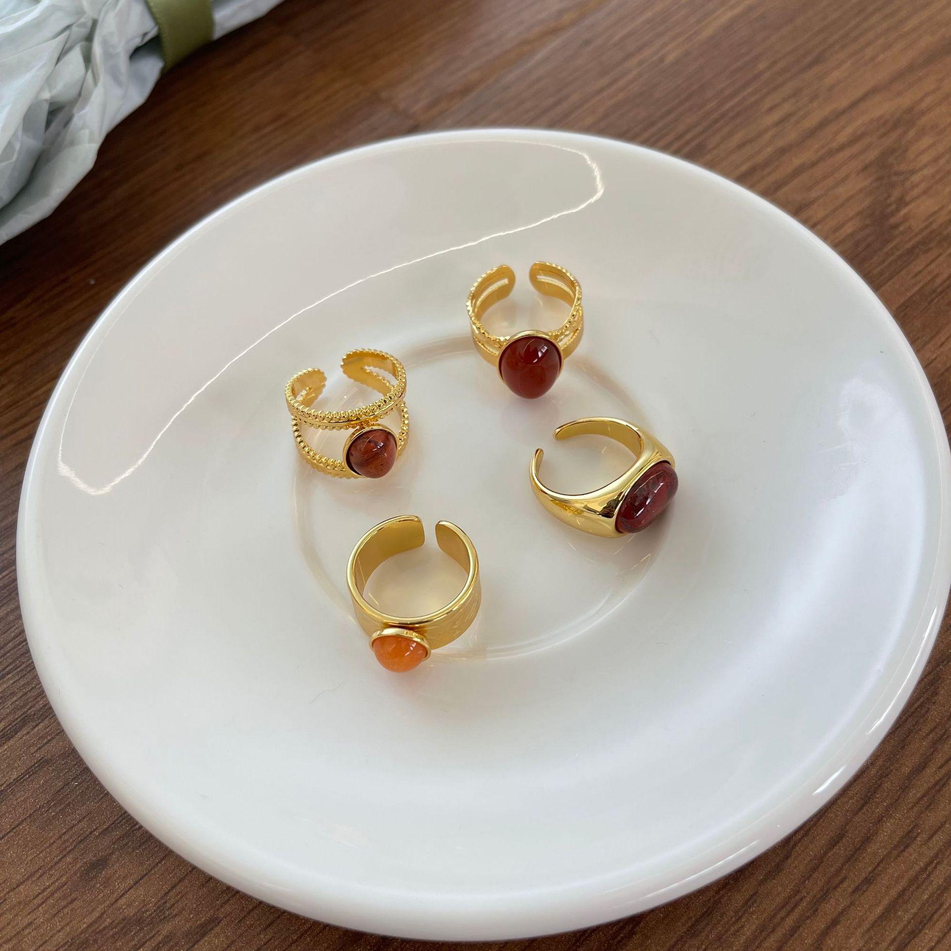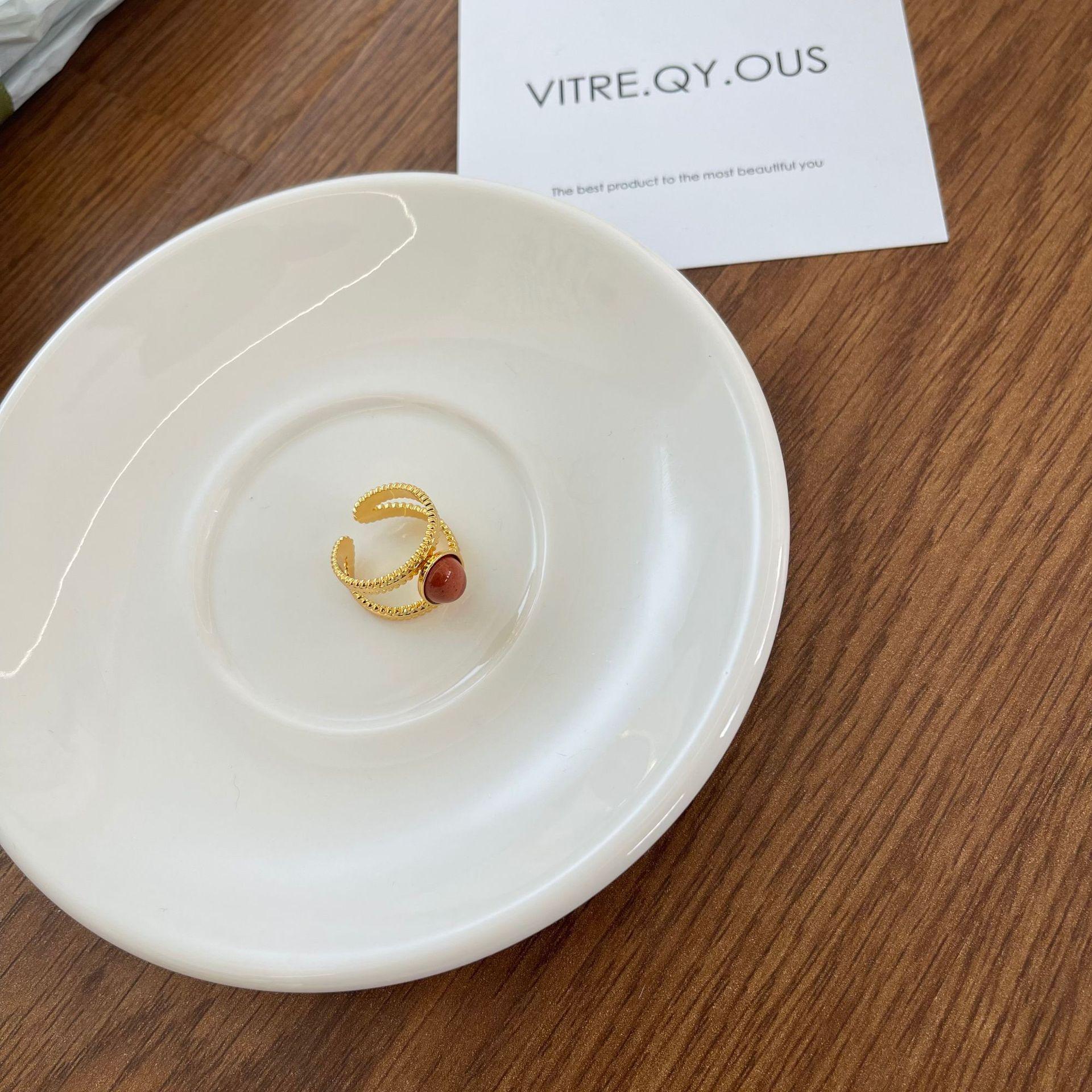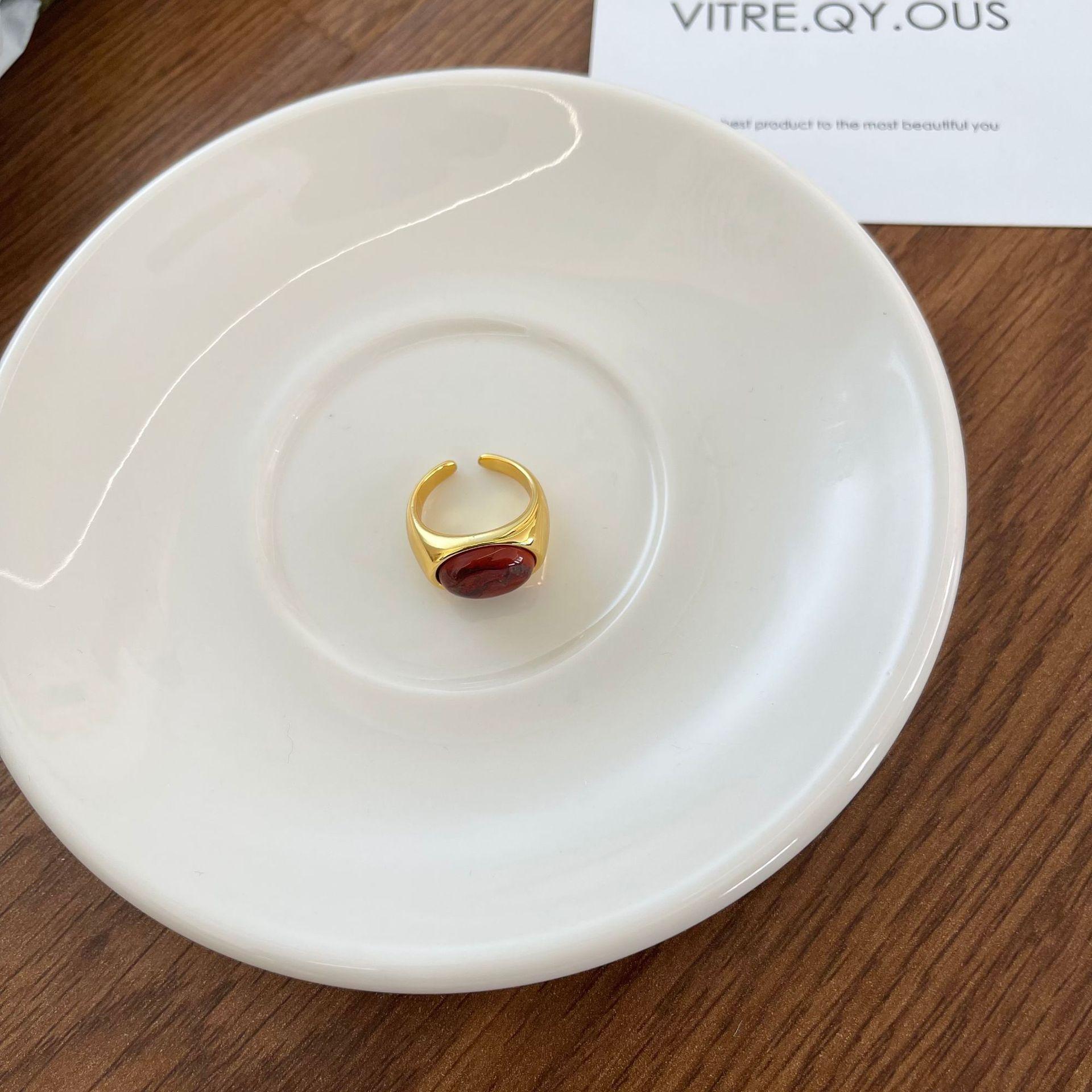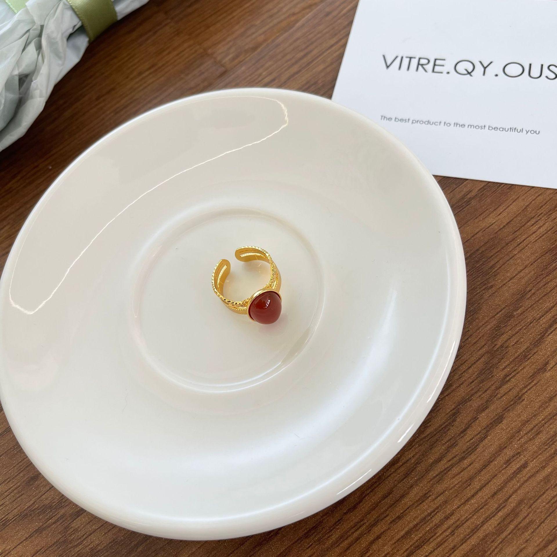 Anillo con incrustaciones de gemas de jade rojo, abierto, simple, europeo y americano, versátil, ligero, de lujo, elegante, joyería de alta calidad, anillo para el dedo índice para mujer