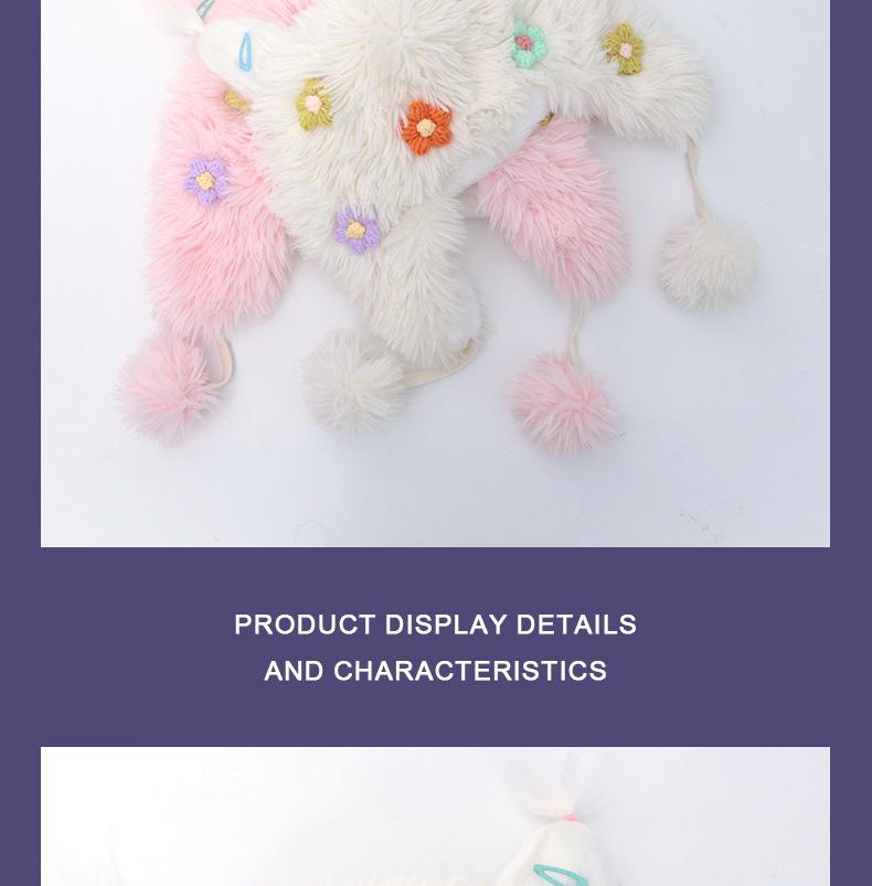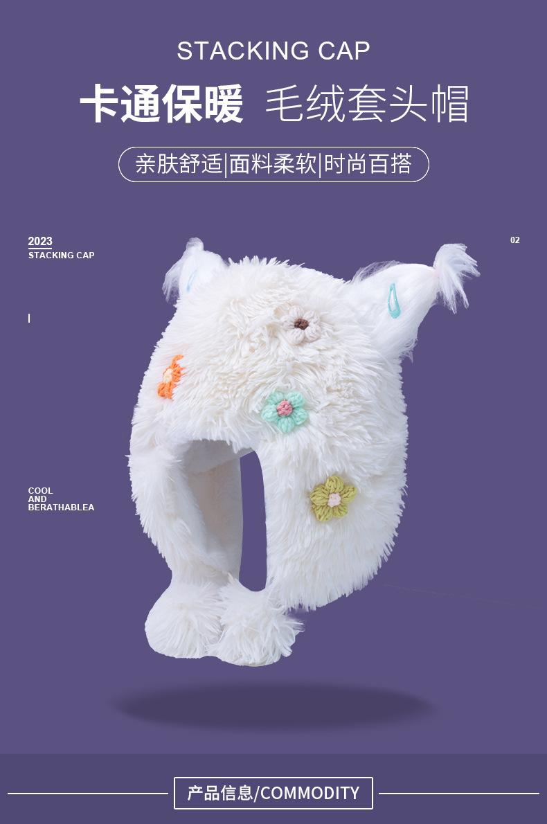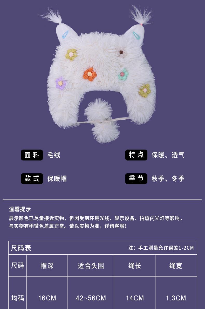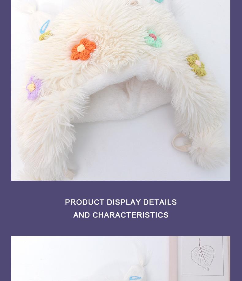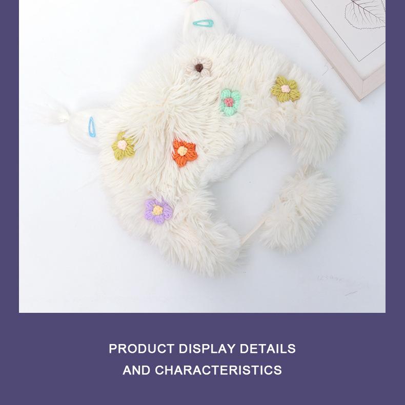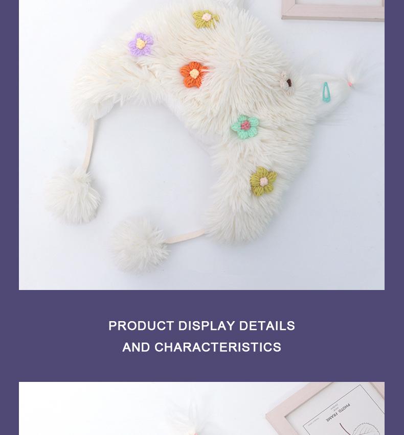 Compra Casual para todo, felpa cálida, linda, nicho, estampado de flores, otoño e invierno, orejeras a prueba de frío, gorro tipo jersey con bola de piel personalizada al por mayor en Joom.pro