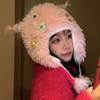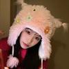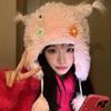 Casual para todo, felpa cálida, linda, nicho, estampado de flores, otoño e invierno, orejeras a prueba de frío, gorro tipo jersey con bola de piel personalizada