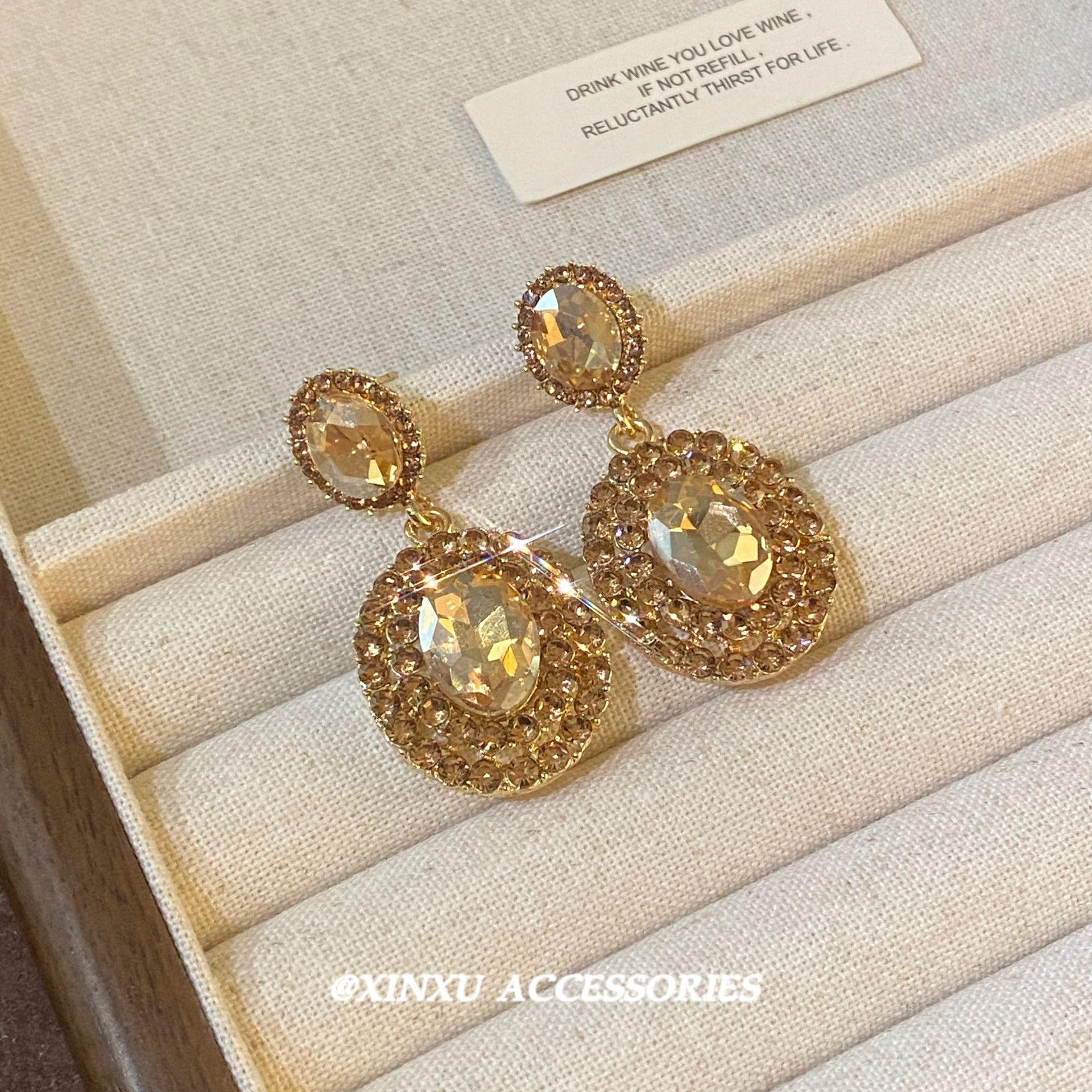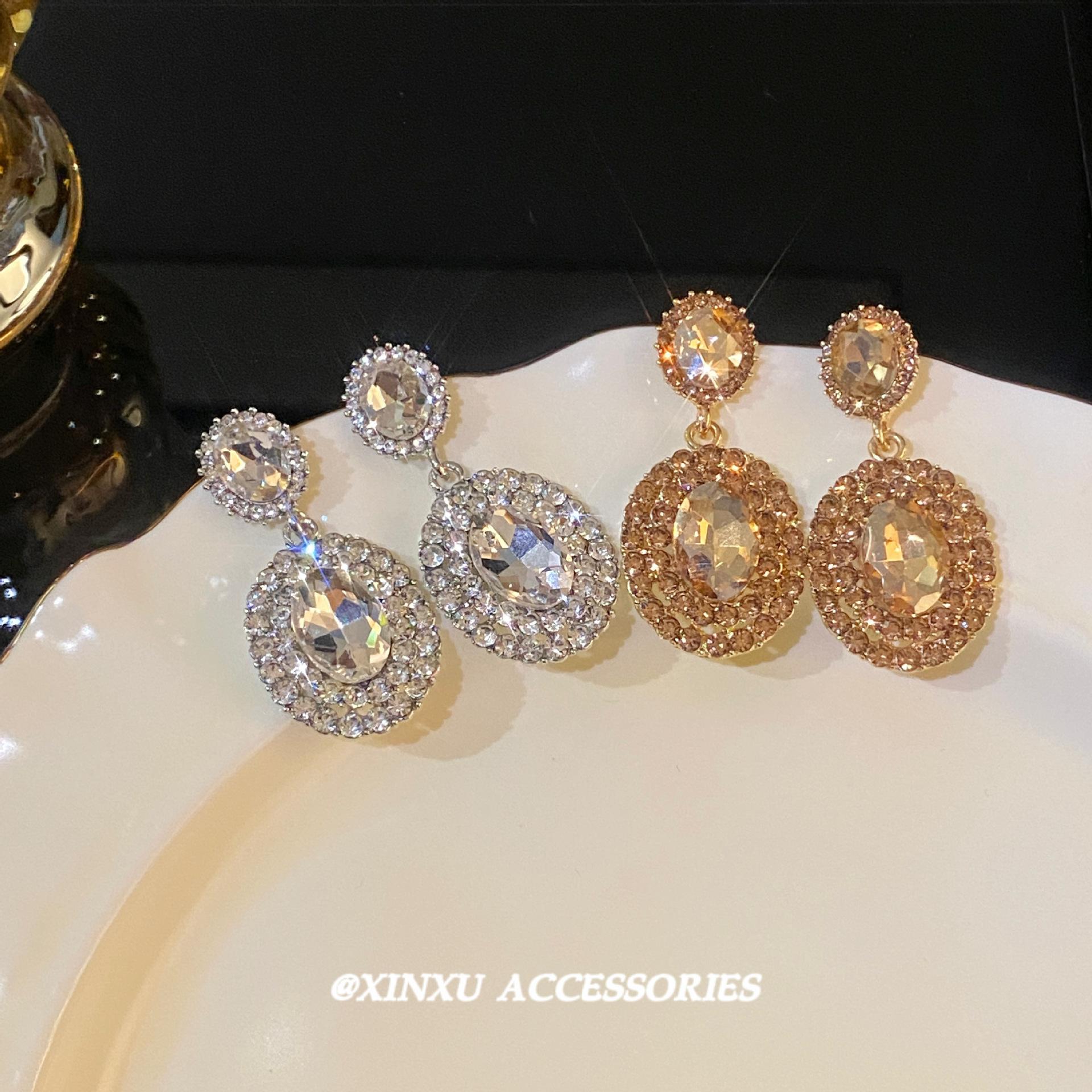 Pendientes largos con diamantes de imitación Super Flash, temperamento femenino, personalidad de Corea del Sur, pendientes que combinan con todo, pendientes exagerados europeos y americanos, pendientes que adelgazan el rostro.