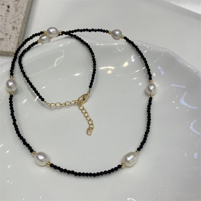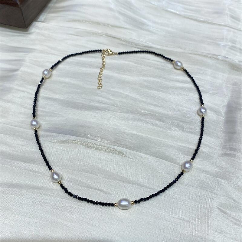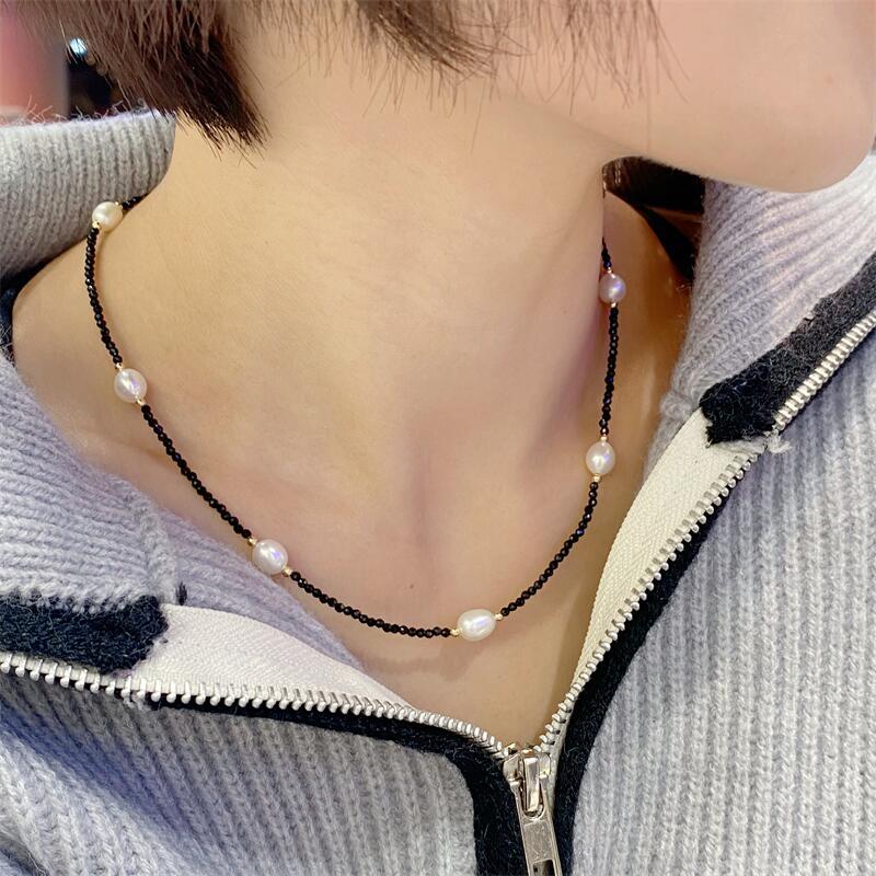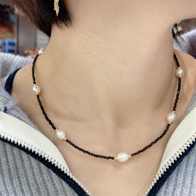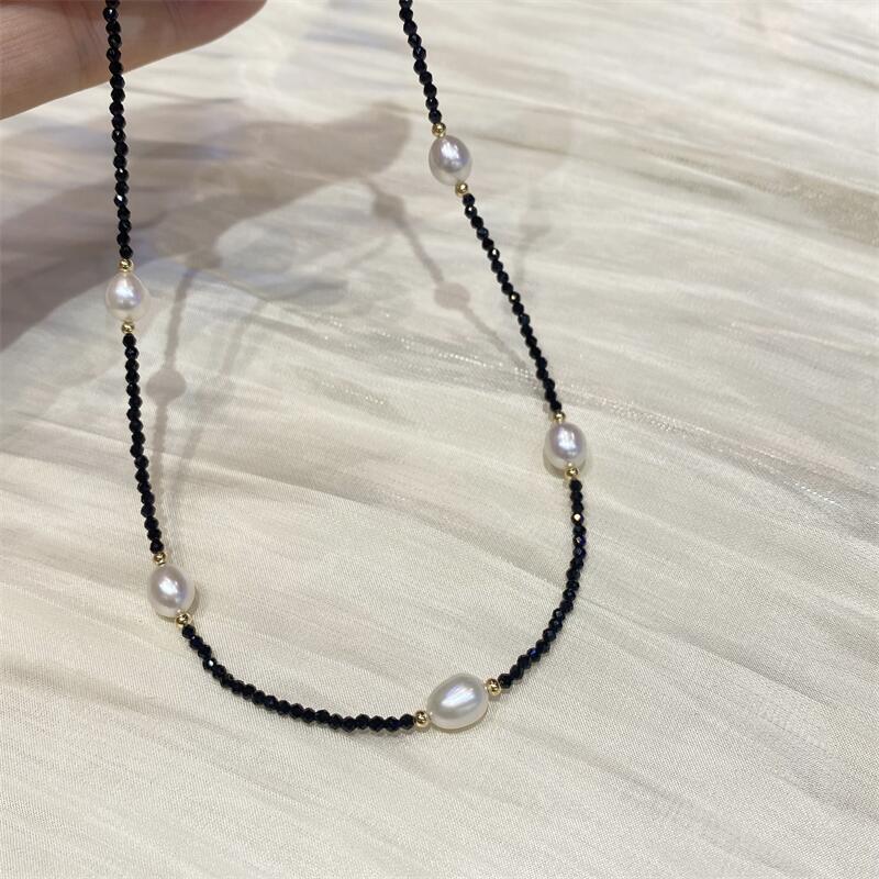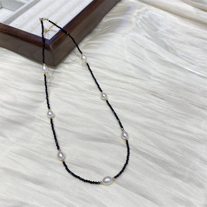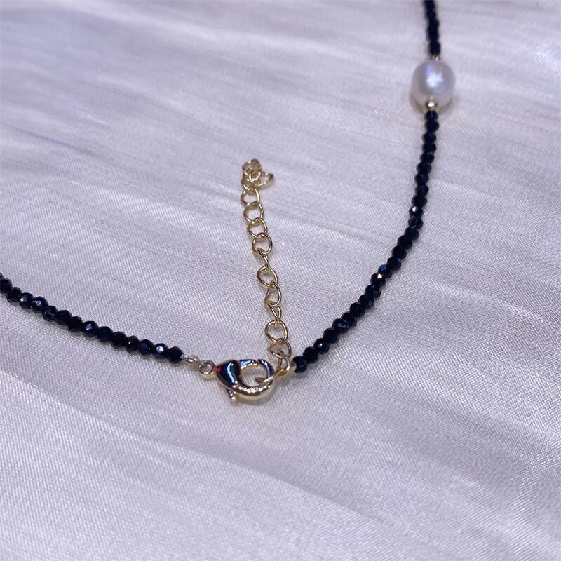 Este sencillo y retro collar de perlas y espinelas es realmente elegante. La translucidez que reflejan las múltiples caras talladas de la espinela negra reduce la opacidad del negro. Con la decoración de perlas naturales, toda la cadena luce suave y posee un toque de diseño. ¡Permítanme compartir este maravilloso producto con ustedes!