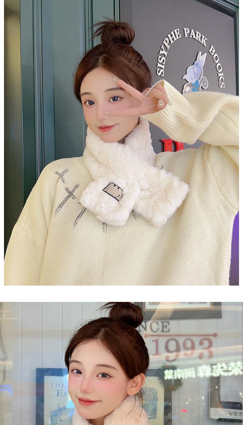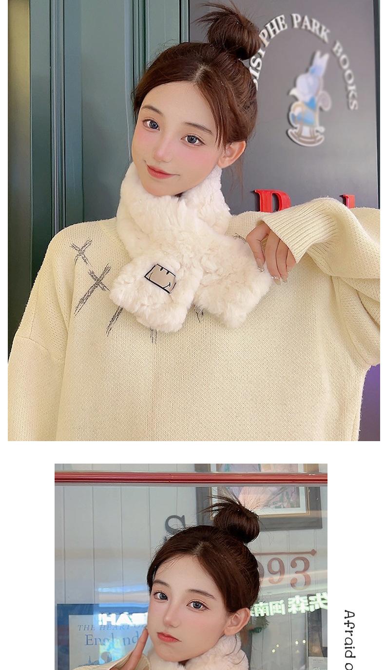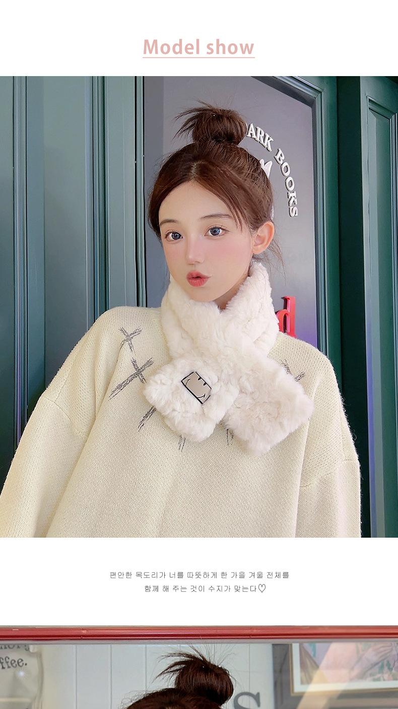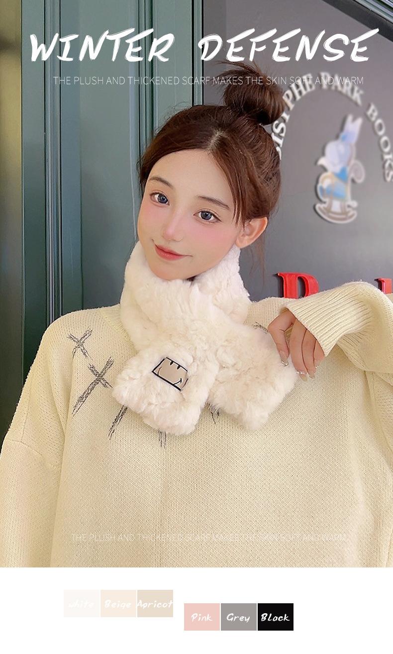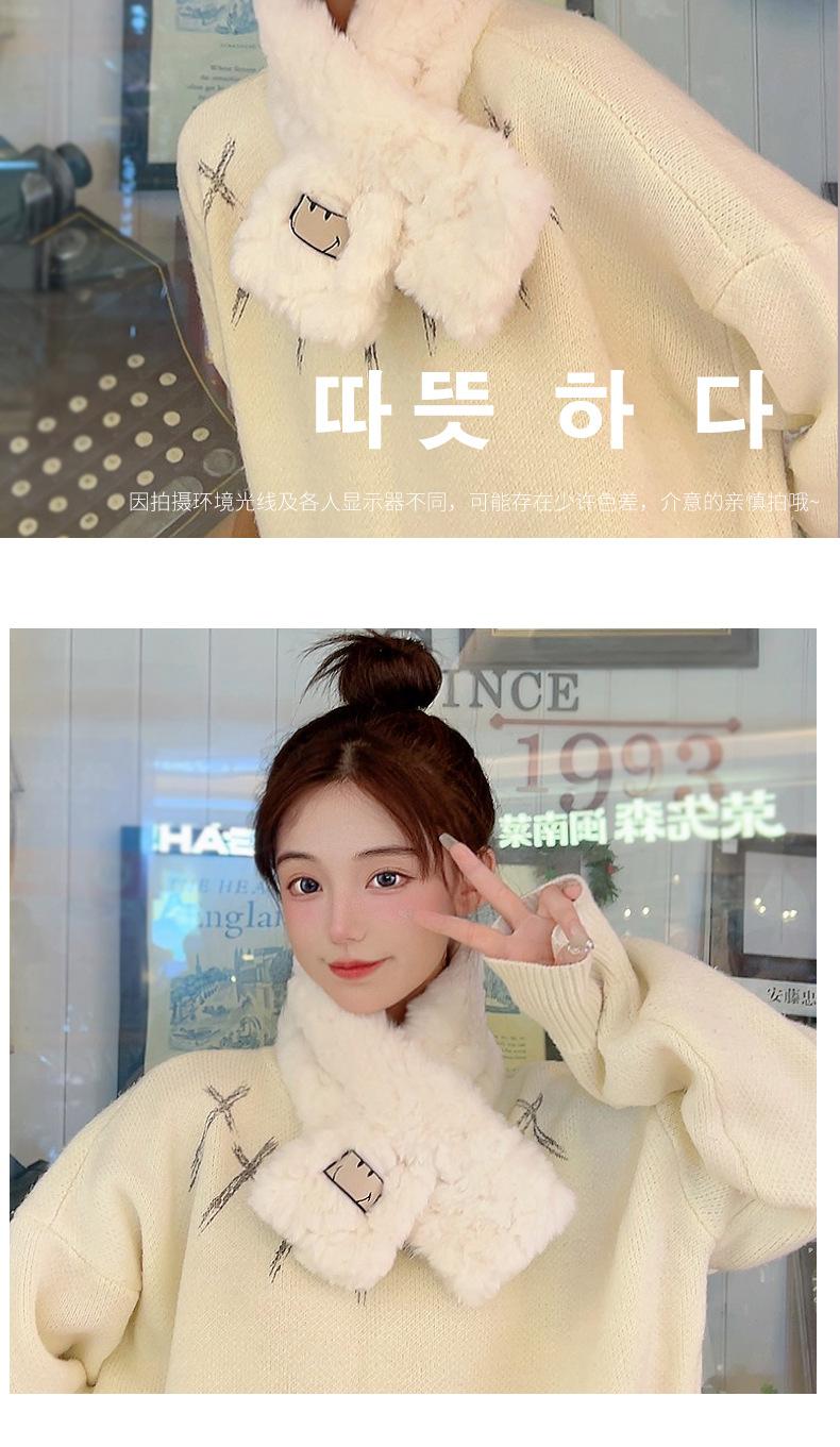 Bufanda de estilo coreano con cara sonriente linda en relieve, cálida y resistente al frío para otoño e invierno, bufanda cruzada de estilo japonés que combina con todo.