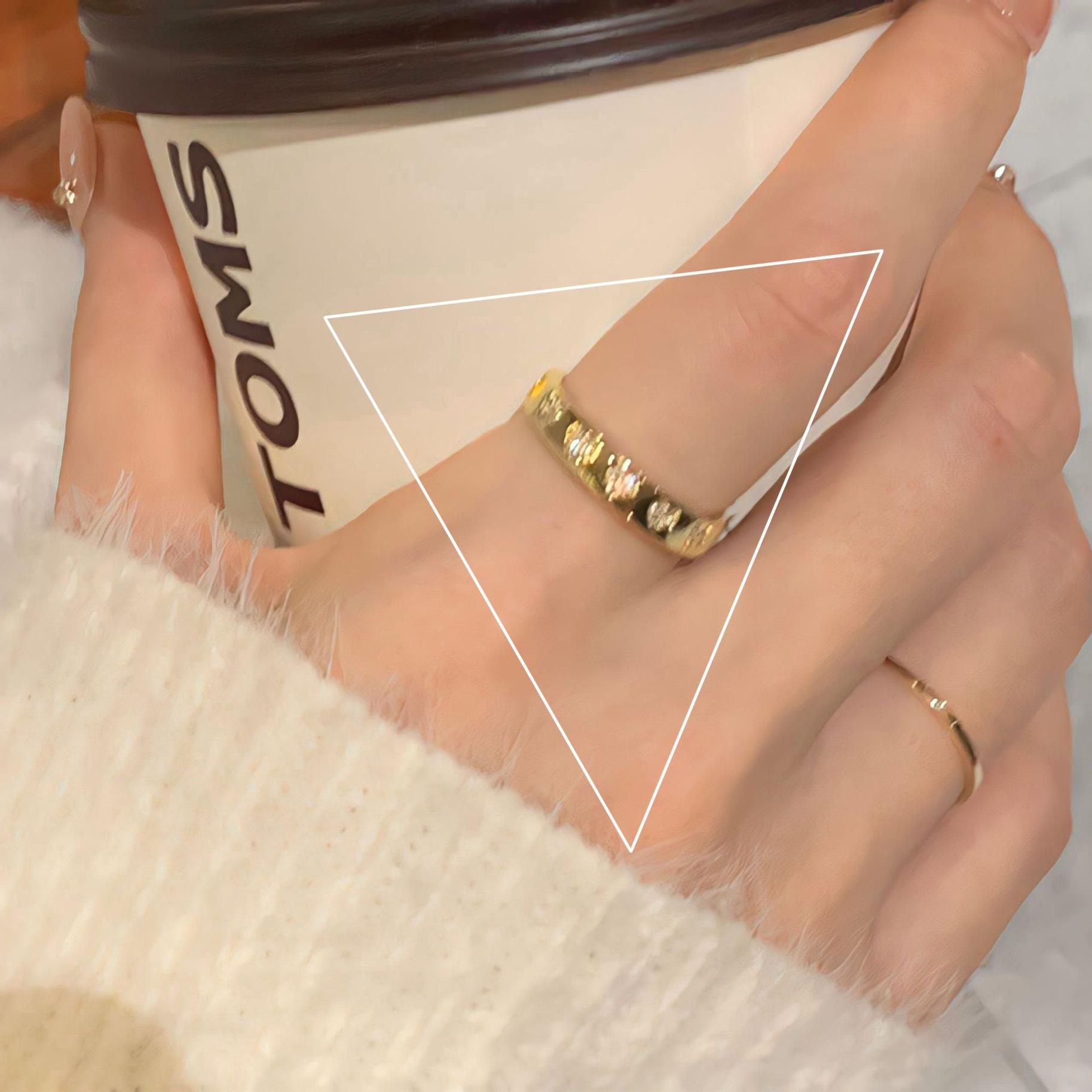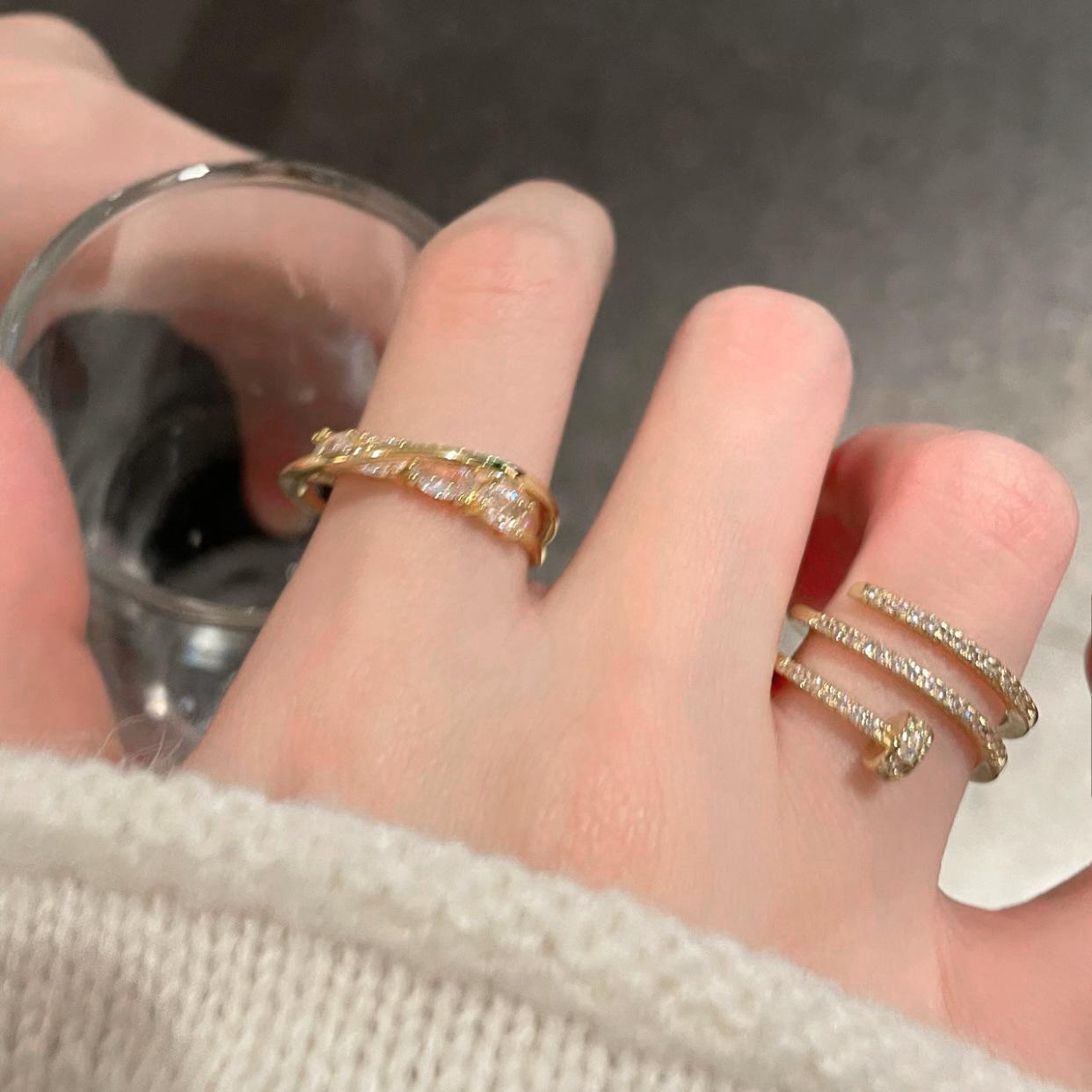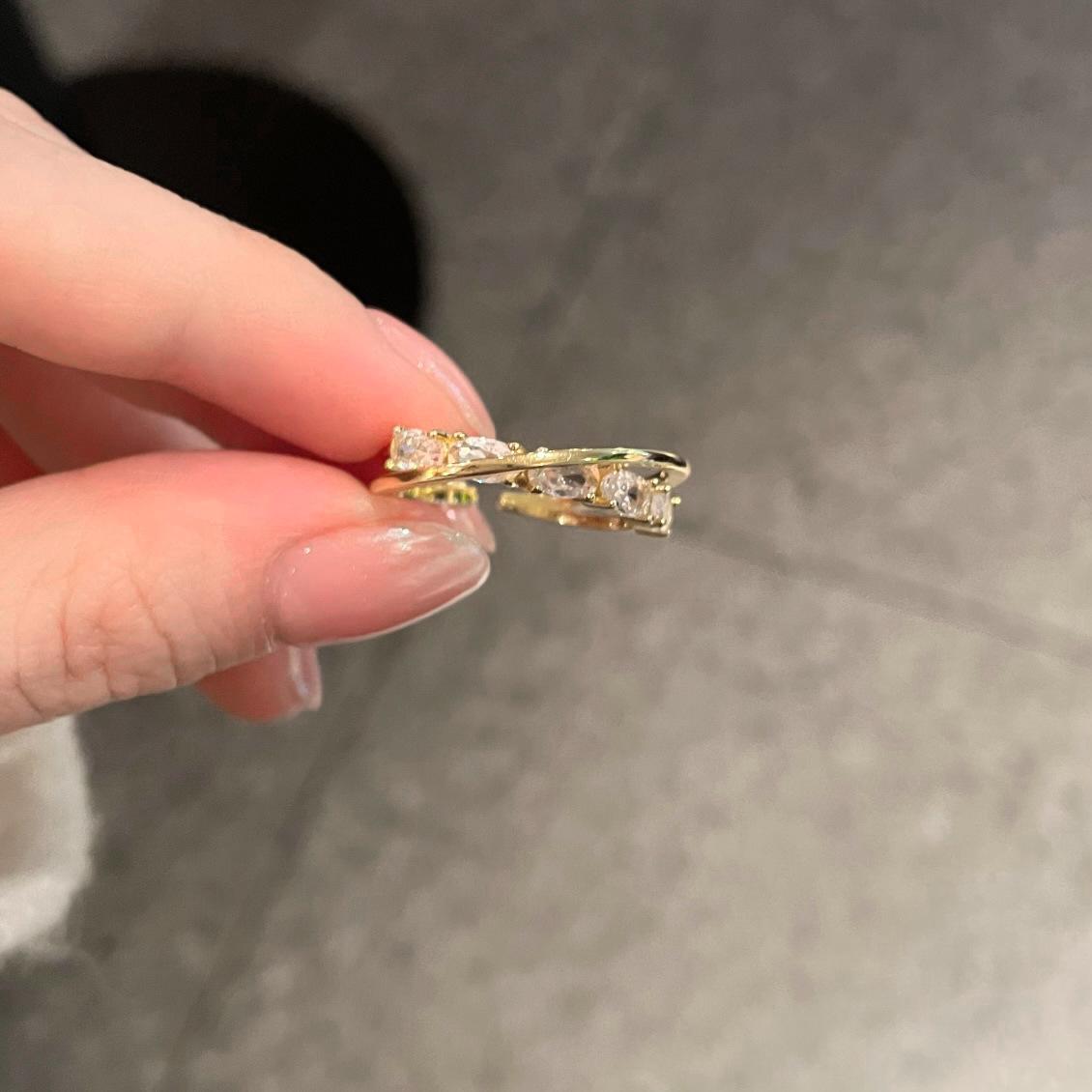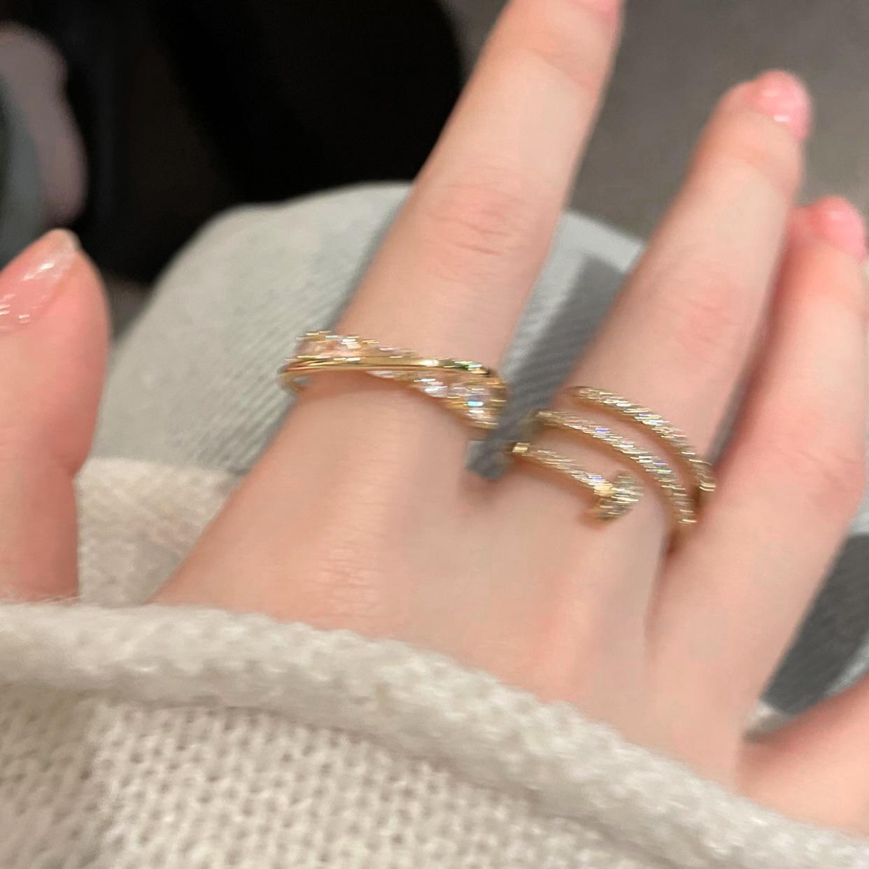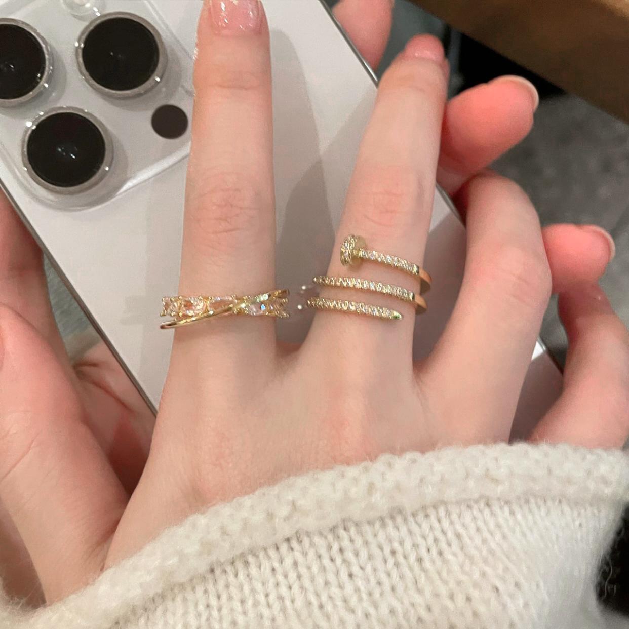 Anillo de Circonita de Línea de Diseño Nicho de Lujo Ligero Moderno Elegante Moda Versátil de Alta Gama Personalizado Anillo de Dedo Índice de Apertura Ajustable