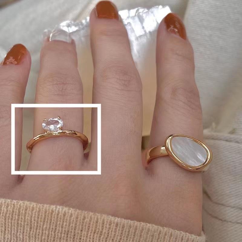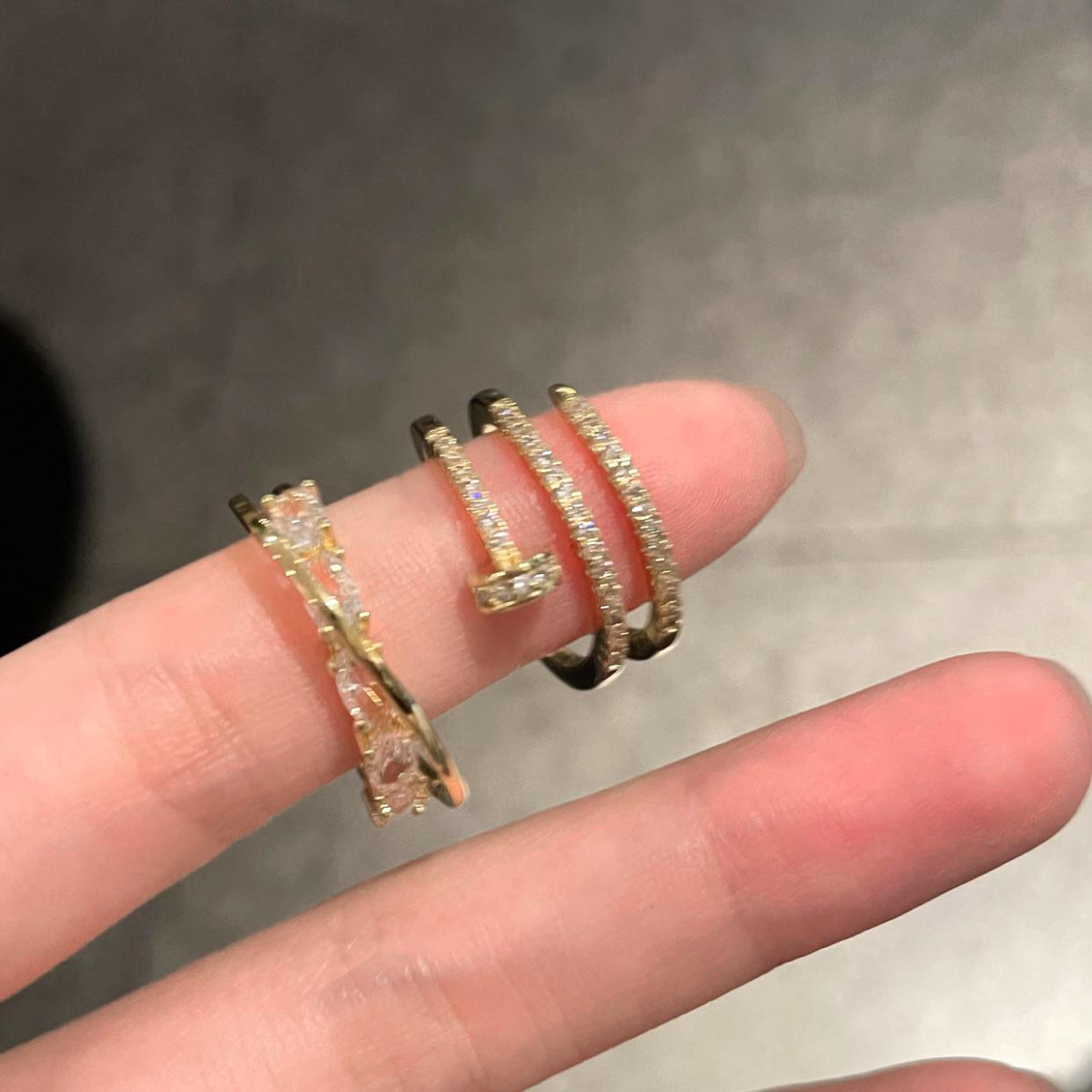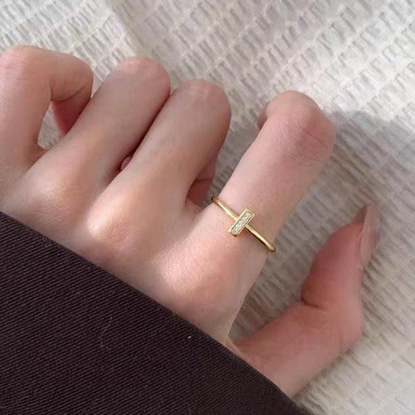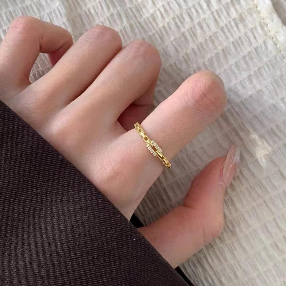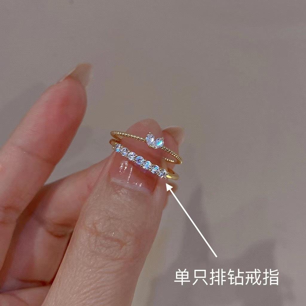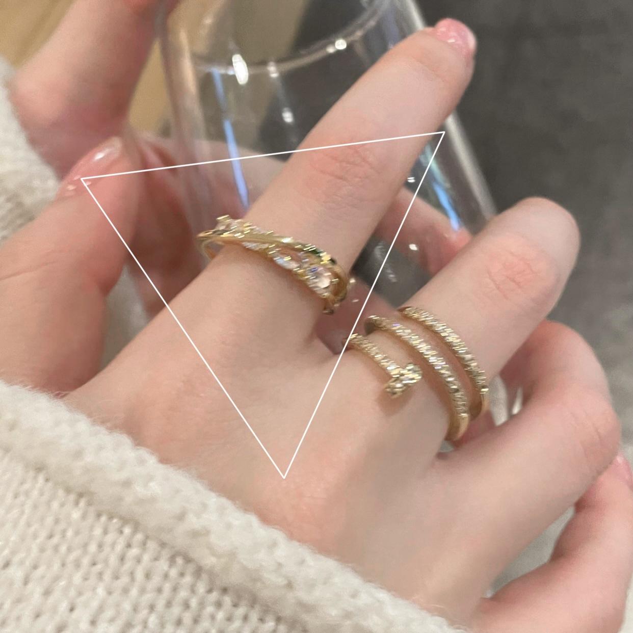Anillo de Circonita de Línea de Diseño Nicho de Lujo Ligero Moderno Elegante Moda Versátil de Alta Gama Personalizado Anillo de Dedo Índice de Apertura Ajustable