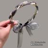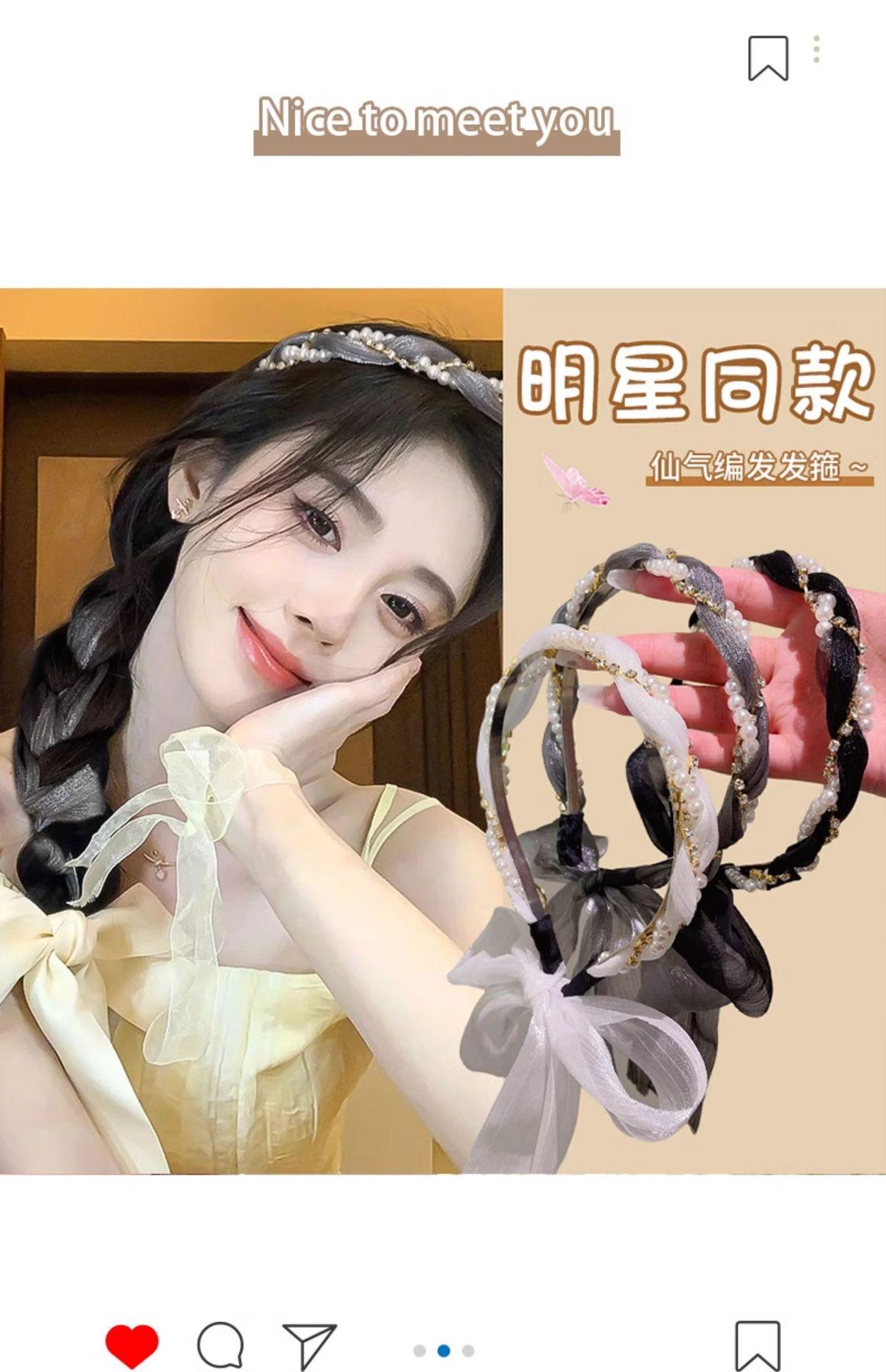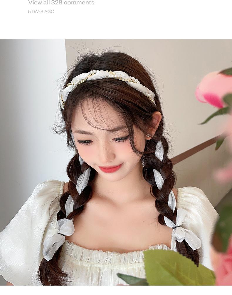 Diadema de perlas para mujer, con correa para el cabello, de una sola pieza, estilo veraniego 2024, diadema tejida, parte superior craneal alta, elegante, con sello para el cabello.