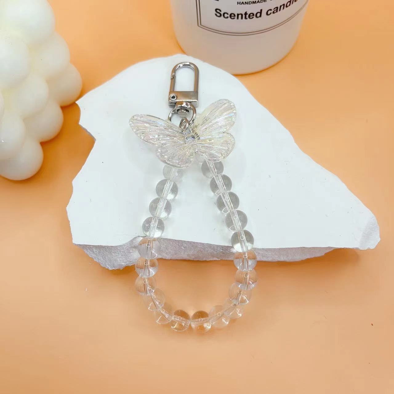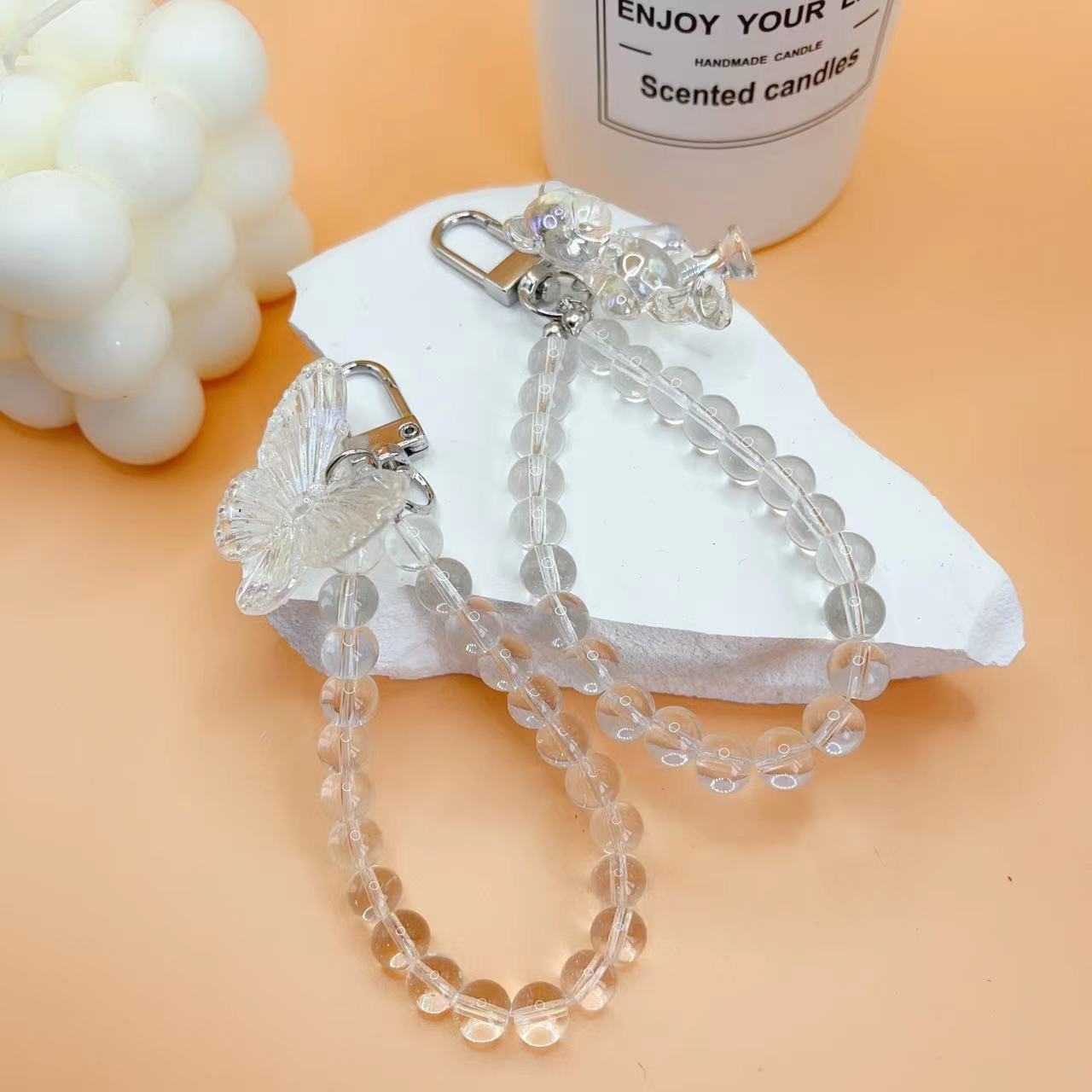 Nuevo colgante creativo para teléfono móvil con forma de oso y mariposa, con cuentas de cristal, cadena para teléfono móvil, bolso y llavero.